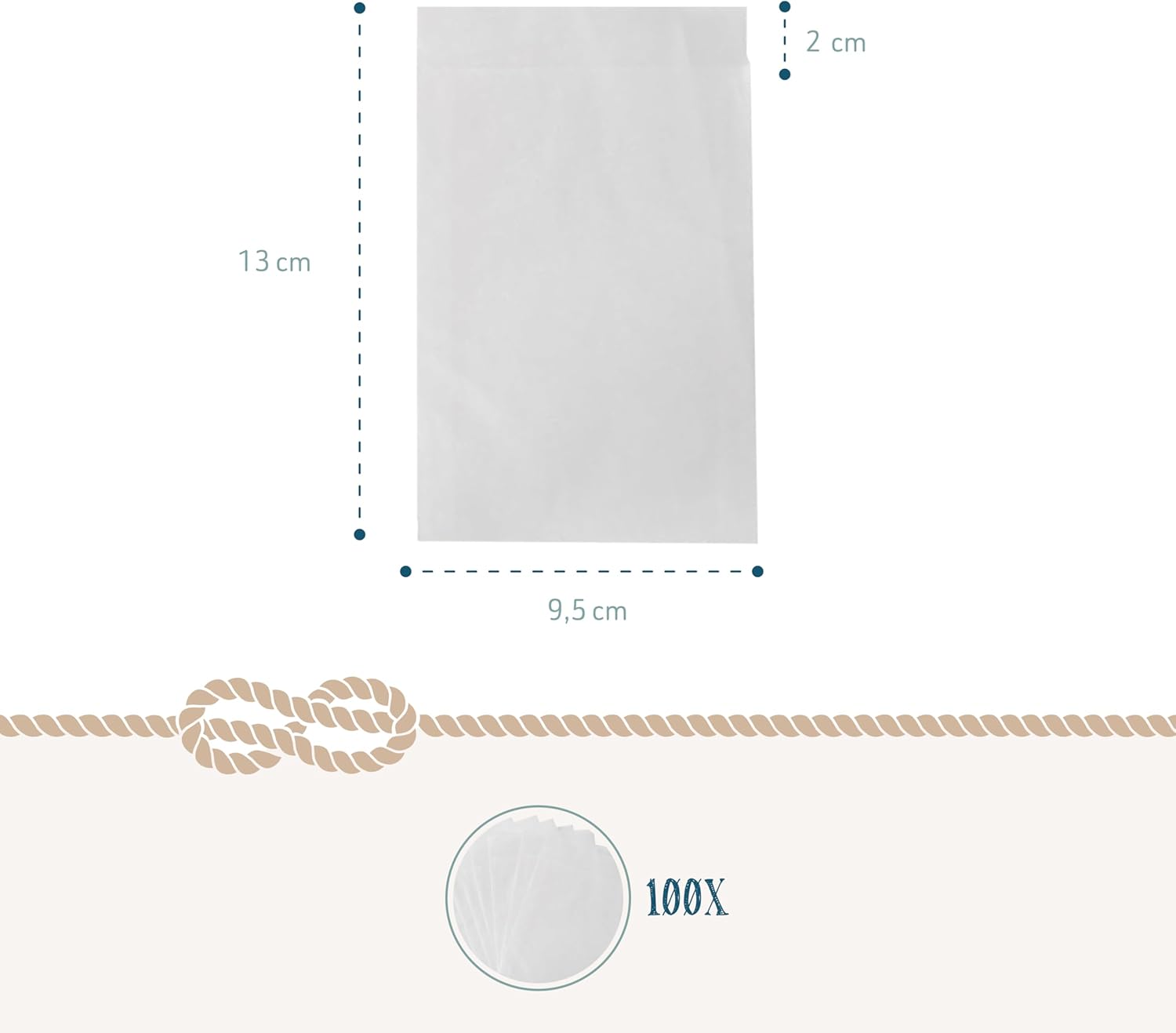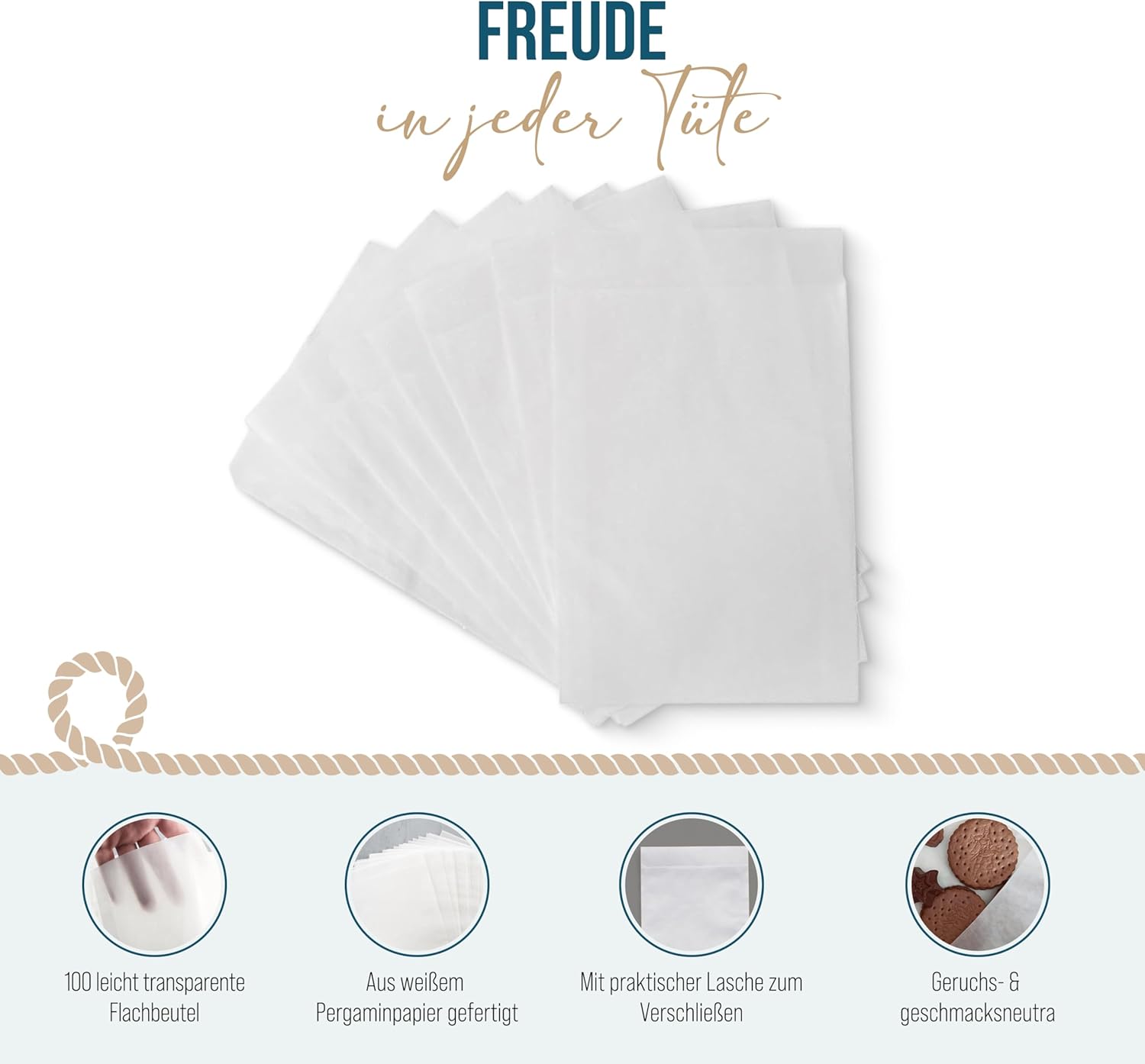 PRATICHE BUSTE PIATTE: Le piccole buste in glassine trasparenti sono ideali per confezionare gioielli, caramelle, biscotti, viti, semi di fiori o contenuti finemente macinati come spezie o polvere CON LINGUETTA DI CHIUSURA: Grazie alla linguetta larga 2 cm, le buste possono essere piegate in modo pulito e sicuro - una soluzione semplice per un contenuto ben confezionato PER MOLTE OCCASIONI: Che si tratti di regali per gli ospiti ai matrimoni, piccole buste per battesimi e comunioni o come graziosa confezione per compleanni o nella vita di tutti i giorni - le buste possono essere utilizzate in molteplici modi MATERIALE DI ALTA QUALITÀ: i sacchetti piatti sono realizzati in carta glassine adatta agli alimenti, leggermente trasparente, insapore e in gran parte resistente ai grassi DESIGN VERSATILE: i sacchetti di carta possono essere meravigliosamente decorati con adesivi, etichette o piccole targhette e rendono ogni confezione qualcosa di personale