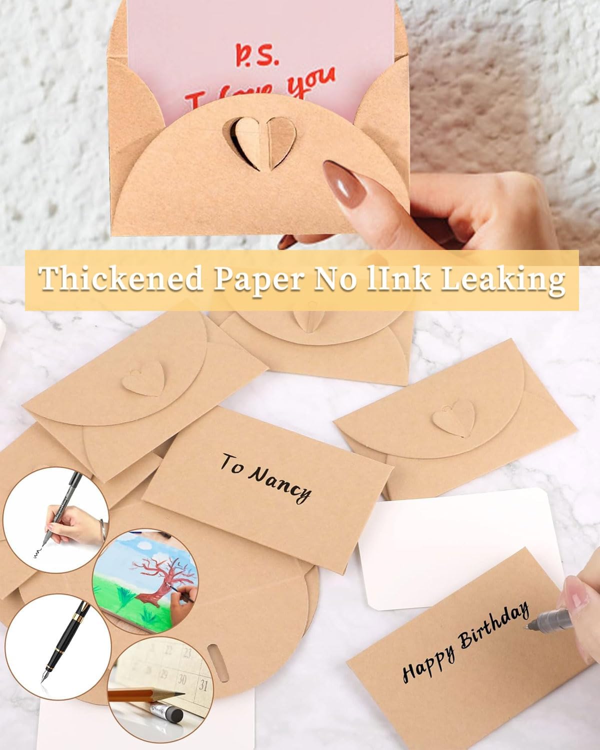 Buste Kraft con buste per biglietti bianchi: 40 buste Kraft vintage, buste: 17,5 cm x 10,9 cm, colore busta marrone. Buste e biglietti fai-da-te: le nostre piccole buste e biglietti a forma di cuore sono vuote e sono perfette per il fai-da-te. Puoi disegnare qualsiasi schema o scrivere ciò che vuoi dire per esprimere i tuoi sentimenti in stili diversi. Puoi anche decorarli con motivi, testo, glitter, timbri e altro ancora. Buste di alta qualità: le mini buste sono realizzate in carta kraft spessa, che non è facile da piegare e deformare, ecologica, liscia e facile da piegare, la scrittura è liscia e l'inchiostro non è facile da penetrare; Il sigillo a forma di cuore sul retro tiene saldamente la busta in modo che non si apra accidentalmente. Design elegante a forma di cuore: le mini buste hanno un design elegante, ogni busta ha una fibbia a forma di cuore per chiudersi e la fibbia a forma di cuore sul retro può proteggere bene la busta, rendendo ogni busta più alla moda ed elegante. Ampiamente utilizzata: questa bellissima busta è perfetta per biglietti di Natale, biglietti regalo, biglietti di ringraziamento, biglietti d'auguri, inviti per feste, inviti di nozze, biglietti di ringraziamento, biglietti regalo di Natale e altro ancora. Esprimere gratitudine a genitori, colleghi, amici e parenti. Persone care e insegnanti per Natale, compleanni, matrimoni e altre occasioni.