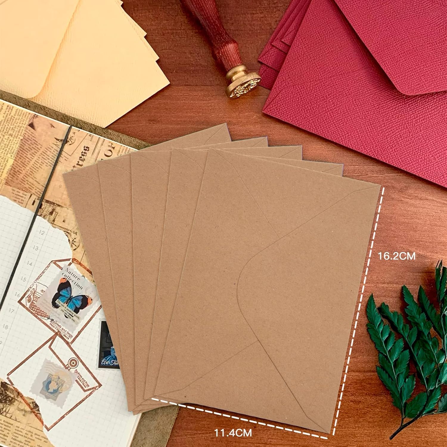 Materiale di lusso: fatto di carta kraft superiore a 120 GSM, spessa e robusta, non facile da disgregare o rompere, può fornire una solida protezione per gli oggetti interni. Comodità d’impiego: pulire un po’ d’acqua per bagnare la zona di chiusura dell’involucro, piegare il sigillante e tenerlo per un minuto. Le buste autoadesive restano chiuse per tutto il viaggio. Multiuso: le carine buste da 162x11,4 cm sono ideali per inviare lettere di ringraziamento, cartoline per le vacanze, biglietti di auguri, inviti, annunci, cartoleria, foto, cartoline postali e lettere pal di penna. Multiuso: con i v-flap sono carini e di classe. Ideale per qualsiasi occasione o evento, come matrimonio, fidanzamento, anniversario, festival, sposa, doccia per bambini, diploma di compleanno. Pacchetto incluso: un pacchetto di 50 scatole kraft può soddisfare tutte le esigenze della vostra casa e del vostro ufficio, usando le nostre buste ben fatte per inviare una lettera o una cartolina alle vostre famiglie e ai vostri amici, ameranno le buste decenti e sentiranno di essere più sinceri.