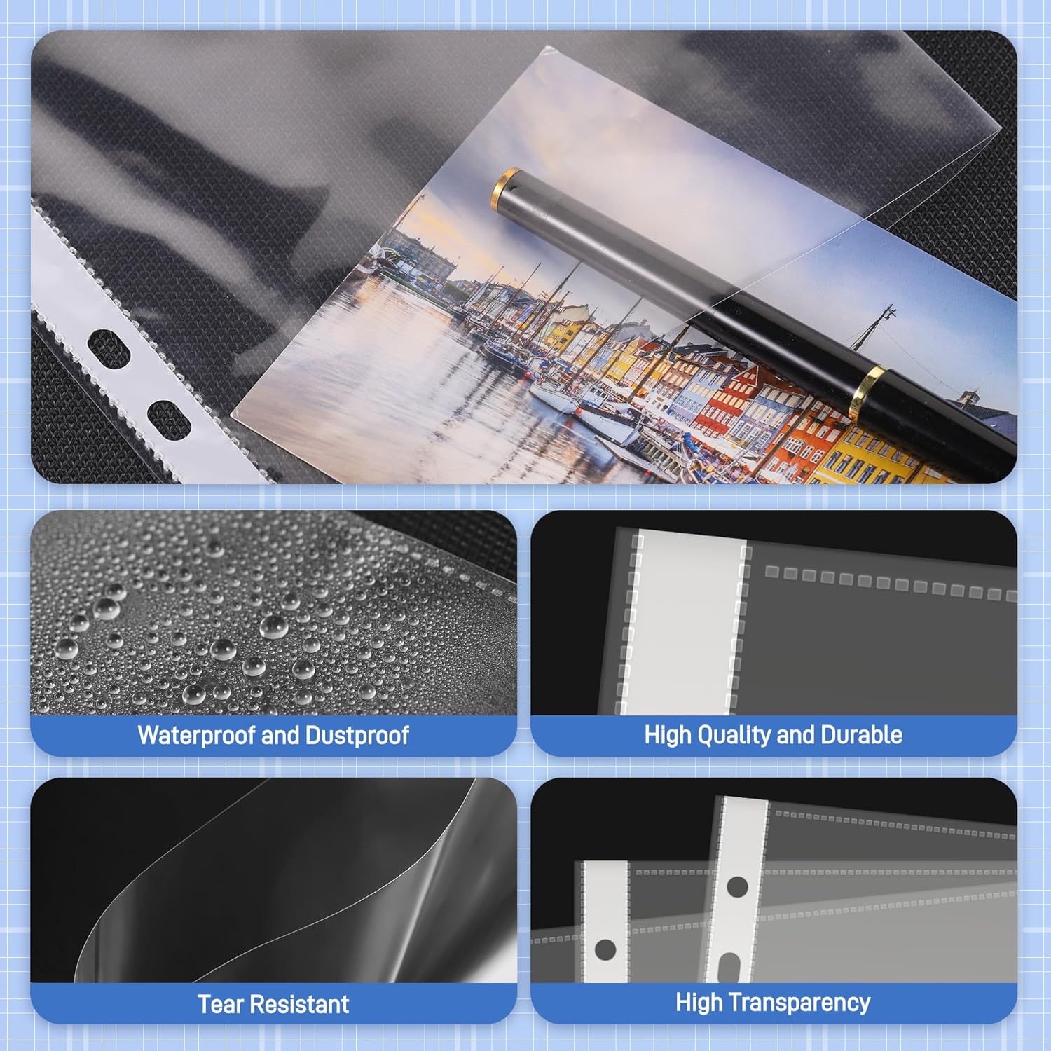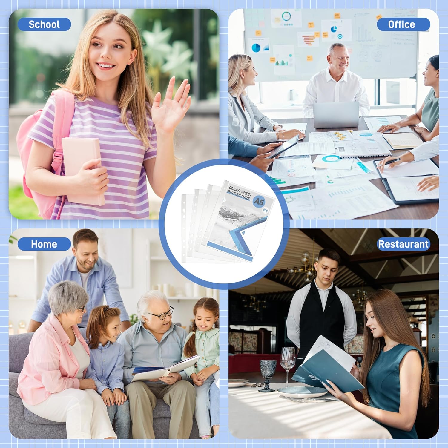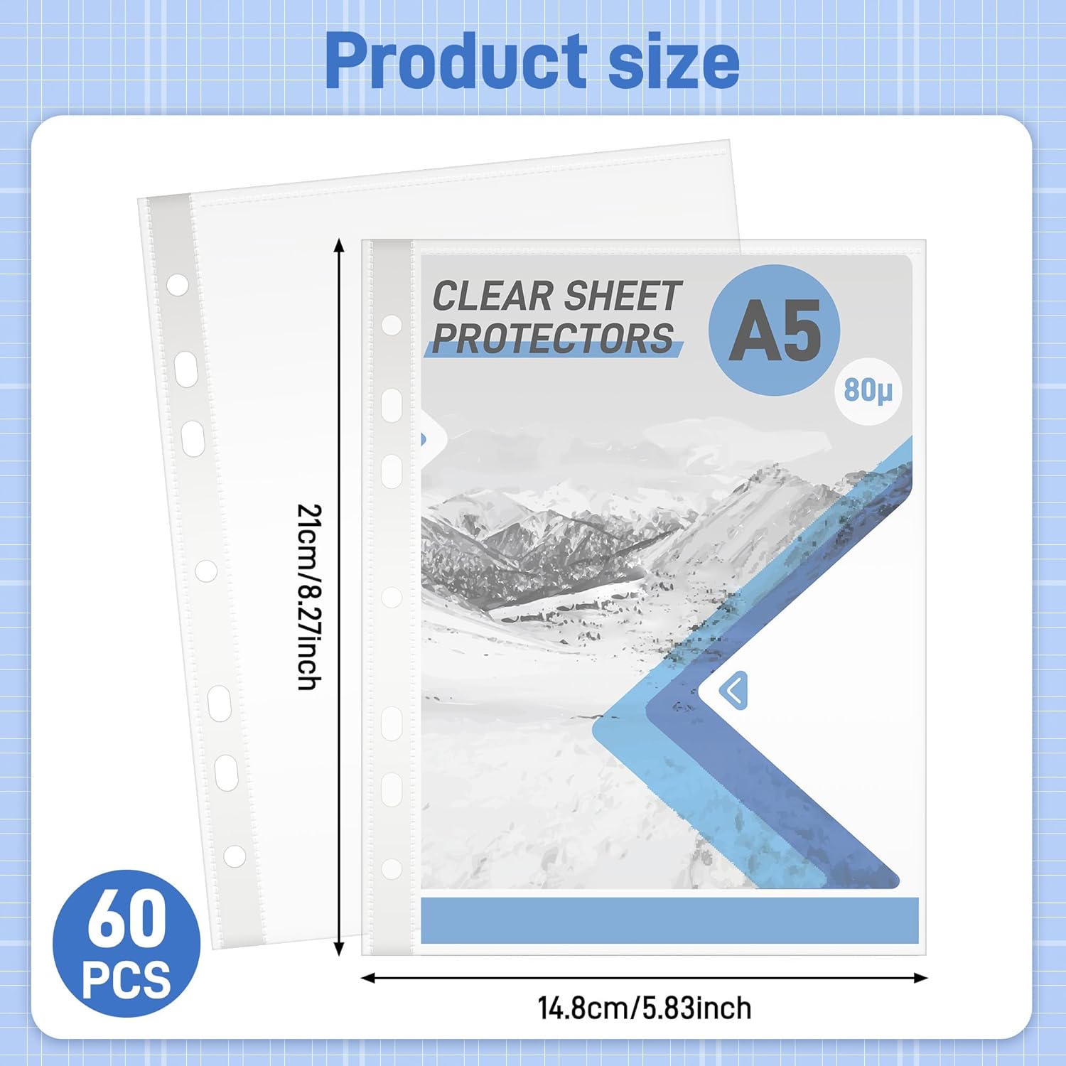 Dimensioni: 60 tasche trasparenti per l'archiviazione in formato A5, dimensioni interne 214 x 152 mm, ideali per documenti in formato A5 (formato A5: 148*210 mm). Tasche trasparenti 168 * 216 mm Ogni tasca è dotata di 7 pratiche perforazioni e di un rinforzo bianco sul bordo. Nota bene: NON si adattano ai raccoglitori A5 a 6 anelli. Materiale: Pellicola trasparente e cristallina in PP con 7 fori di rinforzo per raccoglitori a 2/3 anelli, con spessore della pellicola di 0,08 mm (80 μm), granulosa, impermeabile, resistente all'umidità e durevole. Ideale per conservare, trasportare o archiviare documenti. Quantità: 60 tasche portadepliant, per meccanismo ad anelli 2-D o 3-O, 60 scomparti in totale Tasche portadepliant A5 con apertura trasversale, per la casa, l'ufficio, ma anche per la scuola, l'università, l'università di scienze applicate, gli uffici pubblici e gli uffici. Multifunzione: Design cristallino con spessore di 80µ per una leggibilità ottimale dei documenti inseriti. Grazie alle pratiche tasche è possibile raccogliere rapidamente tutte le carte / i fogli / i buoni / le foto / le cartoline / i foglietti adesivi / i biglietti d'auguri 3D ecc. fino al formato A5. Protezione della carta: Conservate le vostre foto/immagini in tasche trasparenti incolori per documenti in una cartella/raccoglitore A5 con O-ring grazie alle 7 perforazioni sul lato sinistro, per evitare l'ossidazione e l'ingiallimento di biglietti o foto. In caso di dubbio, contattateci per confermare le dimensioni prima dell'acquisto.
