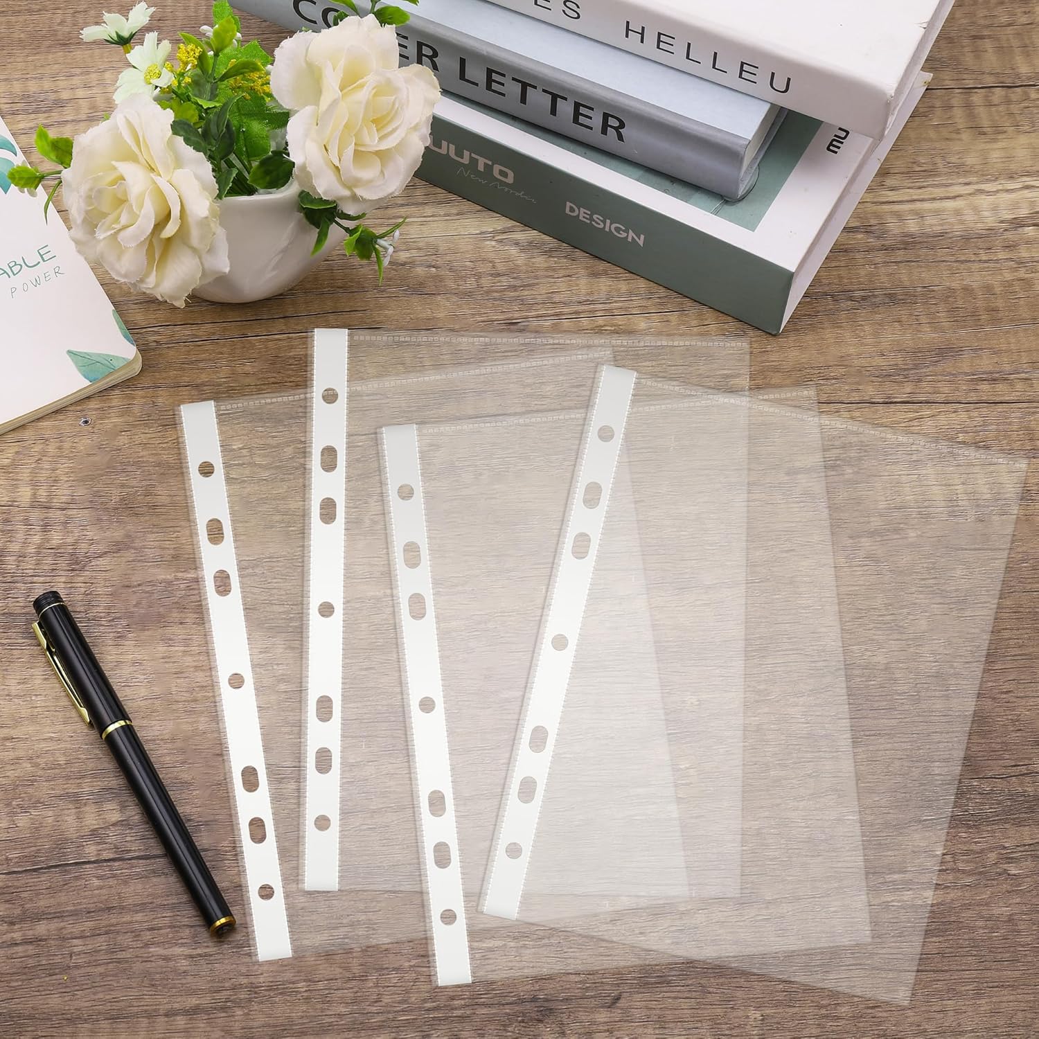 Buste Forate A5, 60 Pezzi Portafogli in Plastica Trasparente, Portadocumenti Extra Forte 80µ, Polly Pocket, Sacchetti Raccoglitori per la Protezione di Carta, File e Documenti