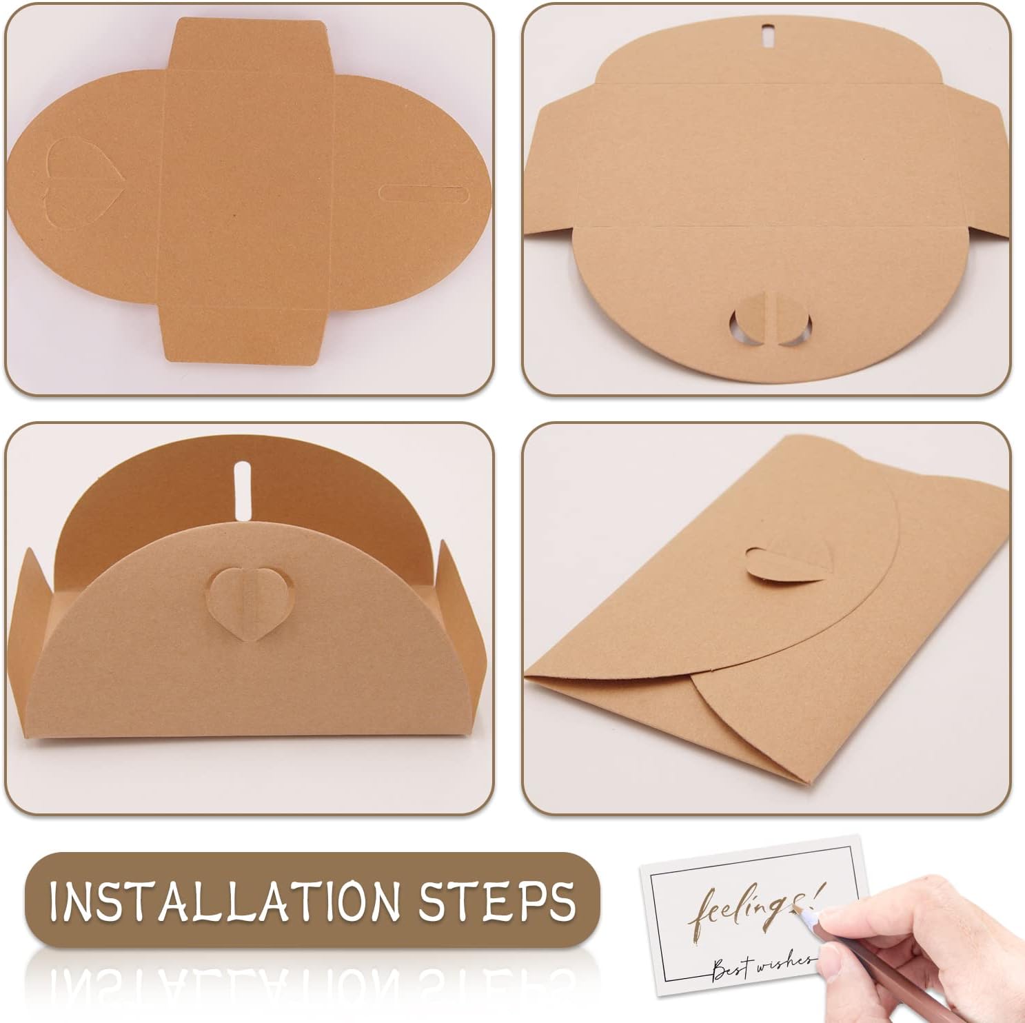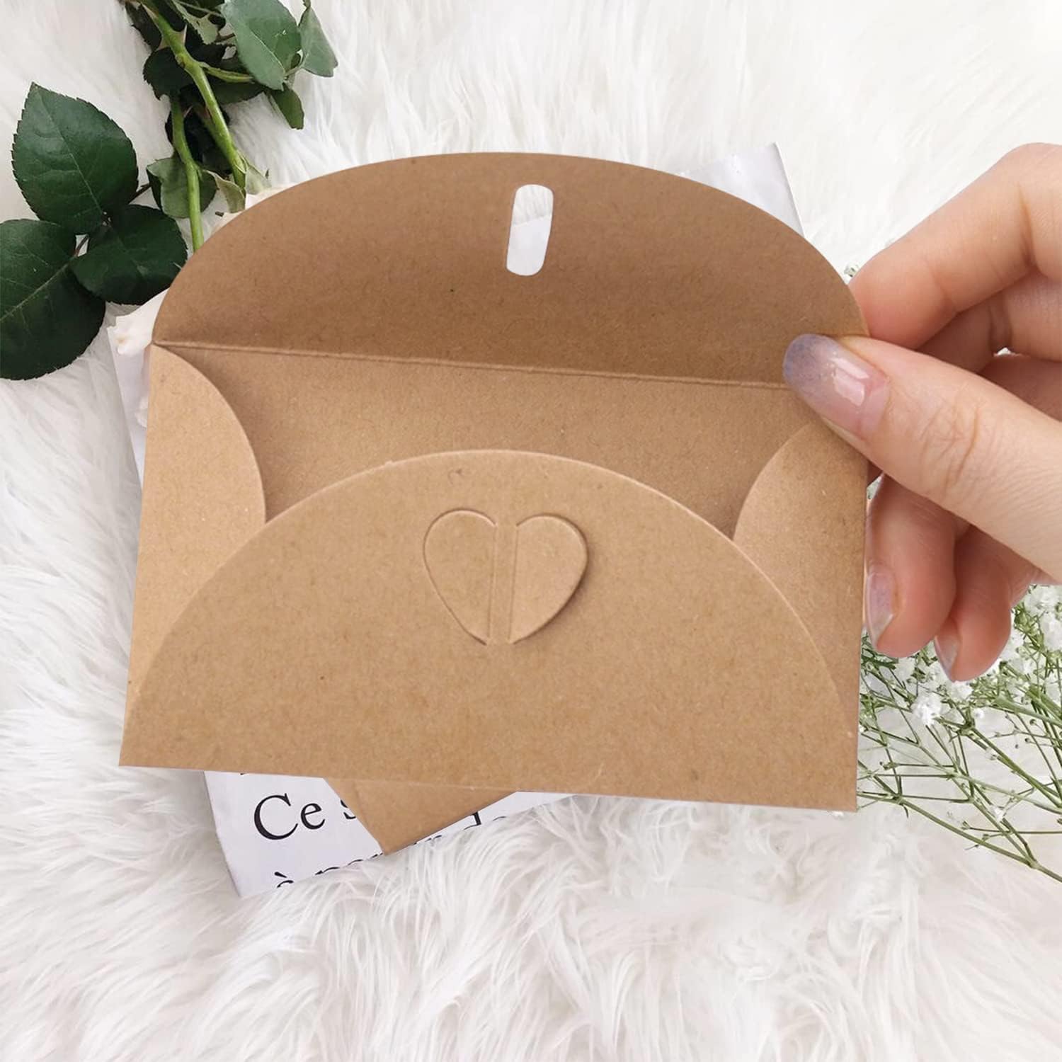 DESIGN UNICOI:Le mini buste sono progettate con una chiusura a forma di cuore, che consente di chiudere le buste senza colla. Ogni buste kraft è chiusa con una fibbia a forma di cuore, esprimendo una sensazione elegante e delicata.