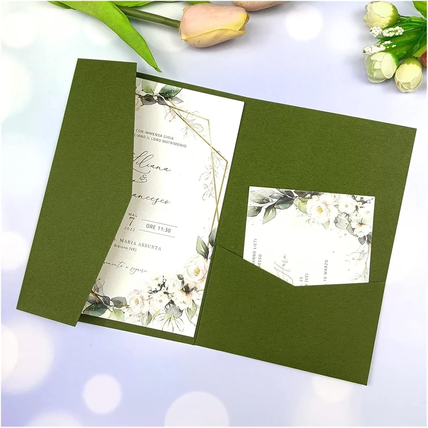 Buste per Partecipazioni di Matrimonio:Le nostre buste inviti sono progettate specificamente per le partecipazioni di matrimonio, con stili eleganti che si abbinano perfettamente ai temi del tuo grande giorno Dimensioni Standard per una Combinazione Facile:Queste buste sono disponibili in dimensioni standard, rendendole ideali per accompagnare le partecipazioni di matrimonio tradizionali. Puoi facilmente creare un look coerente per la tua cartoleria nuziale Chiusura Sicura per la Massima Tranquillità:Ogni busta è dotata di una chiusura sicura che garantisce che le tue partecipazioni rimangano protette fino a quando non arrivano ai tuoi invitati. Questo ti offre serenità durante il processo di invio Personalizzabili per un Tocco Personale:Le nostre buste possono essere facilmente personalizzate con etichette, francobolli o indirizzi scritti a mano Versatili per Diverse Occasioni:Sebbene siano perfette per i matrimoni, queste buste sono anche adatte per altre celebrazioni speciali come anniversari, fidanzamenti e feste formali. Migliora la presentazione di qualsiasi partecipazione con le nostre eleganti buste