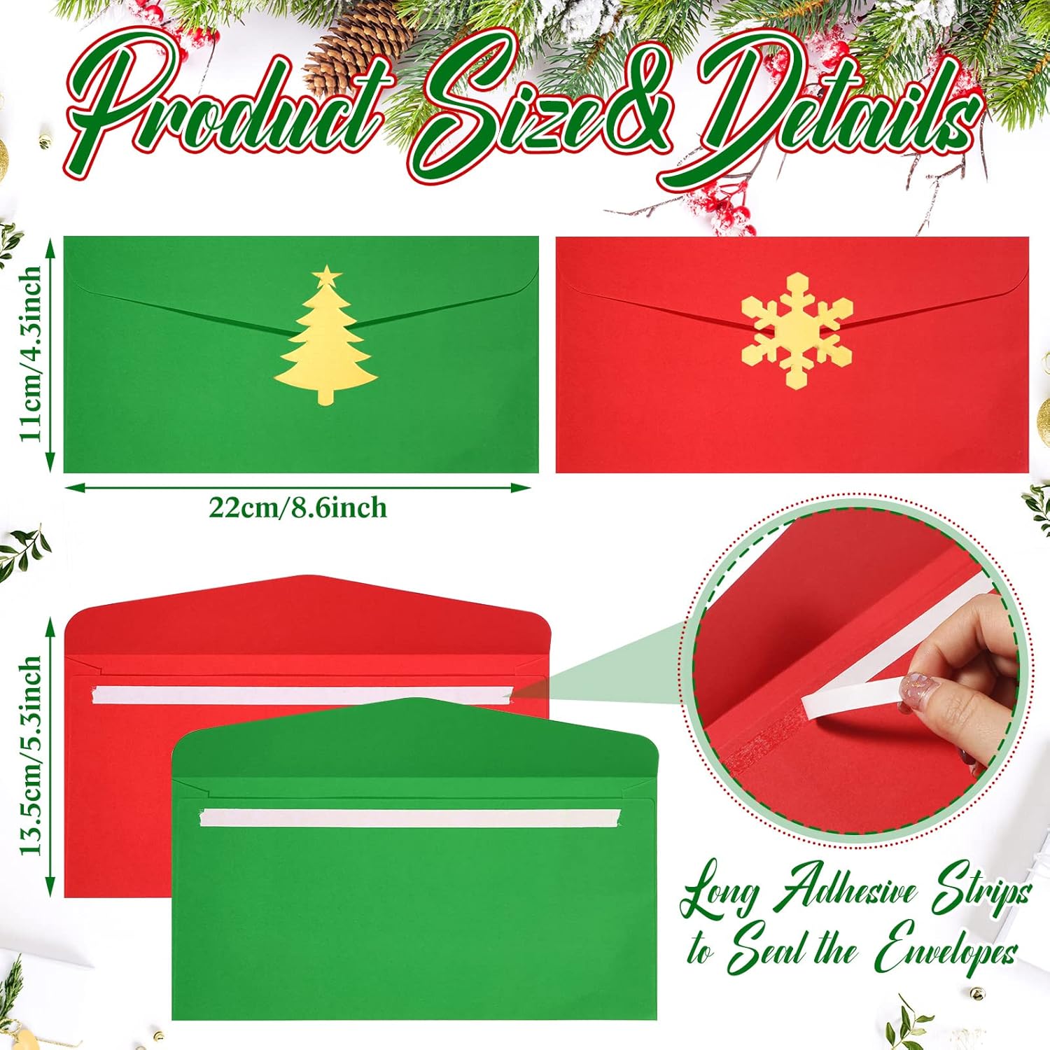 Contenuto della confezione: riceverai 100 buste natalizie rosse e verdi, ogni colore ha 50 pezzi e 192 adesivi per sigilli per buste; quantità sufficiente soddisferà le tue esigenze di utilizzo e puoi condividerle con la tua famiglia Portarti comodità: queste tasche verdi e rosse per biglietti di auguri sono autoadesive, facili da usare e non sono necessari altri strumenti per l'uso, il che ti porterà comodità nell'uso Dimensioni e dettagli materiale: la dimensione delle buste natalizie autoadesive è di circa 220 x 110 mm, la dimensione degli adesivi è di circa 5 cm, entrambi sono realizzati principalmente in materiale di carta affidabile, non facile da rompere o sbiadire; materiale affidabile ti servirà a lungo Design elegante: le nostre buste natalizie rosse e verdi hanno colori vivaci, in linea con l'estetica della maggior parte delle persone, sembrano delicate e belle, gli adesivi per buste sono progettati a tema natalizio, aggiungeranno un'atmosfera festosa Ampiamente applicabile: è possibile utilizzare queste buste natalizie verdi in varie occasioni, come casa, aula, ufficio, feste, baby shower, feste di benvenuto, feste aziendali, ecc., e sono adatte per adulti e bambini
