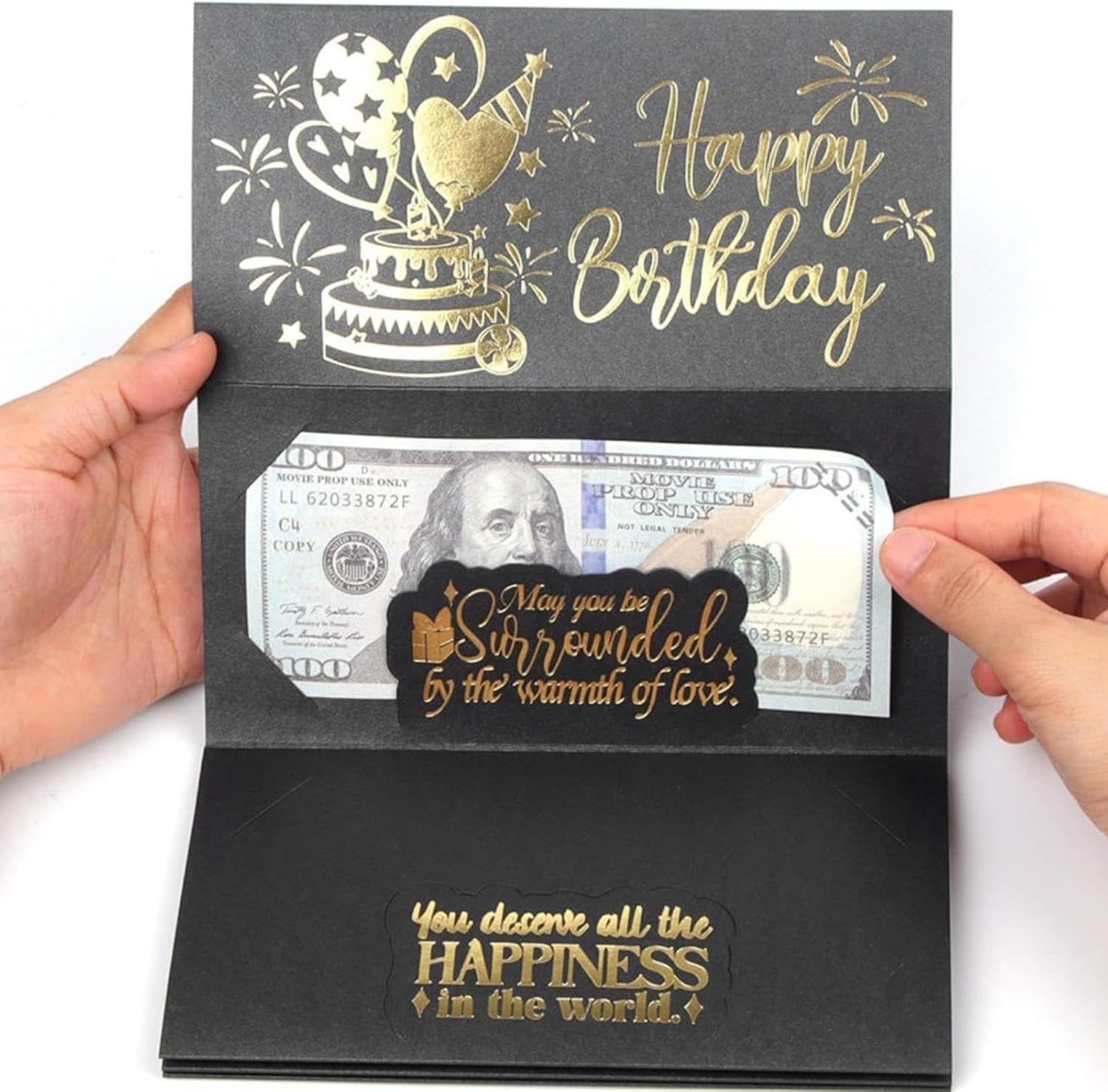 Organizzazione del denaro senza sforzo: fai regali in denaro senza sforzo con i nostri portafogli per soldi per biglietti di compleanno di Natale e di compleanno. Caratterizzate da una busta fermasoldi e sei slot per contanti, queste carte offrono spazio organizzato per raccogliere sei banconote Momenti indimenticabili per la famiglia: perfettamente su misura per ogni compleanno pietra miliare, i nostri biglietti offrono un regalo premuroso a sorpresa, una scelta ideale per qualsiasi festa in famiglia Stampa resistente allo sbiadimento: realizzata con carta robusta e dotata di stampa resistente allo sbiadimento, questa carta assicura un'atmosfera gioiosa, supportando anche pesanti pesi in contanti, pur essendo robusto e riutilizzabile Ampia applicazione: i nostri biglietti interattivi di compleanno offrono un modo unico ed emozionante per sorprendere la tua famiglia e gli amici con contanti. Perfetto per qualsiasi evento come ricordo o versatile opzione biglietto di auguri Lucentezza dorata: i nostri biglietti di compleanno portano uno splendido fascino visivo, con curve, una lucentezza dorata e parole "buon compleanno". Perfetto per aggiungere un tocco indimenticabile al tuo regalo di riunione a sorpresa