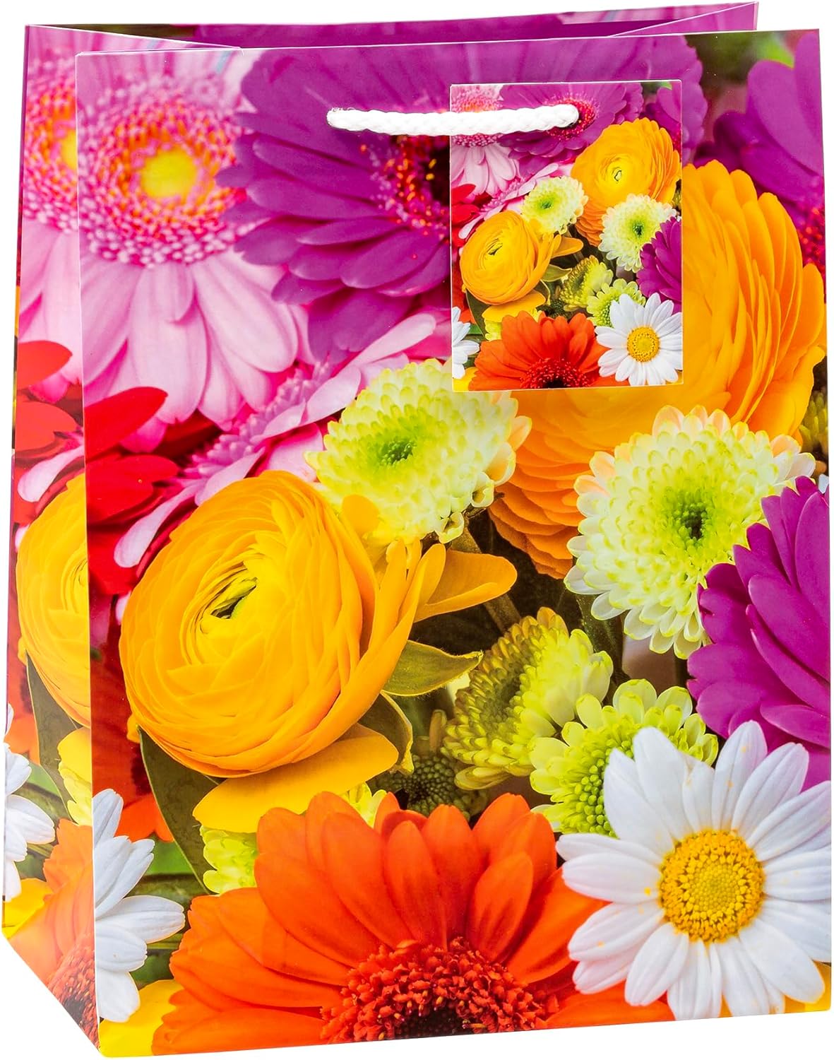 Confezione da 12 sacchetti Dimensioni: (AxLxP) 23 x 18 x 10 cm, corrisponde al formato DIN A5 Laminazione in pellicola PP opaca, resistente all'umidità e agli strappi con cordoncino robusto e etichetta abbinata 6 diversi motivi assortiti Motivo mix di fiori Formato/dimensione: medio