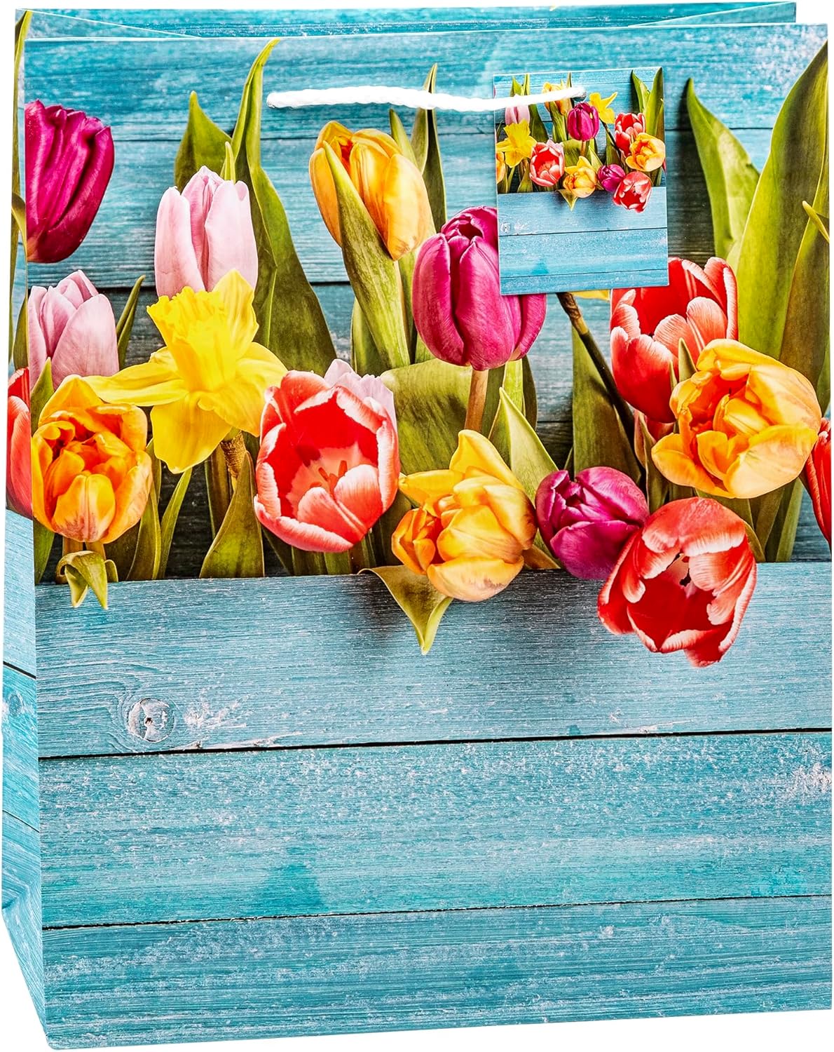 Confezione da 12 pezzi Dimensioni: (AxLxP) 32 x 26 x 13,5 cm, corrisponde al formato DIN A4 Laminazione di pellicola opaca in PP, resistente all'umidità e agli strappi con cordoncino robusto e etichetta abbinata 4 diversi motivi assortiti Motivo primaverile Formato/dimensione: grande