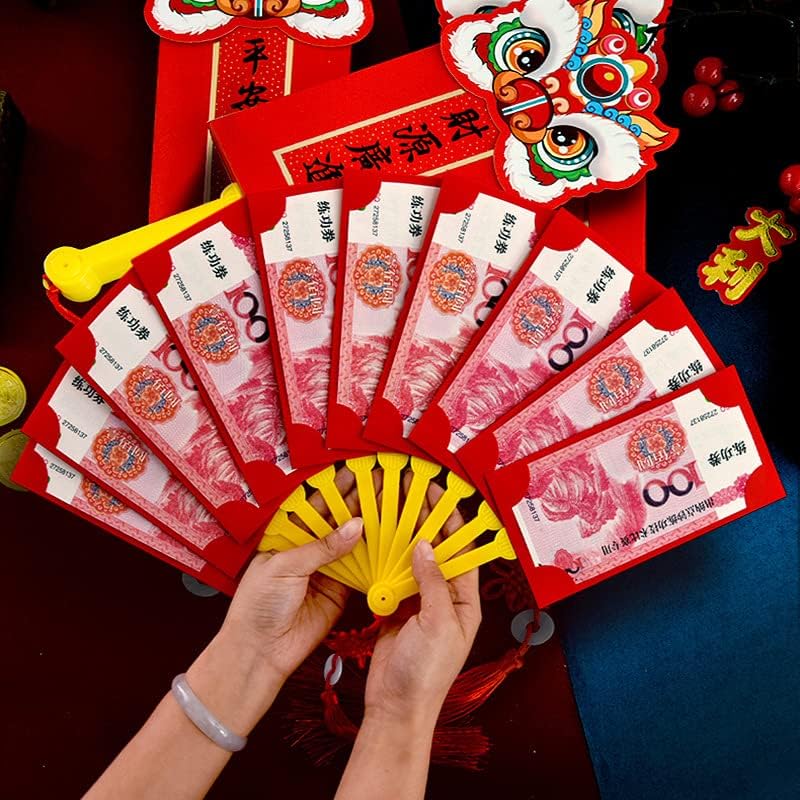Buste rosse divertenti a forma di ventaglio: la busta rossa è progettata a forma di ventaglio, con 10 biglietti rossi con busta. Il design generale è molto nuovo, più accattivante rispetto alla tradizionale busta rossa di Capodanno. Puoi anche inviarlo come una divertente confezione regalo creativa. Materiali di alta qualità: carta di alta qualità, con copertina dorata stampata di alta qualità, con ciondolo a frangia, durevole, non facile da strappare, superficie liscia, confortevole, bell'aspetto, accattivante. Auguri di Capodanno: è un'usanza tradizionale cinese inviare buste rosse a parenti e amici ogni festa di primavera. Il rosso è molto festoso. Le buste rosse potrebbero aiutare a inviare i tuoi migliori auguri alla tua famiglia e agli amici. Decorazione per feste: puoi mettere soldi di Capodanno, biglietti o alcuni oggetti significativi in queste buste rosse. Possono essere un importante complemento alle occasioni e ai giorni più importanti. Puoi usarli per decorare la tua casa o l'albero di Capodanno come decorazioni speciali per le vacanze. Buon significato: Lucky Hong Bao ha un buon significato in Cina, e il denaro nella busta rossa è solitamente chiamato denaro fortunato; in Cina, le persone credono che le buste rosse portino fortuna a coloro che le ricevono e a coloro che le donano, quindi regalare buste rosse è una buona scelta per esprimere i tuoi auguri.