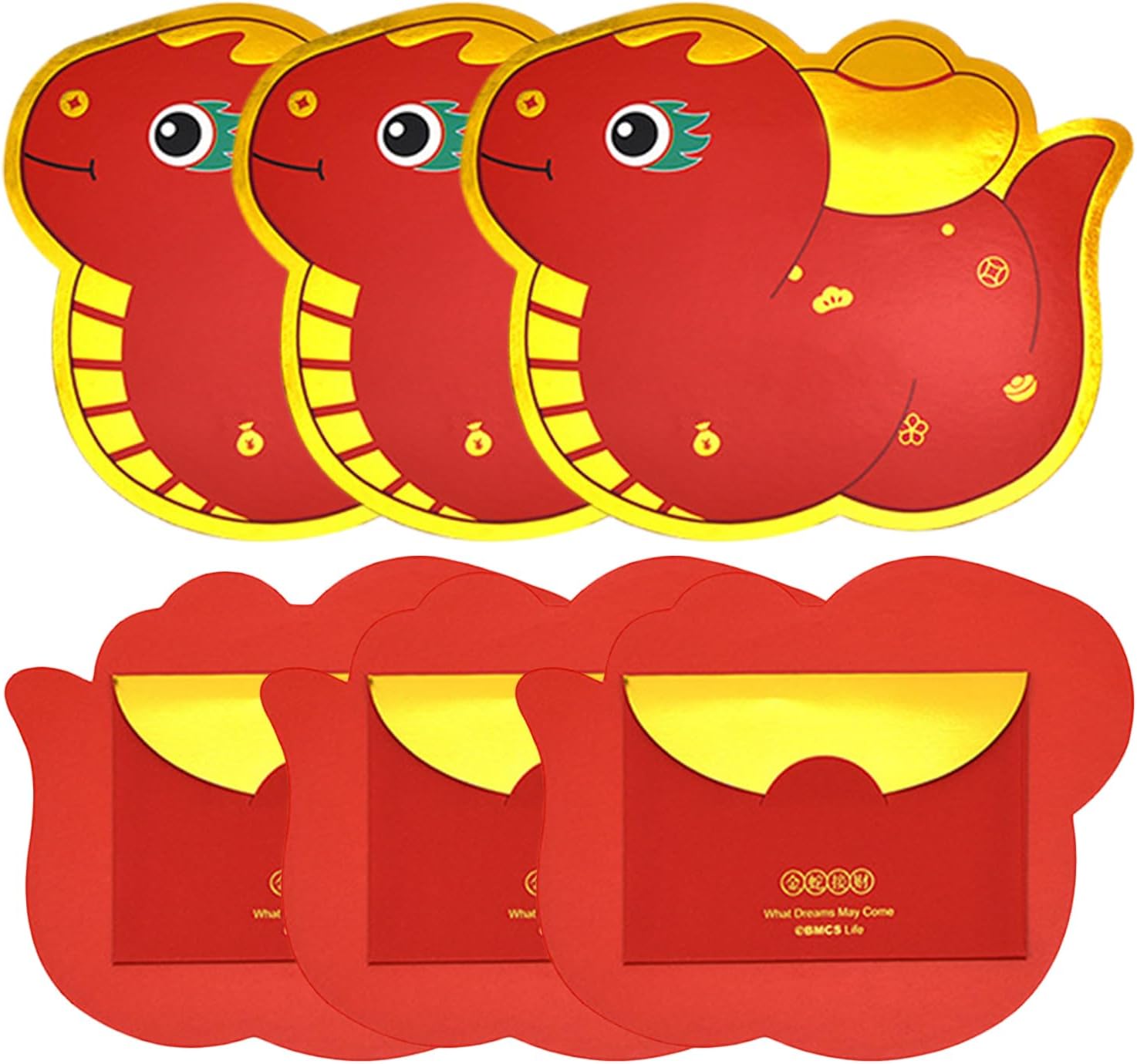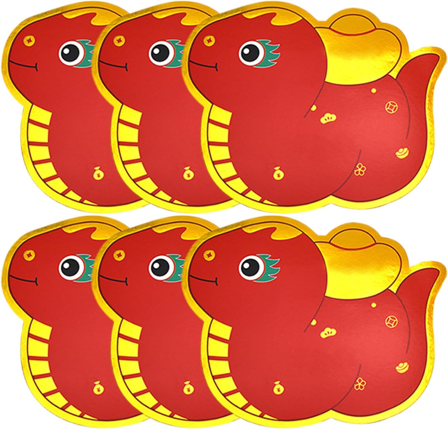 Buste rosse 'anno del serpente,Buste rosse del serpente del Capodanno cinese | 6 buste per il capodanno lunare del serpente dei cartoni animati,Pacchetto rosso 2025 anno del serpente,
