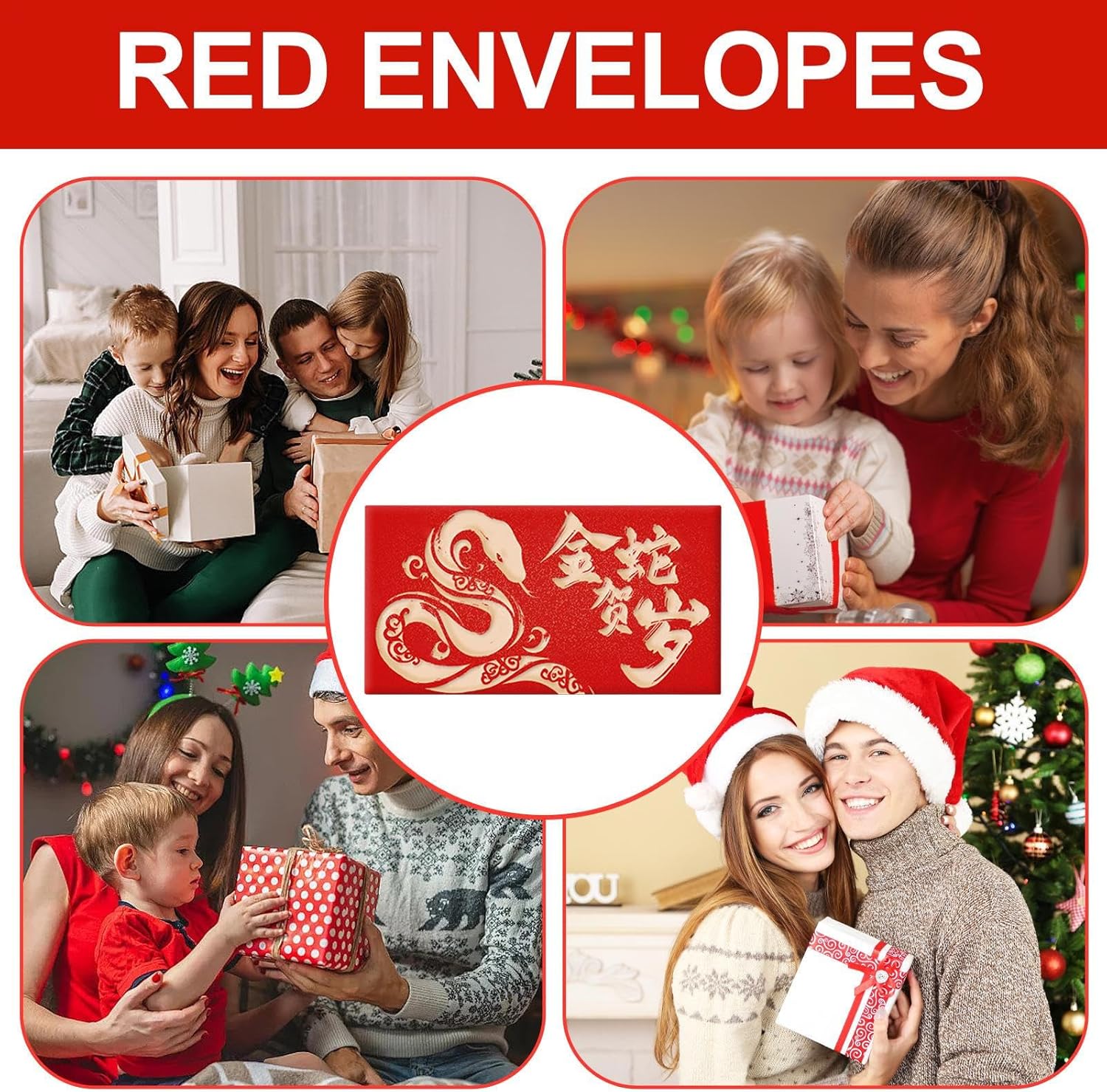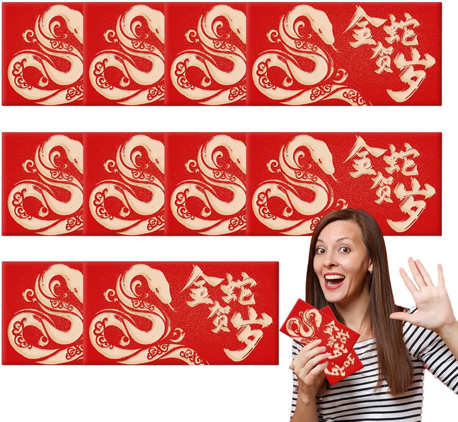 Design portatile: leggero e compatto, queste buste rosse sono ideali per famiglie o eventi aziendali, facili da carry, e perfetti per i piccoli tesori Ampio utilizzo: sollevare le vostre celebrazioni durante il Festival di Primavera e altri eventi auspiciosi con le nostre buste rosse per anni cinesi. Queste buste rosse esprimono i tuoi migliori infortuni per matrimoni, birthdays, e altre occasioni, rendendoli il perfetto presente per chiunque Design unico: bring good luck and beauty to your Chinese Year celebrations with our fashionable red buste that showcase ha unico, gold-stamped golden snake pattern. Le nostre buste sono una miscela perfetta di design tradizionale e moderno, rendendo loro un must-have per qualsiasi occasione festiva Prosperità simbolica: Delight your loved person with good wishes this Chinese Year. Le nostre buste rosse adornate con il golden snake carry simbolic wealth, rendendoli una scelta ideale per i relativi e gli amici. Bring them good luck and prosperity with this auspicious present Far More Durability: The sturdy material of these Chinese Year red Envelopes ensures durability for a long-lasting celebration. Enhanced by hot stamping for an exquisite texture, they provide an excellent hand feel, adding to the festive ambiance and creating unforgettable memories