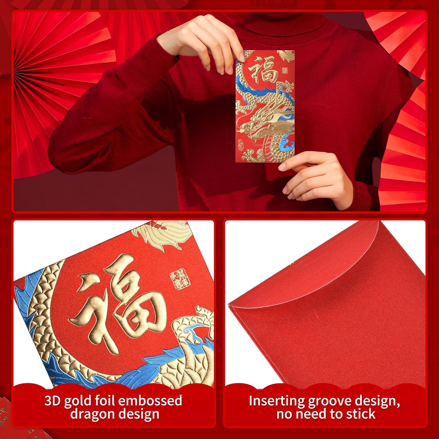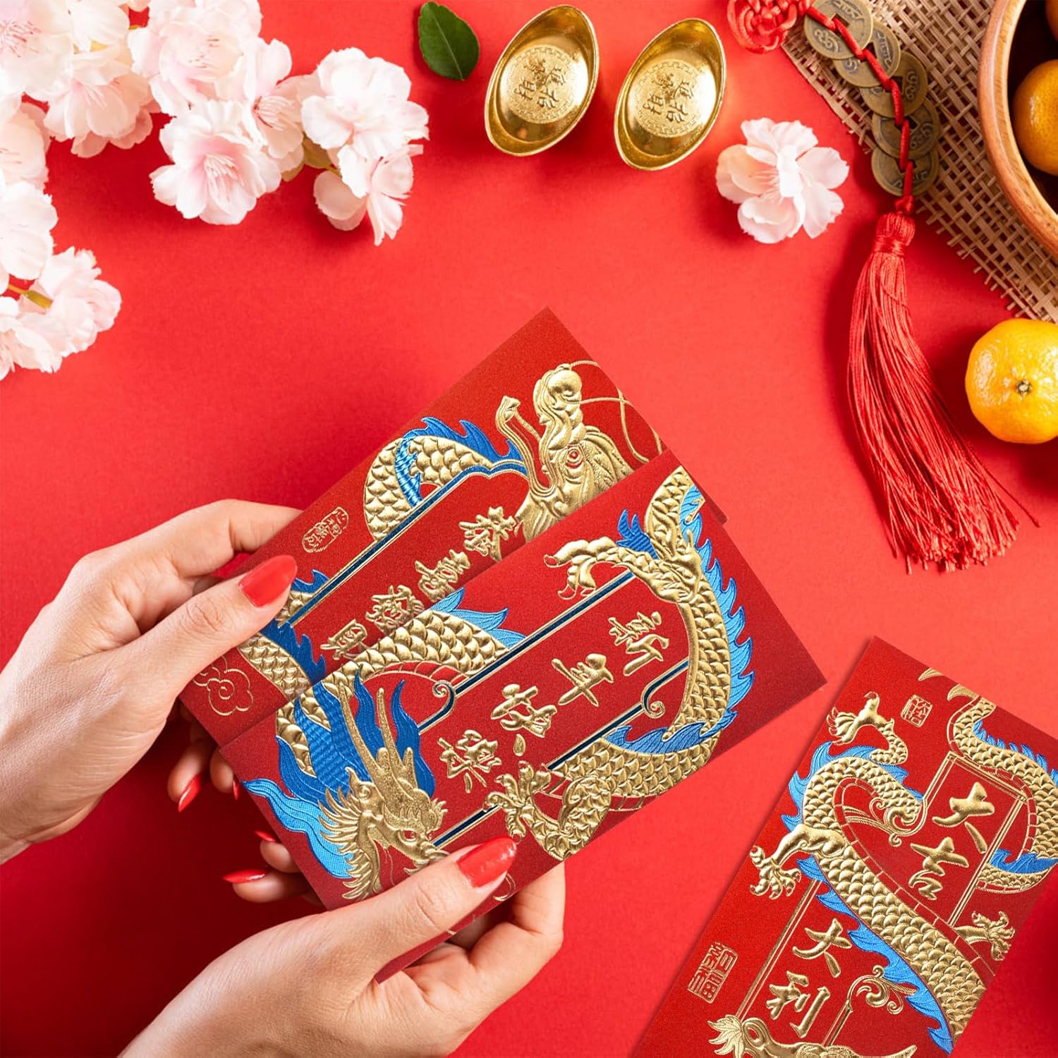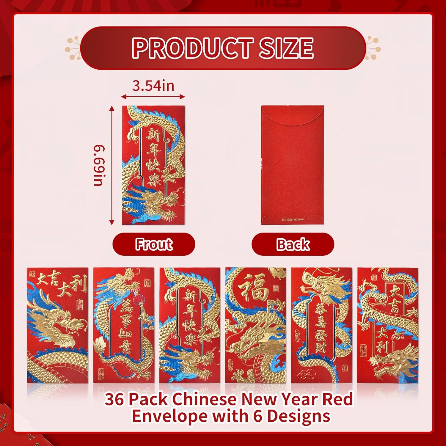 Riceverai: riceverai 36 buste rosse per Capodanno cinese. Quantità sufficiente per soddisfare le vostre esigenze festive. Ampio utilizzo: perfetto per Capodanno 2024, capodanno lunare cinese, compleanni, matrimoni, baby shower o altre occasioni speciali. Aggiungono un'atmosfera festosa a questi momenti speciali. Facile da usare: non facile da rompere o strappare. L'apertura è sigillata inserendo una scanalatura, quindi non è necessario nastro adesivo. Materiale di alta qualità: realizzato in carta lucida rossa resistente di alta qualità. Sono spessi e resistenti. BUONA FORTUNA: Il rosso rappresenta buona fortuna in Cina. Ci sono 6 diverse forme di draghi e motivi di caratteri cinesi sulle buste rosse del capodanno lunare, colorate, belle e accattivanti, esprimendo le benedizioni del Festival di primavera cinese.