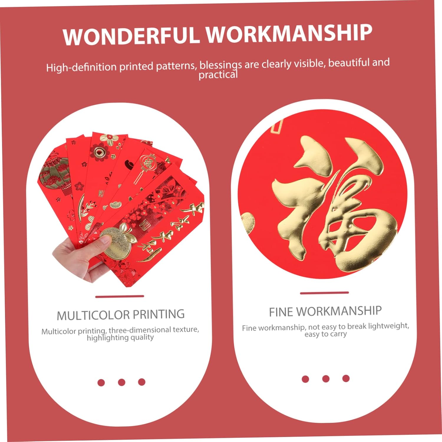 Bustina porta soldi cinese: una bellissima busta rossa per contanti, usala per rendere il tuo rituale di capodanno pieno di fascino retrò, bomboniere per feste di nozze Busta per soldi da matrimonio: è ingegnosa perché può contenere facilmente soldi, collane, braccialetti, e molto altro, busta per soldi cinese Pacchetto rosso in stile cinese: usa queste tasche rosse per sorprendere i tuoi amici o familiari, piene di atmosfera di capodanno, hong bao per matrimonio Buste rosse per il anno: questa busta rossa con vivaci e un bel motivo è molto delicata e pratica, forniture per matrimoni Busta portadenaro: queste buste rosse ti permettono di mettere soldi all'interno, il che sicuramente regala ai una sorpresa, busta rossa per matrimonio cinese