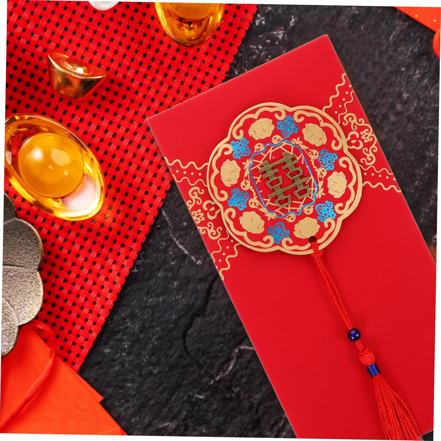 Busta rossa tradizionale - con design a nappa per feste cinesi, ed elegante, articoli per matrimoni Tasca portasoldi rossa per matrimonio - realizzata in materiale resistente, non facile da rompere e sbiadire, per offrirti un'esperienza di utilizzo piacevole, buste cinesi rosse Tasca decorativa per soldi: ogni busta rossa augura ai destinatari gioia, prosperità, benedizioni, fortuna ecc., porta soldi per matrimonio Buste rosse cinesi per matrimonio - con elementi cinesi, creative e uniche, un per matrimonio o capodanno, busta rossa per festival Tasca portasoldi per feste: una bellissima busta rossa per contanti, usala per rendere il tuo rituale nuziale pieno di fascino retrò, buste rosse cinesi