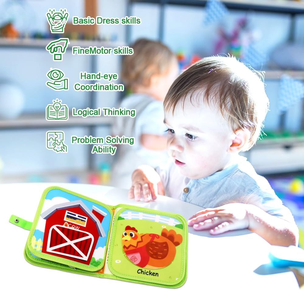 【Giocattoli divertenti】Con i suoi numerosi giochi colorati e progettati con amore, questo libro offre una moltitudine di possibilità che terranno occupati i bambini per ore. Ogni pagina riserva sorprese con nuovi temi appassionanti e sfide creative che stimolano l'immaginazione dei più piccoli. 【Materiale di alta qualità】Il giocattolo è realizzato in tessuto spesso, morbido, leggero, liscio e senza asperità. Ha una durata diversa e non lascia residui di colla. È più resistente grazie alla tecnologia della doppia cucitura e all'indurimento del velcro. 【Tanto divertimento con il libro】 Busy Board è un'immagine in 3D che raffigura le attività della fattoria, offrendo ai bambini più divertimento e apprendimento. I giocattoli per le dita, vestire le pecore, far nascere i pulcini, nutrire le mucche con l'erba e altre interazioni stimolano l'immaginazione e la creatività dei bambini. 【Favorisce lo sviluppo di competenze importanti】 Grazie alle diverse attività, il libro favorisce lo sviluppo motorio, cognitivo e sensoriale. Aiuta i bambini a riconoscere i colori, le forme e gli oggetti in modo divertente, favorendo al contempo il pensiero logico e la coordinazione occhio-mano. 【Il regalo perfetto】Il libro di attività per i più piccoli allontana i vostri bambini dagli schermi, non solo per giocare in casa, ma anche come giocattolo da viaggio, e può anche essere utilizzato come regalo ideale per bambini e bambine in occasione di compleanni, Natale, Halloween e Ringraziamento.