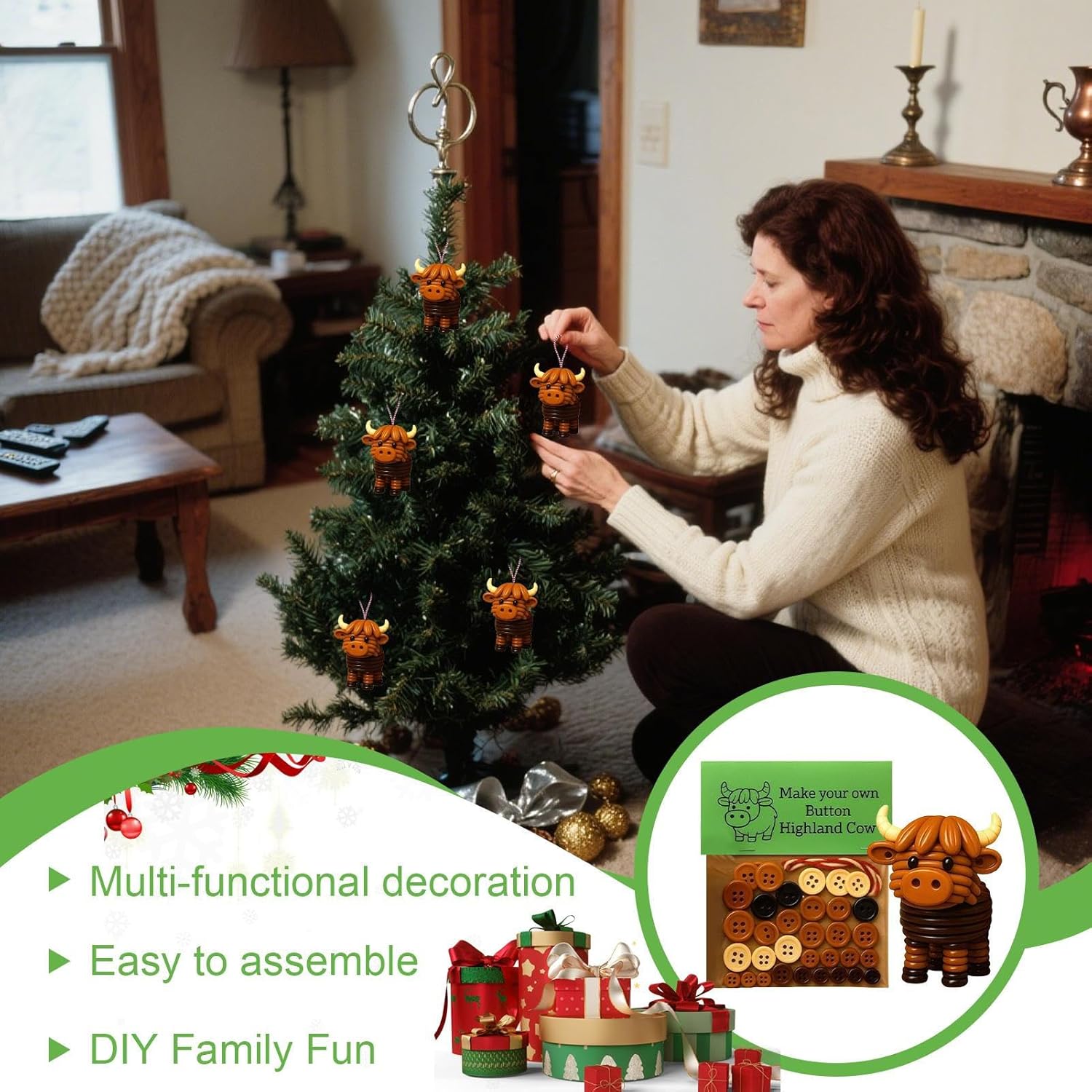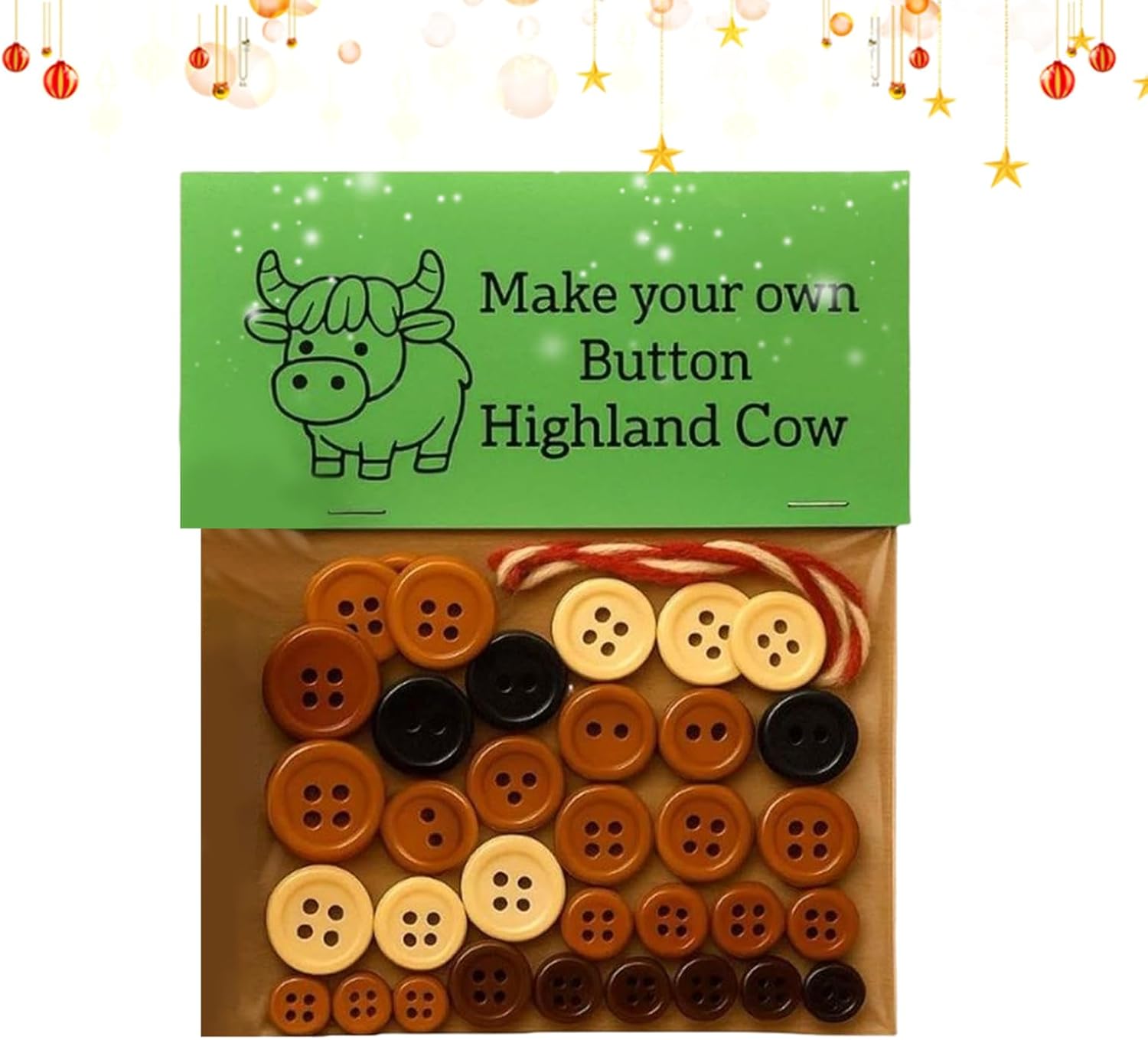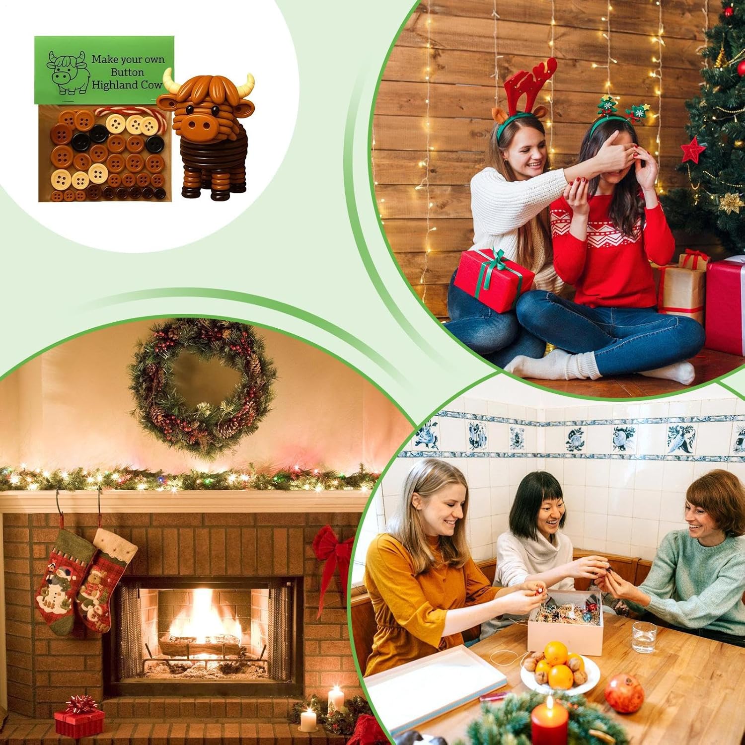 Crafting with Loved Person: This Highland Cow Button Orna ment kit encourages collaboration as a hands-on project designed to unite families, enabling them to bond over creating creative handmade button decorations and cherish memories during time spent together Family-Friendly Decoration: Button ornament kits provide an eng aging experience through their user-friendly design, enabling effortless installation and ensuring accessibility for adults and children alike, suitable for festive Christmas decoration projects during the holiday season Perfect Festive Addition: Designed to lift festive decor, the Butt on Highland Cow Craft Kit provides an excellent opportunity to style your home creatively, bringing warmth and charm to window or Christmas trees during special holiday seasons effortlessly Exquisite Present: 3D Animals Button Decor functions as an ging present that conveys deep emotions like love and care, suitable for surprising family, friends, or partners during special events such as Christmas or Year gatherings Creative Family Activity: Christmas button ornament kits pro vide families with an engaging way to explore creativity and enhance crafting skills, fostering meaningful connections and shared joy in designing creative festive decorations together
