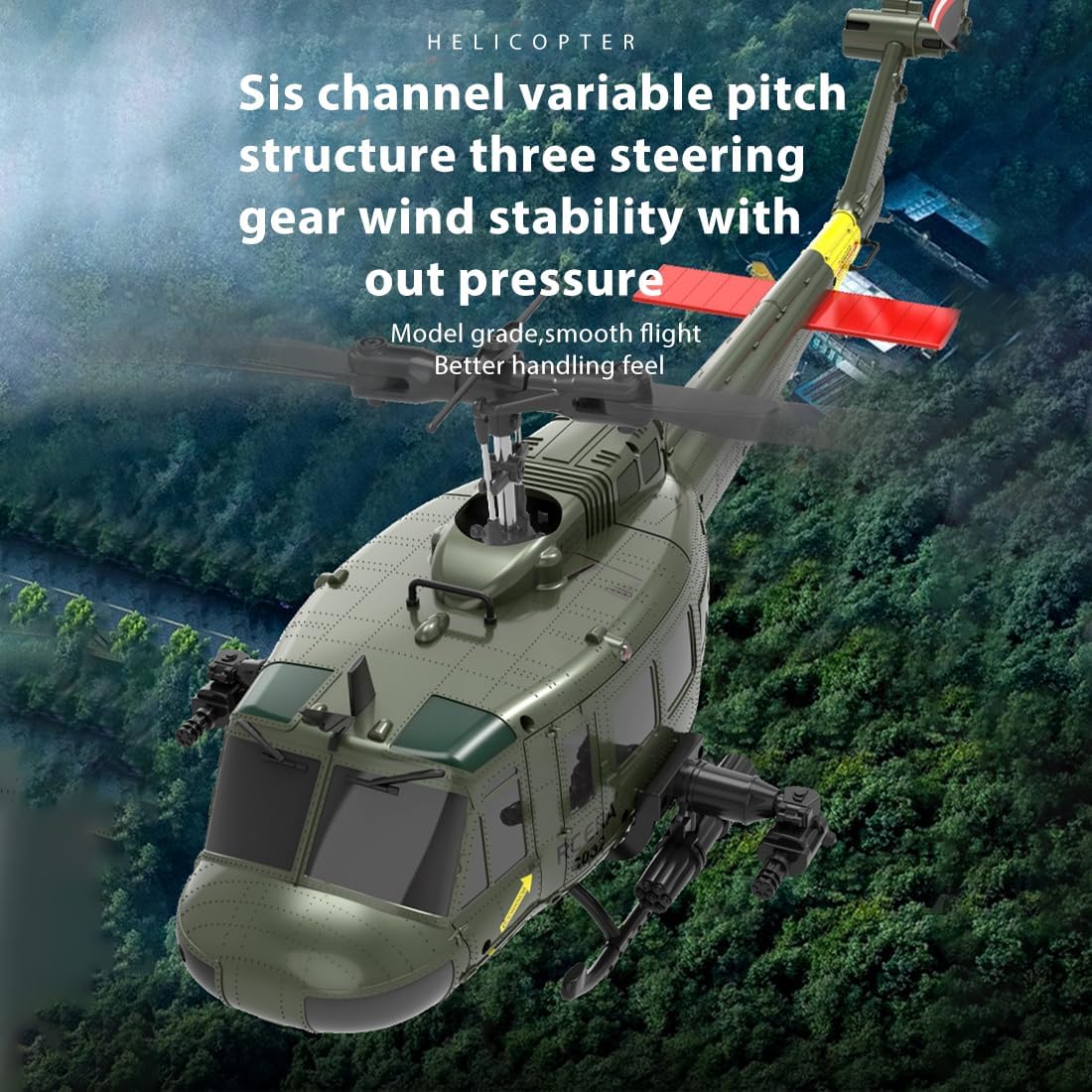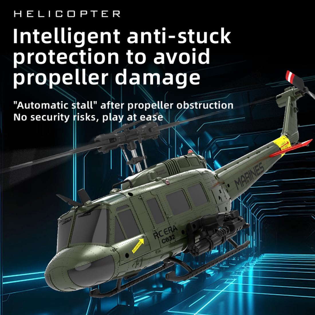 C032 UH-1 Huey Flybarless RC Era Elicotteri per adulti principianti, scala 1/48 6CH 2.4G stabilizzazione giroscopio a 6 assi, con mantenimento dell'altitudine e volo invertito 3D per gli