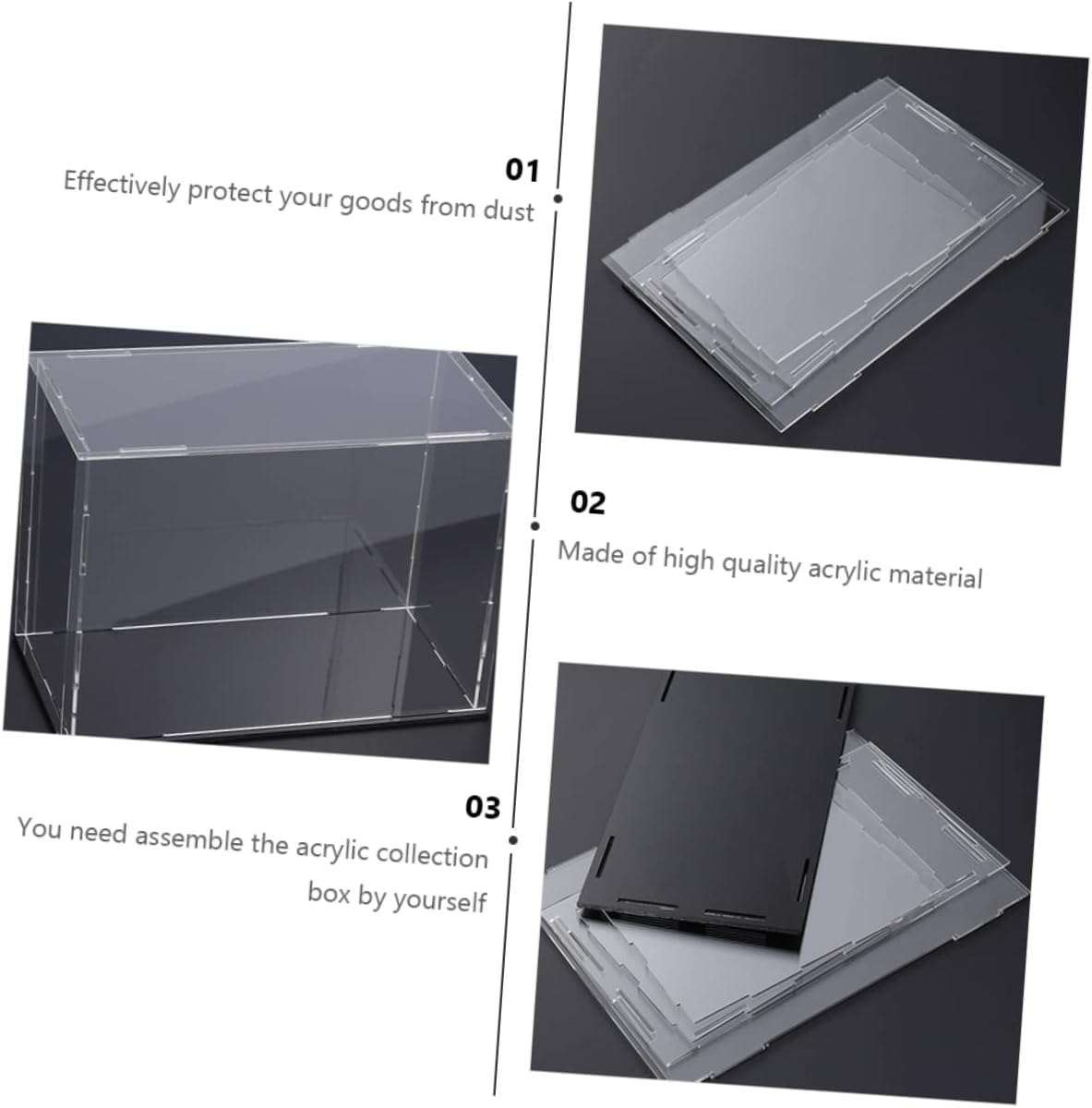 SCATOLA ESPOSITIVA TRASPARENTE: dona al tuo oggetto da collezione un'esposizione elegante. creativo e chic. ESPOSITORE PER FIGURINE D'AZIONE - realizzato in materiale acrilico di alta qualità. vetrina per figure MENSOLA TRASPARENTE PER FIGURINE - realizzata in materiale acrilico. ORGANIZZATORE DI FIGURE POP: evita che i tuoi modelli raccolgano polvere e mantienili in bell'aspetto. SCATOLA PER TROFEI - devi assemblarla da solo - la scatola da collezione in acrilico per figurine.