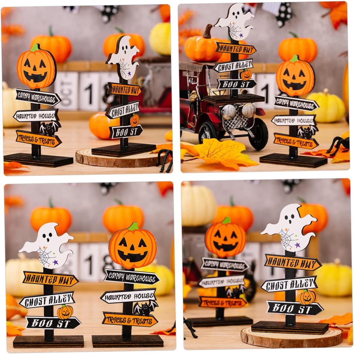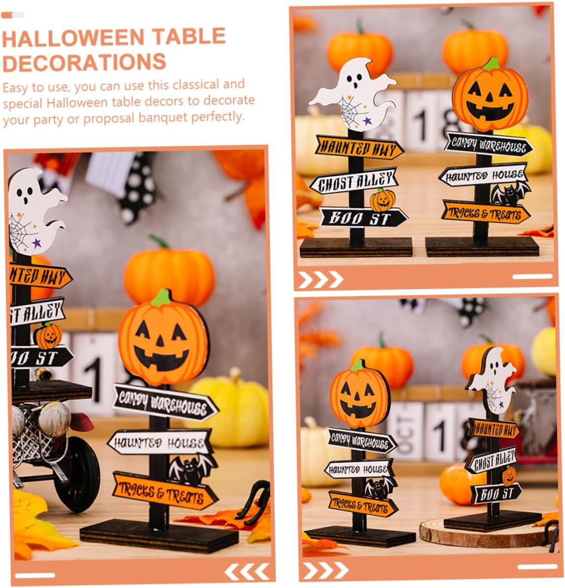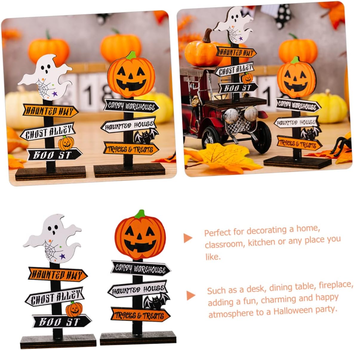 Centrotavola di halloween: ottima fattura, buona consistenza, dettagli raffinati, buona decorazione e bell'aspetto, arredamento. Decorazione del cartello da tavolo di halloween: la decorazione del tavolo di halloween è adatta per molte occasioni, come festival di halloween, feste a tema di halloween, feste di compleanno, feste in costume, ecc., adatto per decorare casa, ufficio, bar, ristorante, cortile, soggiorno, ecc., , per offrirti divertimento, toppers per cupcake di halloween. Tavolo di halloween: il cartello del centrotavola è realizzato in materiale di legno, questo cartello da tavolo di halloween in legno può essere utilizzato, centrotavola di halloween. Decorazioni di halloween: design della struttura a fondo piatto, puoi posizionarlo stabilmente sulla scrivania, inoltre, può abbinarsi bene con altri decori, figurine da scrivania fantasma. Gonfiabili: puoi utilizzare questa decorazione da tavolo in legno per creare più atmosfera da scena di halloween per la tua festa, decorazioni da tavola con cartello di zucca.