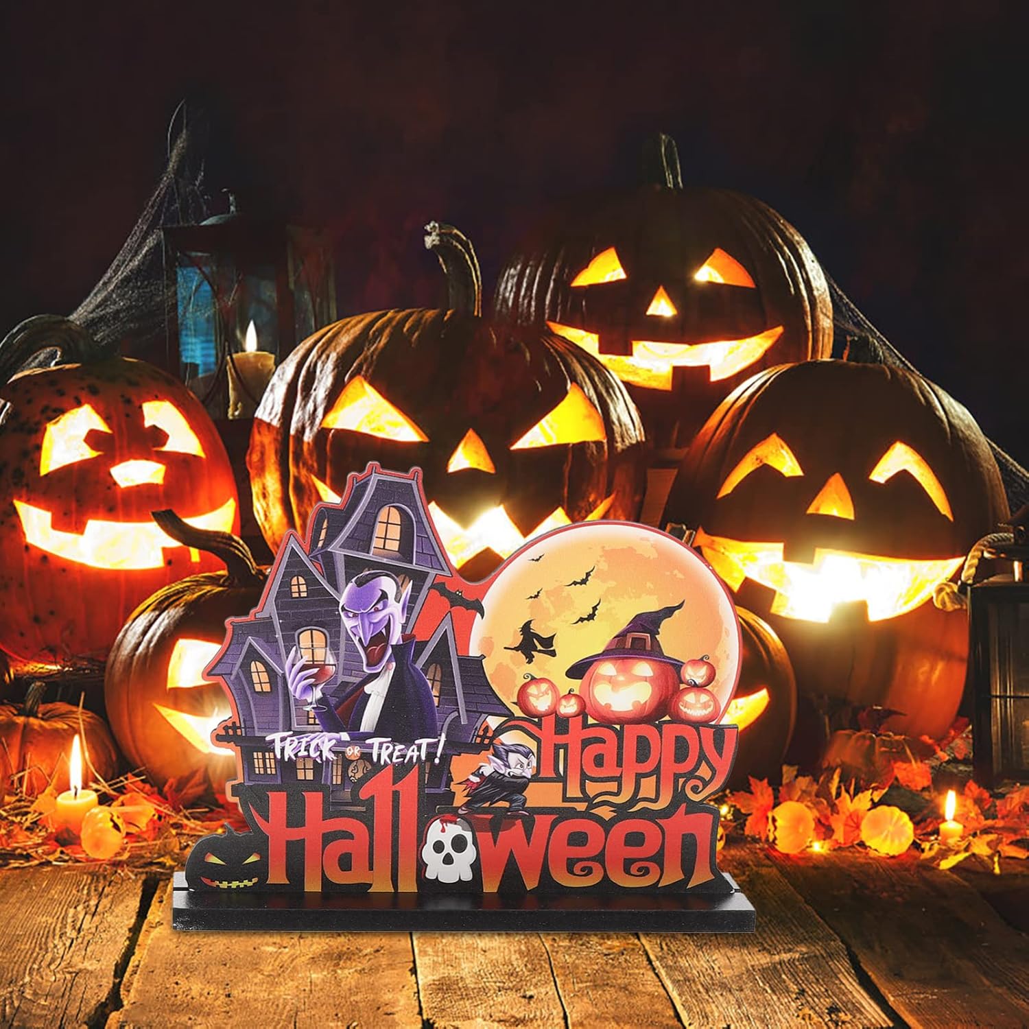 Ornamento da tavolo di halloween: materiale in legno e robusto, può essere utilizzato a lungo, puoi riutilizzarlo per molte volte, centrotavola creativo. Ornamento da tavolo in legno: decorazione per interni ed esterni, come casa, giardino, porta d'ingresso, ufficio, ecc., che può essere utilizzato per molte occasioni, cartello da tavolo di halloween. Decorazioni da tavolo: le decorazioni da tavolo di design a tema halloween per aiutarti a creare un'atmosfera di festa terrificante, puoi usarle per decorare la tua festa, decorazioni per la tavola della casa stregata. Decorazioni da tavola: non solo puoi usare il centrotavola di halloween per decorare la tua casa, ma può anche essere una buona scelta di vacanza per i tuoi amici, , ecc., di felice halloween. Decorazione del desktop: leggero e comodo da riporre, non occupa spazio quando non è in uso, puoi portarlo ovunque tu voglia, spettrale cartello da tavolo di halloween.