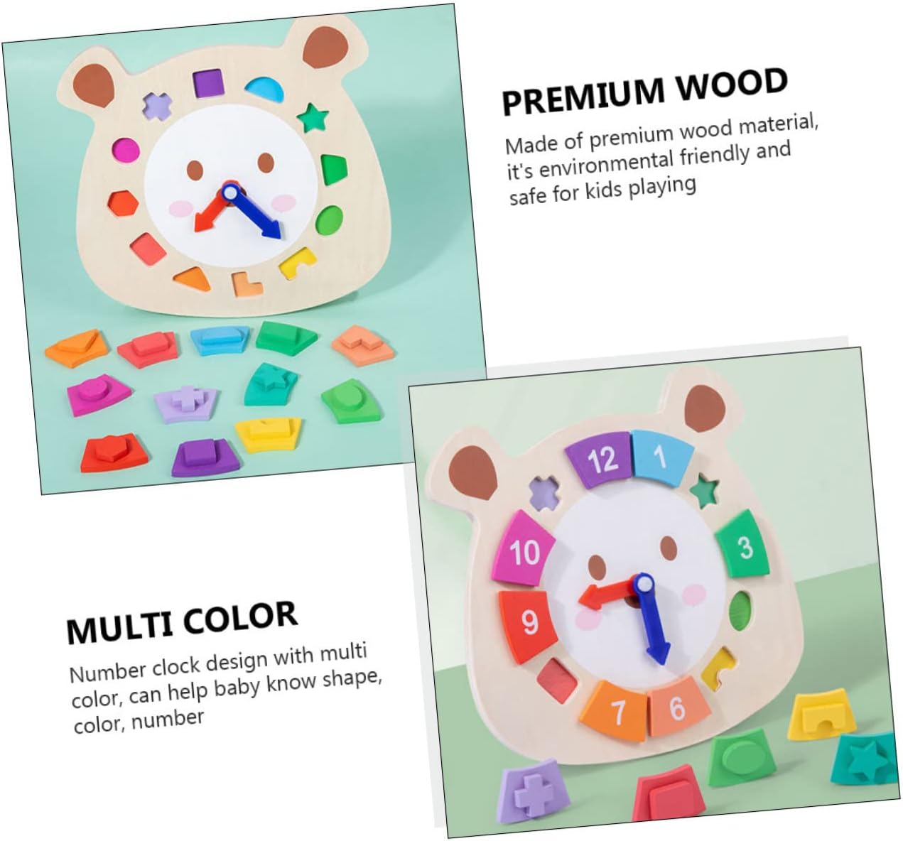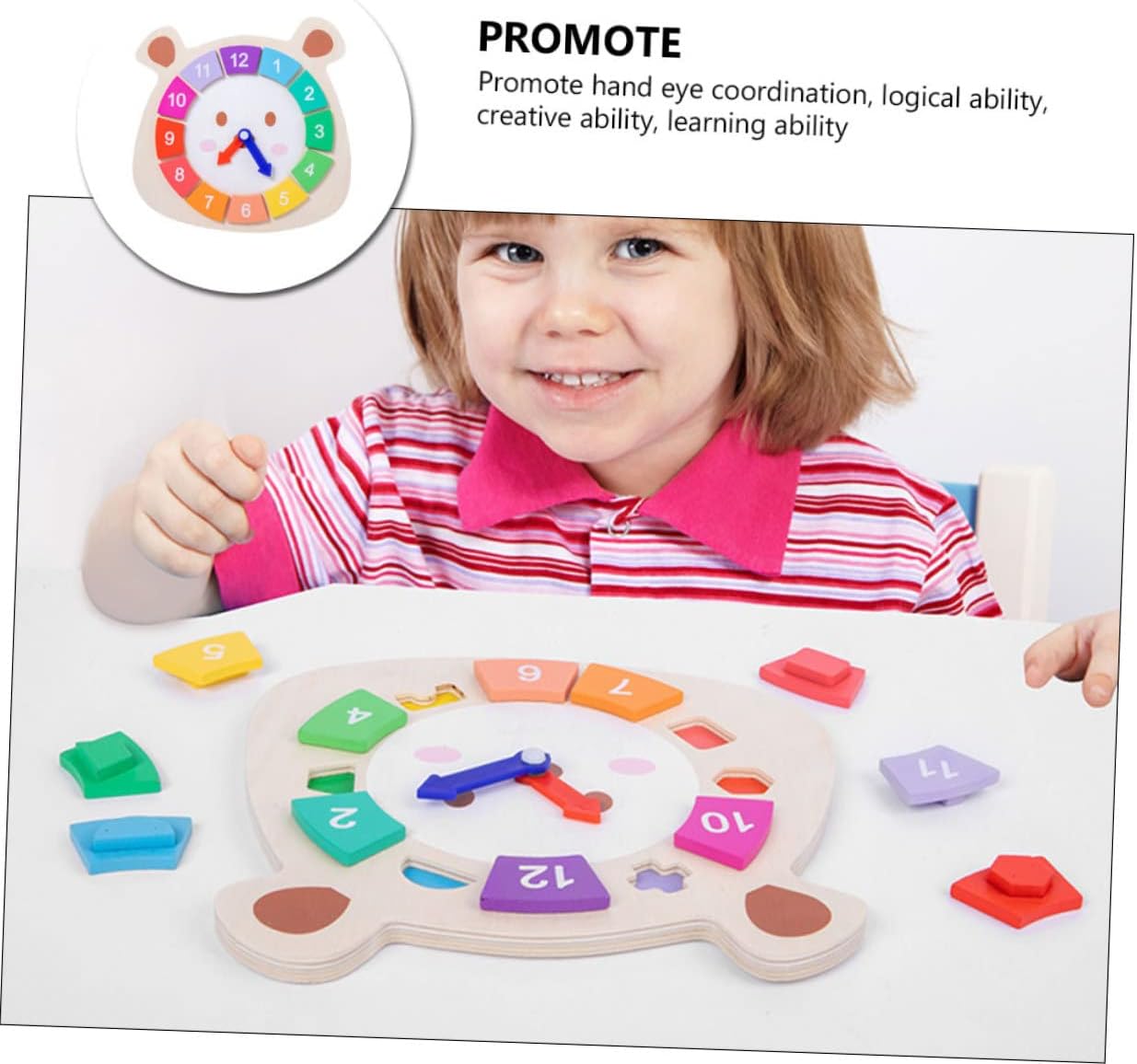 Giocattolo cognitivo dell'orologio: una scelta meravigliosa per bambini e amici, un semplice dello sviluppo intellettuale dei bambini, giocattolo dell'orologio Orologio educativo in legno: macinazione fine, superficie liscia senza sbavature, non farà male alle , strumenti didattici Giocattolo didattico per cartoni animati: l'orologio di smistamento è progettato per insegnare ai bambini più piccoli le capacità motorie, i numeri, i colori, le forme e i concetti di tempo, giocattoli educativi Giocattolo educativo: è un giocattolo utile per far interagire i bambini con i membri della famiglia e può insegnare ai bambini a saperne di più sull'ora e sulla forma, sugli orologi in legno Giocattolo didattico in legno: l'operazione è semplice e puoi facilmente regolare l'ora ruotando il puntatore sul disco, orologio in legno