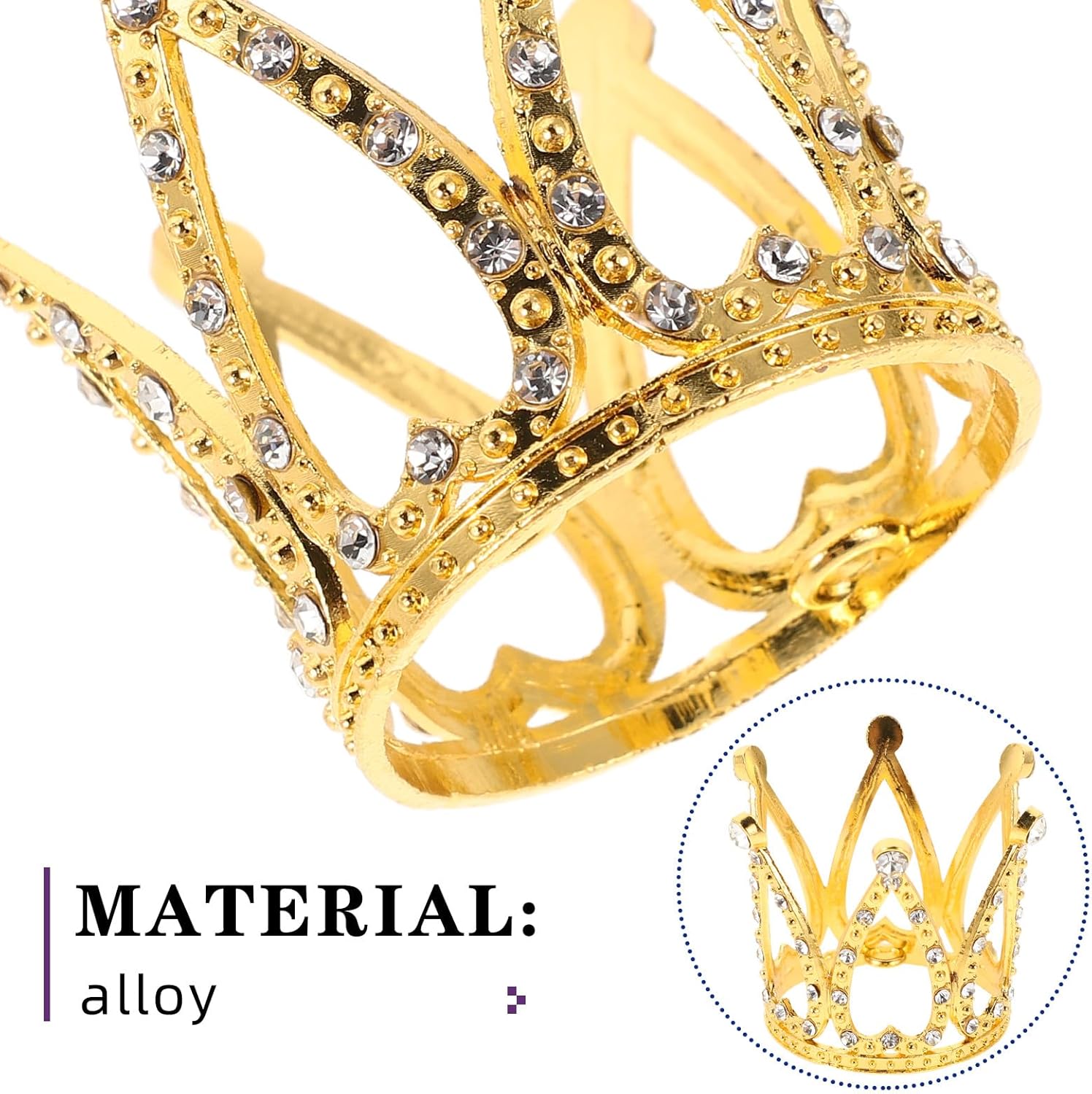 Fascino lussuoso: la mini di strass aggiunge un tocco regale alle decorazioni per torte di compleanno, diventando un pezzo di spicco per decorazioni di torte da principessa o corone per torte nuziali Adatto a più occasioni: ideale come decorazione per torte per baby shower, decorazioni per feste principesche o decorazioni per torte di buon compleanno, questa decorazione a forma di è adatta sia alle celebrazioni per bambini che per adulti Facile da usare: la mini per cake topper è leggera e facile da posizionare, il che la rende un'aggiunta pratica a qualsiasi tavolo per torte, cupcake o dessert Lavorazione resistente: questa decorazione per torta a forma di in metallo è realizzata con precisione, garantendo durevolezza e un aspetto resistente per qualsiasi per feste o decorazione per torta Brillantezza accattivante: la decorazione per torta con strass brilla in modo brillante, rendendola la scelta ideale per decorazioni per torte scintillanti o decorazioni con strass a