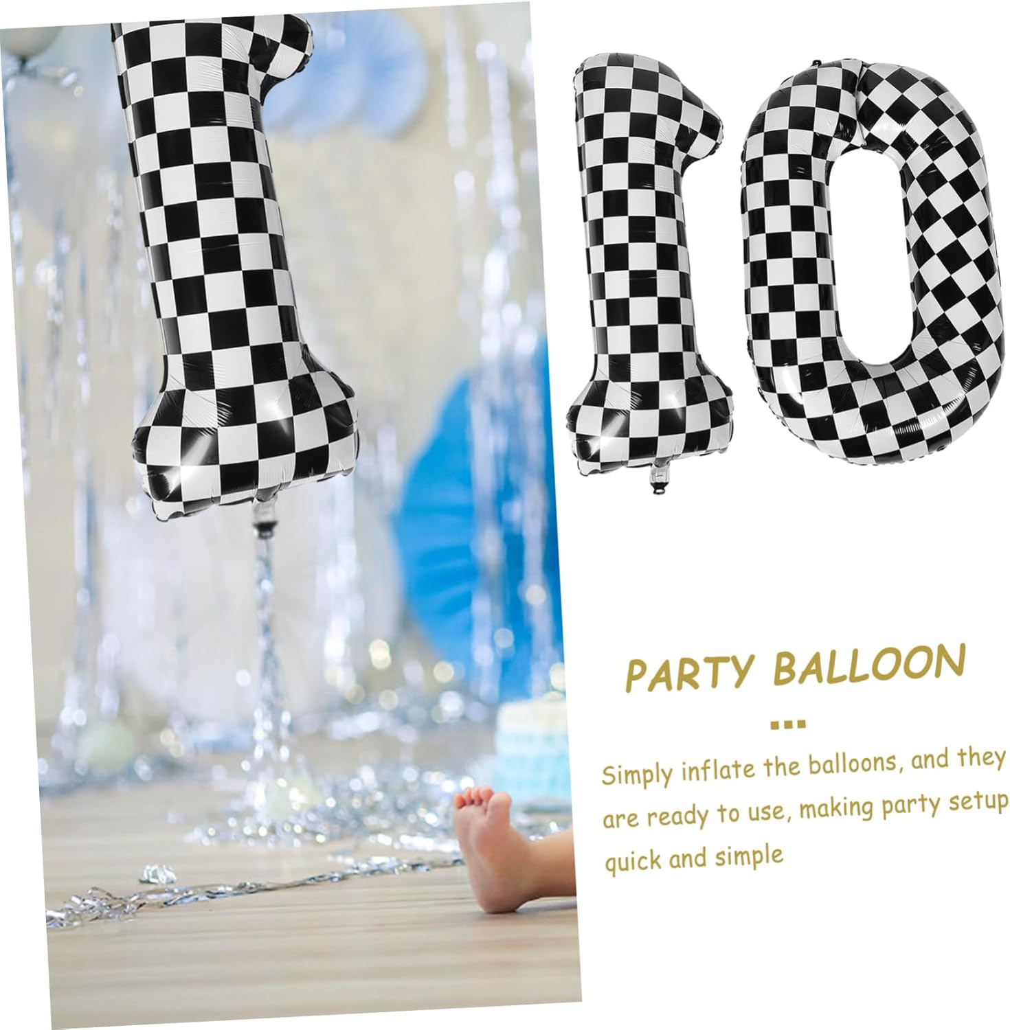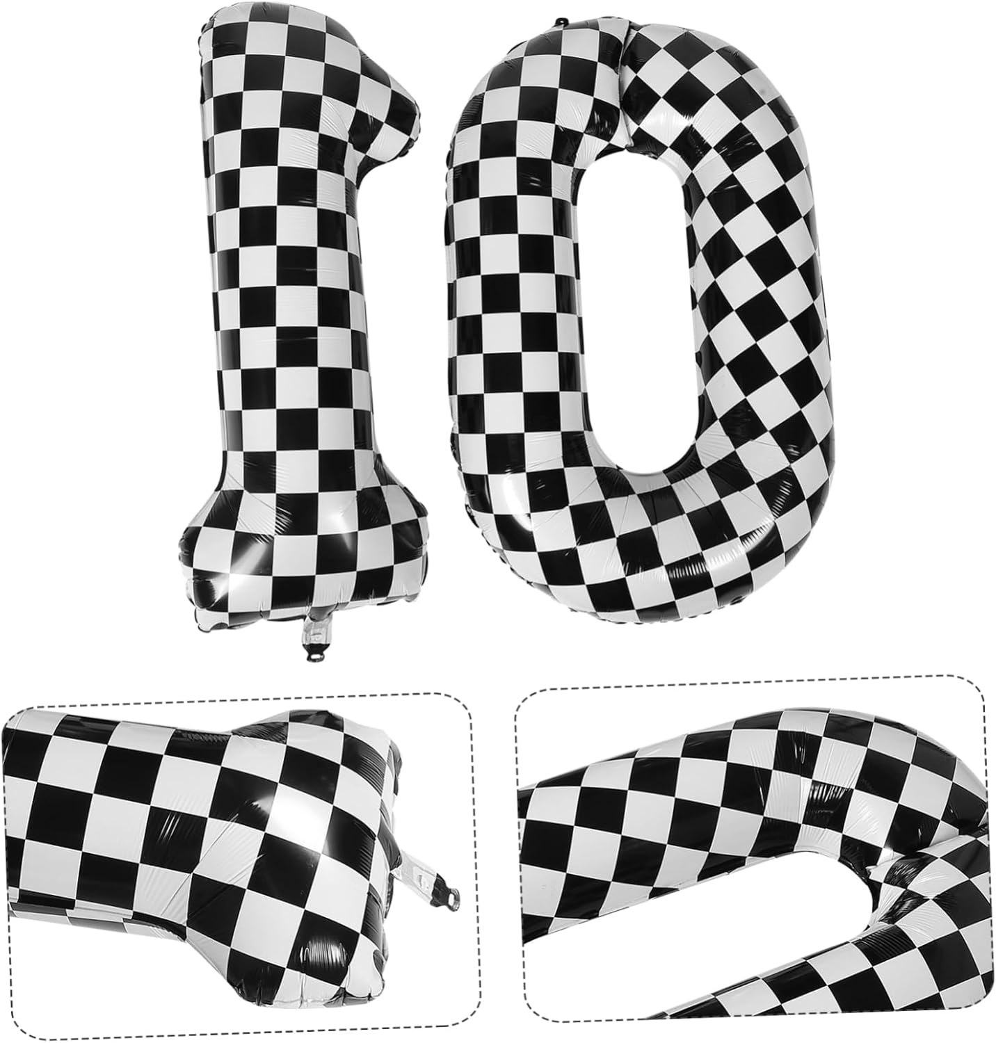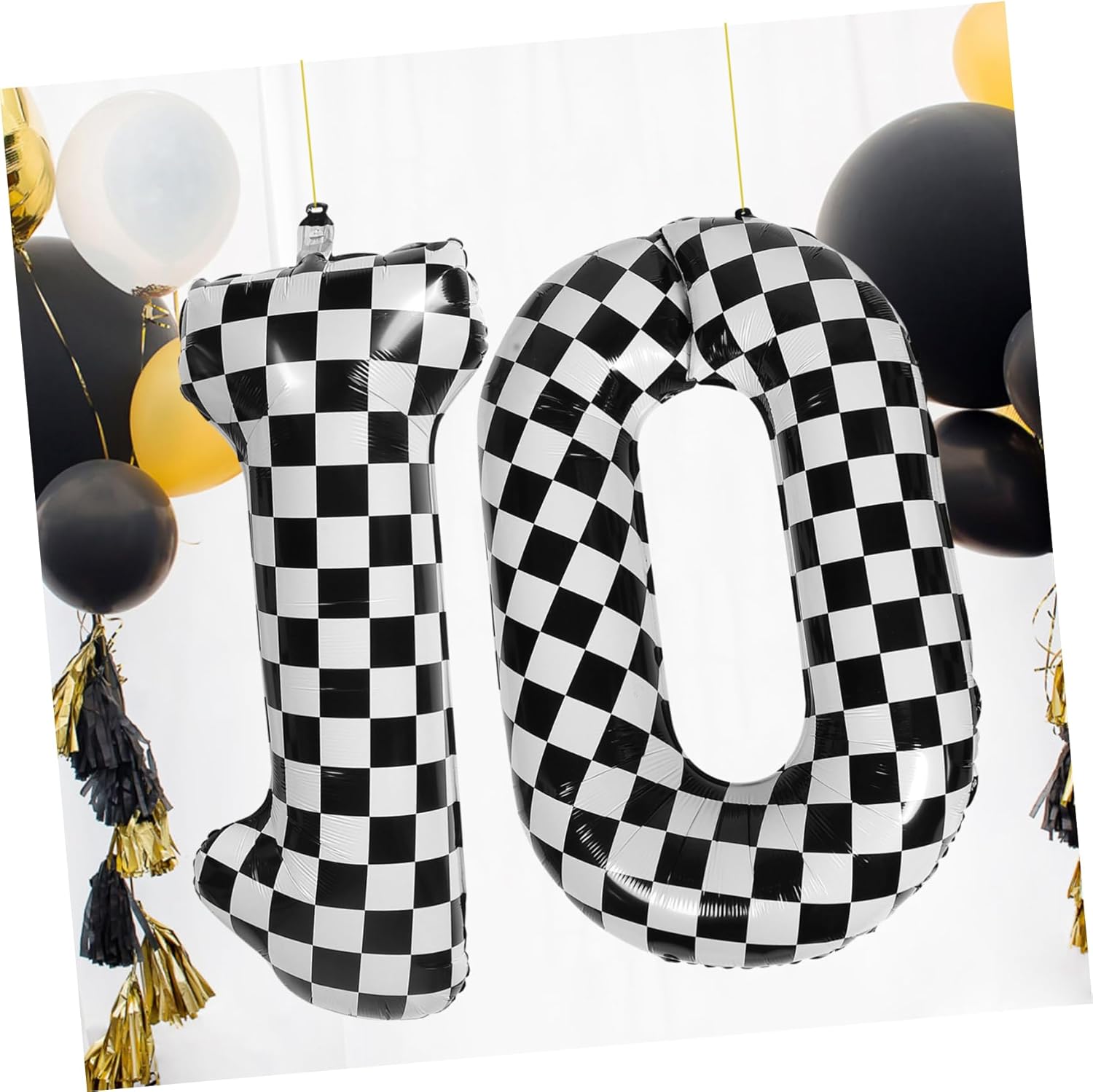 Design accattivante: il motivo a scacchi dei palloncini numero 10 attira l'attenzione e aggiunge un tocco moderno alla decorazione della tua festa, all'arredamento con numeri, ai palloncini con numeri per la festa A tema per ragazzi: con un tema sportivo e di corse, questi palloncini sono belli per una festa di compleanno per ragazzi, aggiungendo entusiasmo alla celebrazione, palloncini a , palloncini a scacchiera Materiale affidabile: costruiti con un foglio di alluminio, questi palloncini sono affidabili, garantendo che rimangano gonfiati durante tutto l'evento, palloncini a forma di numero, palloncini con bandiera a scacchi Decorazione semplice: questi palloncini numerici possono essere facilmente attaccati a pareti, finestre o porte o riempiti con elio per un effetto fluttuante, palloncini per auto, forniture per compleanni Unico: il numero e il design a scacchi sono unici ed eleganti, rendendo questi palloncini una caratteristica distintiva di qualsiasi festa, palloncini da skateboard, forniture per feste di compleanno