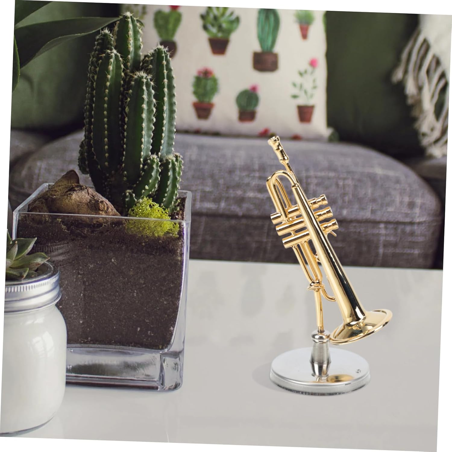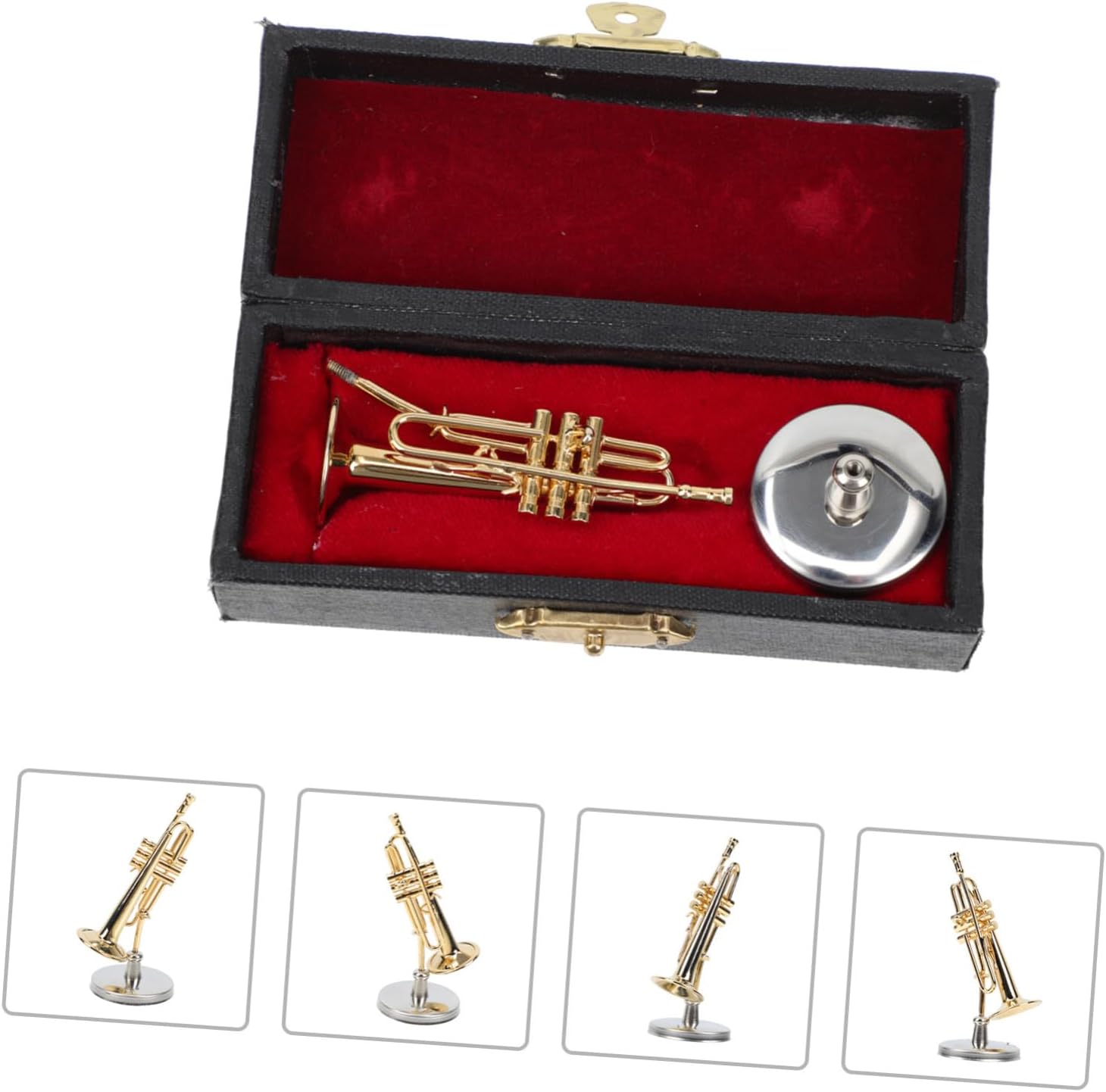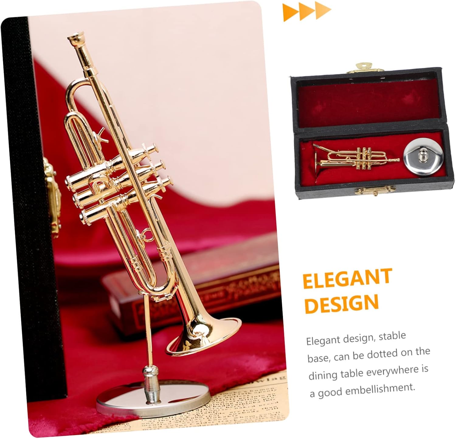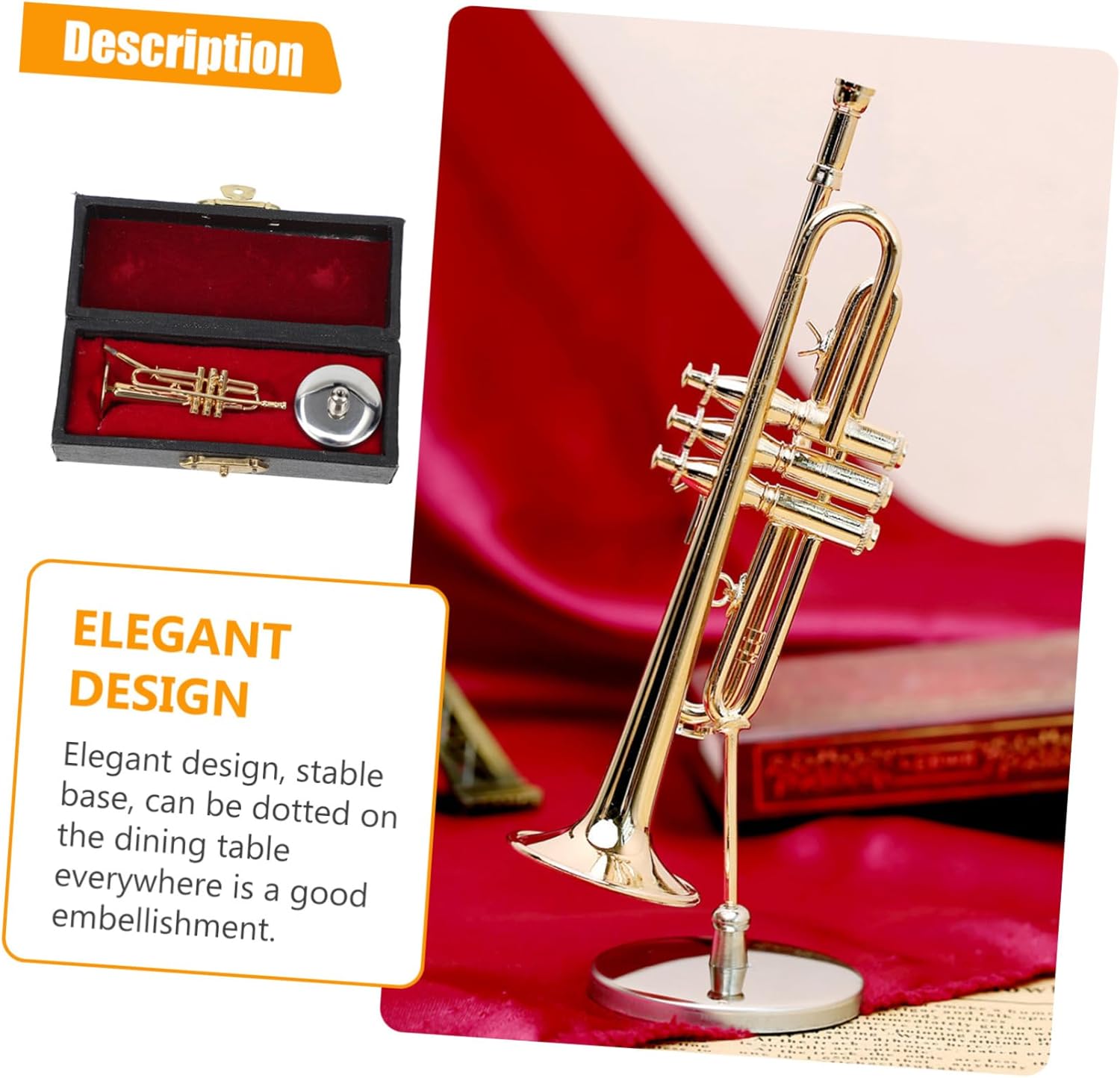 Modello di strumento a fiato con supporto: i giocattoli simulati di strumenti musicali possono concentrare l'attenzione dei bambini e coltivare l'interesse dei bambini per la musica. Strumenti a fiato decorativi: artigianato squisito, la superficie è accuratamente lucidata, sensazione di mano liscia, linee bellissime. Modello di tromba di simulazione: una riproduzione in miniatura molto raffinata della tromba, con stile realistico e pregevole fattura. Mini modello di strumento musicale: questa utile decorazione musicale può essere utilizzata come supporto per la fotografia decorativa in casa, ma stai attento. Tromba con supporto: la superficie è lucida e liscia, e strutturata. posizionato saldamente e ben visualizzato.