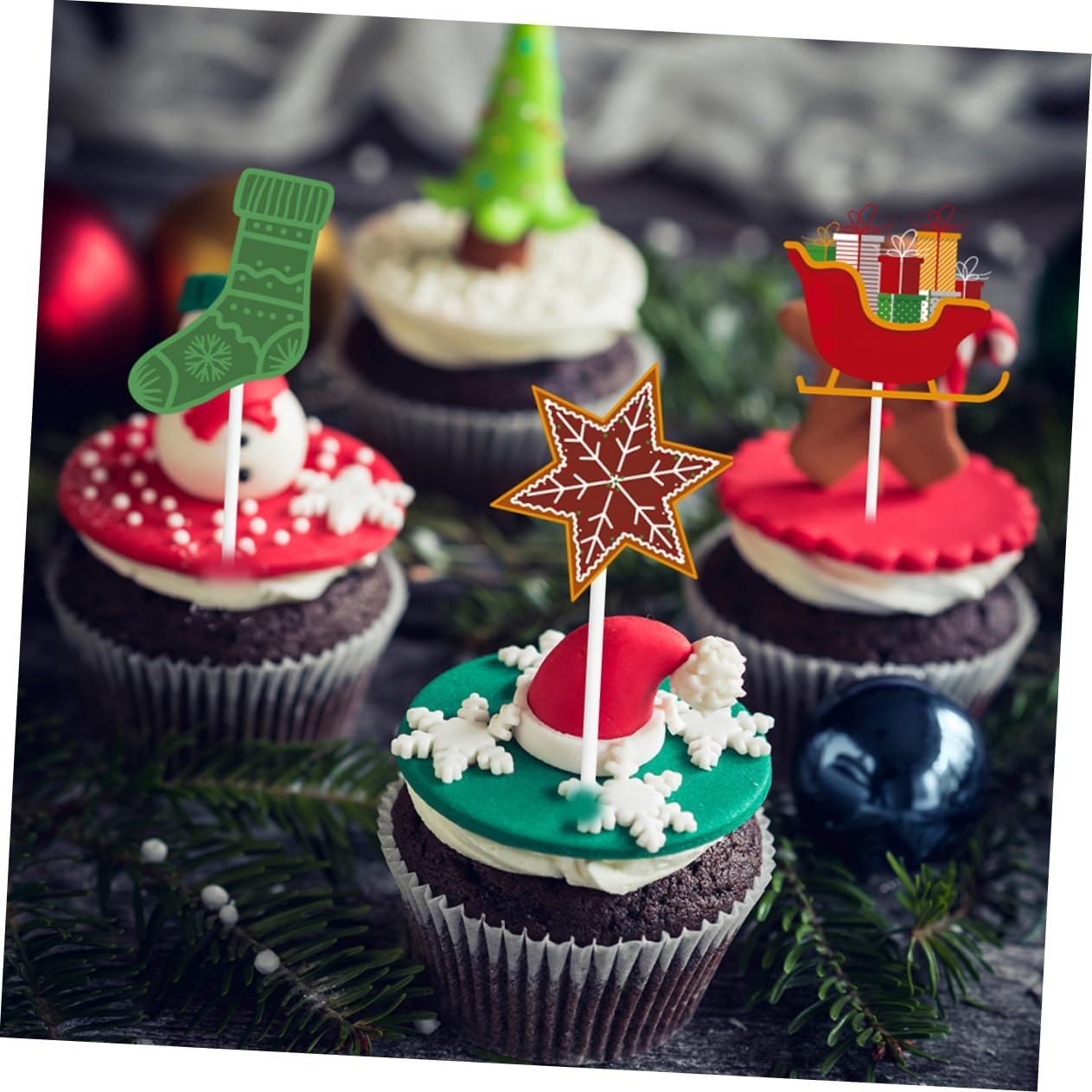 Decorazione per torte: questa decorazione per cupcake è molto adatta per feste compleanno, ti conquisterà con , decorazioni per decorazioni per torte Da usare: queste decorazioni per torte natalizie sono sicure per il con la tua torta e altri dessert, decorazioni per cupcake, decorazioni per dessert Bellissimo design: questo plettro per torta natalizia aggiungerà un tocco fascino torta, alle decorazioni per torte e alle decorazioni per torte delle feste Decorazione torte: dimensioni ridotte e compatte, leggero, puoi trasportarlo e usarlo ovunque vada, decorazioni per torte per feste Topper per cupcake: la migliore per decorare torte compleanno, adatti anche per feste a tema natalizio, shower o altri , stuzzicadenti per torte
