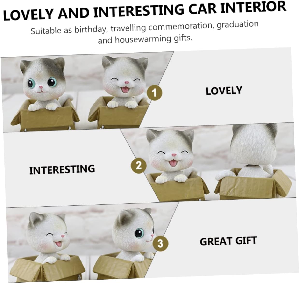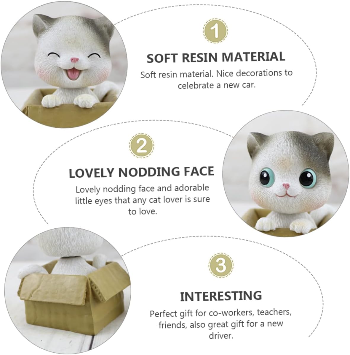 Decorazioni per auto bobblehead: la testa del gatto è collegata a molla, mentre l'auto trema, la testa del gatto muove, forniture per bambole giocose Decorazione per scuotere la testa: colleghi, insegnanti, amici, fantastico anche un autista, decorazione per gatti Gattino bobblehead: puoi avere un paio di oggetti con la amata con questi ornamenti in resina progettati per coppie, bambole dei cartoni animati Forniture decorative per auto: effetto realistico, il design adorabile e divertente è un per gli amanti dei gatti e un accessorio per la decorazione dell'auto Gatto con la testa che annuisce: facile da installare, da mettere in macchina, a casa o in ufficio, gattino bobblehead