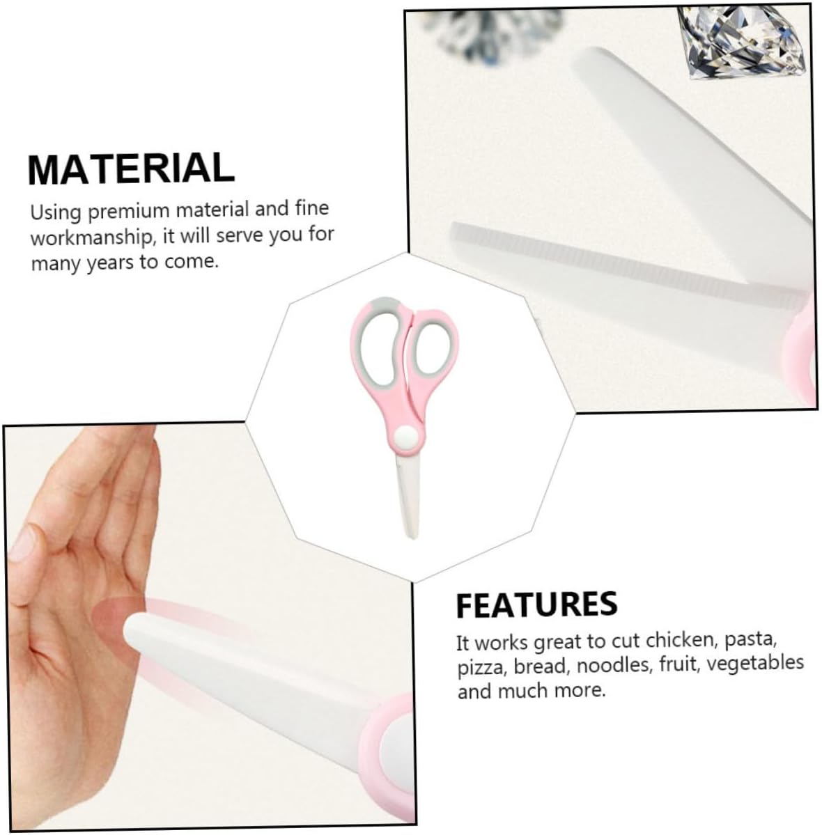 Forbici per alimenti per neonati: la struttura è densa per una buona pulizia, la può facilmente tagliare alimenti complementari, forbici per alimenti Cesoie da cucina portatili: con copertura protettiva staccabile, così puoi portarla fuori facilmente, prodotto per e bambino Forbici portatili per alimenti per bambini: con pregevole fattura, non facili da indossare, molto pratiche da usare, forbici per frutta per bambini Cesoia per gadget da cucina: leggera e compatta, facile da trasportare, forbice per alimenti per bambini Forbici per alimenti supplementari: anche se è semplice, è così pratica quando la usi, forbici per alimenti per bambini