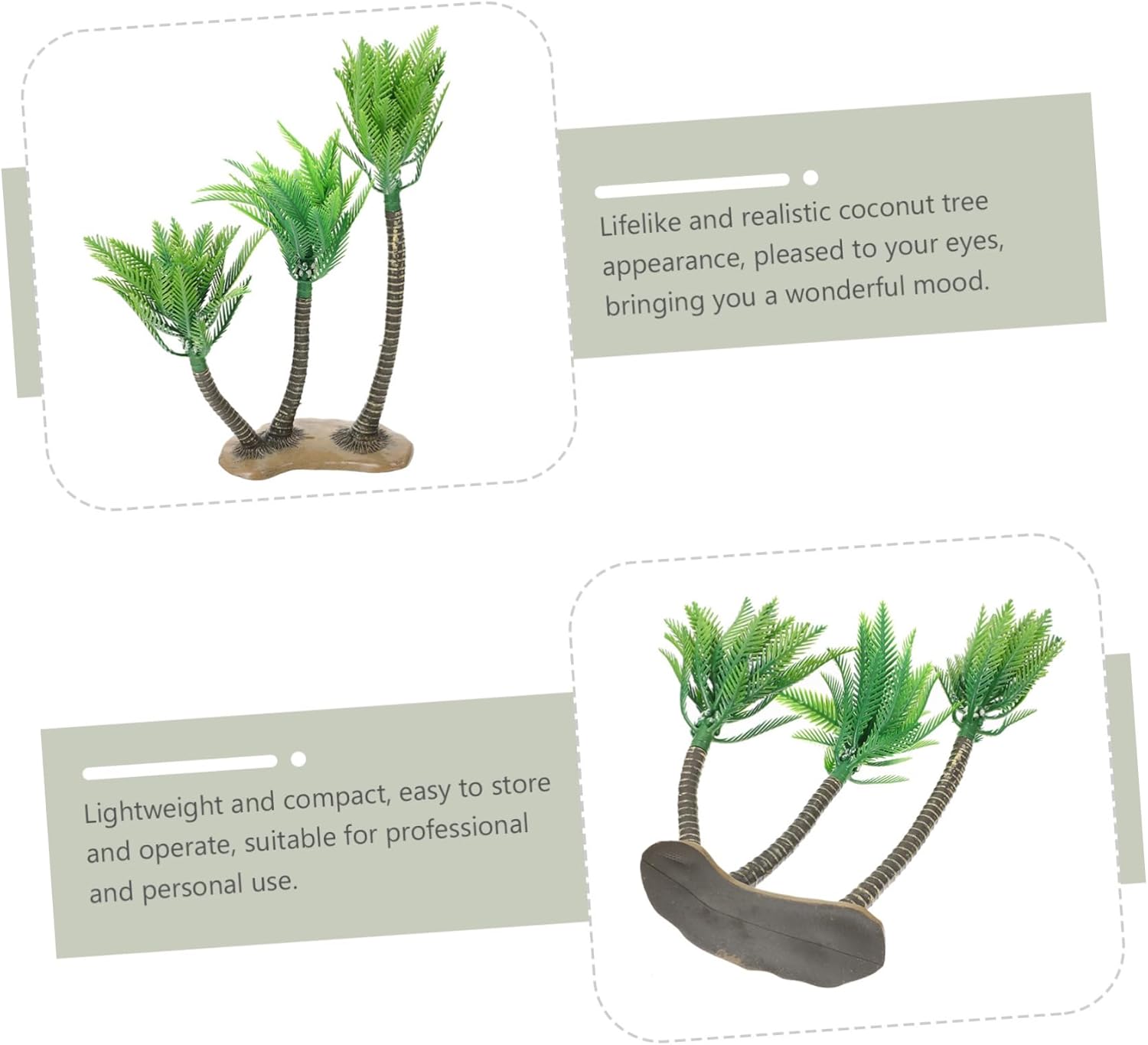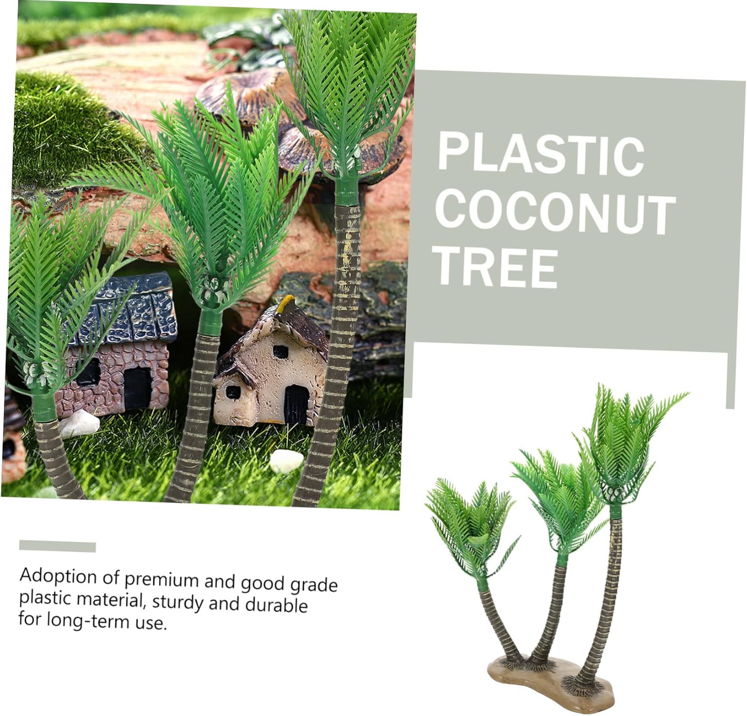 Simulazione dell'arredamento dell'albero di cocco: piccolo e squisito, facile da decorare, può aggiungere un'atmosfera al tuo spazio abitativo. Ornamento da tavolo: sebbene questi modelli non siano grandi, la lavorazione è molto squisita, riflettendo le squisite abilità degli artigiani. Modello di scenario ad albero: decorazioni perfette per tavoli di sabbia scenici, layout di micro paesaggi e modelli di spiagge marine. Ornamento in plastica: questo modello di albero di cocco è realizzato con eccellente fattura e ha un aspetto vivido e luminoso. Alberi modello per diorami: simpatici mini oggetti da giardinaggio, adatti per decorare il tuo piccolo giardino. perfetto per qualsiasi giardino in miniatura, mini casa e così via.