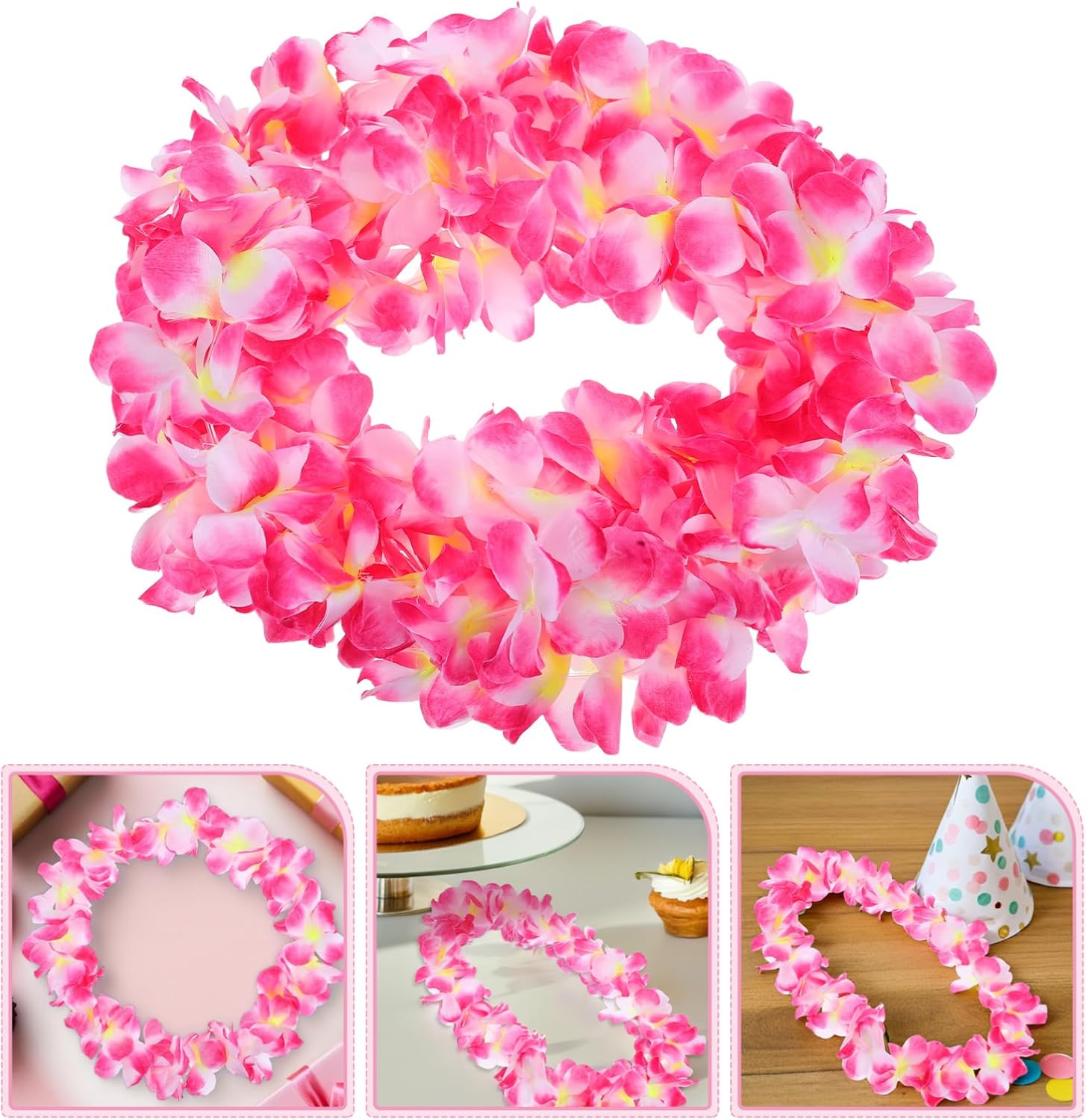 Stile hawaiano unico: migliora la tua atmosfera festiva con le nostre distintive decorazioni a tema hawaiano, per qualsiasi festa o celebrazione, esaltando istantaneamente l'arredamento Design ispessito: il design ispessito offre un aspetto realistico, con una tonalità rosa calda e romantica, offrendo piacere visivo evitando i fiori appassiti Leggero e portatile: facile da appendere e organizzare, sia all'interno che all'esterno, creando senza sforzo una bellissima scena festiva Materiale in tessuto di seta: realizzate in tessuto di seta, queste ghirlande non richiedono manutenzione e mantengono i loro colori vivaci anche dopo un uso prolungato, riducendo la necessità di frequenti sostituzioni Ampia applicazione: adatto a una varietà di occasioni, non solo feste, ma anche matrimoni, sfondi fotografici, decorazioni natalizie e altro ancora, migliorando l'attrattiva estetica di qualsiasi spazio