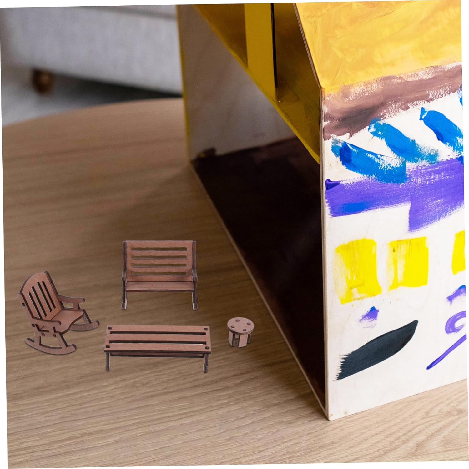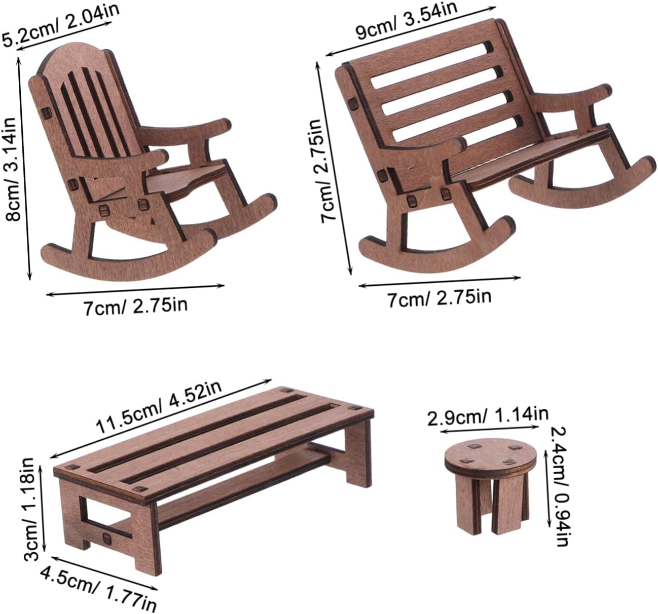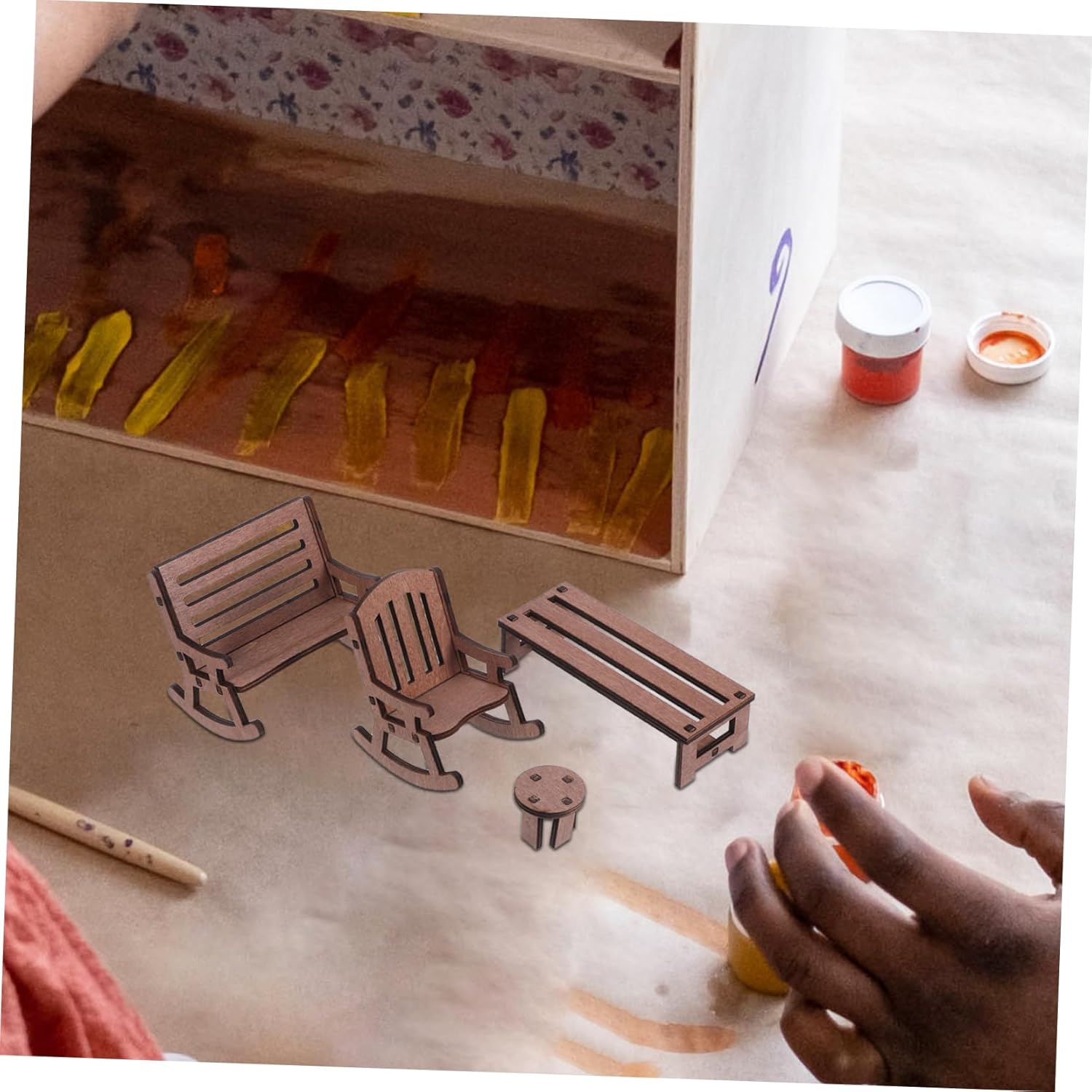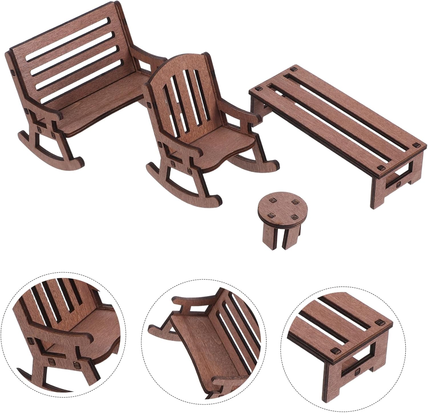 Design compatto: il set di mobili in miniatura è dimensionato per adattarsi a varie scene di case delle bambole, aggiungendo fascino e carattere al tuo mondo in miniatura, panca a dondolo per case delle bambole, tavolo rustico in miniatura Compatto e affascinante: il set di mobili in miniatura è dimensionato per completare varie scene di case delle bambole, aggiungendo fascino e carattere, decorazione del paesaggio in miniatura, decorazione del giardino in miniatura Artigianato dettagliato: ogni pezzo è finemente realizzato e dipinto a mano, garantendo dettagli e una finitura liscia, decorazione di mobili in miniatura per case delle bambole, piccoli mobili da giardino Dimensioni ideali: il set di mobili in miniatura è progettato per adattarsi a varie scene di case delle bambole, migliorando l'estetica generale, piccola panca a dondolo, piccola sedia da giardino delle fate Legno naturale: realizzato in legno, questo set è sicuro e pratico, donando un aspetto naturale alla tua casa delle bambole, al piccolo tavolo delle fate, alla sedia del tavolo della casa delle bambole