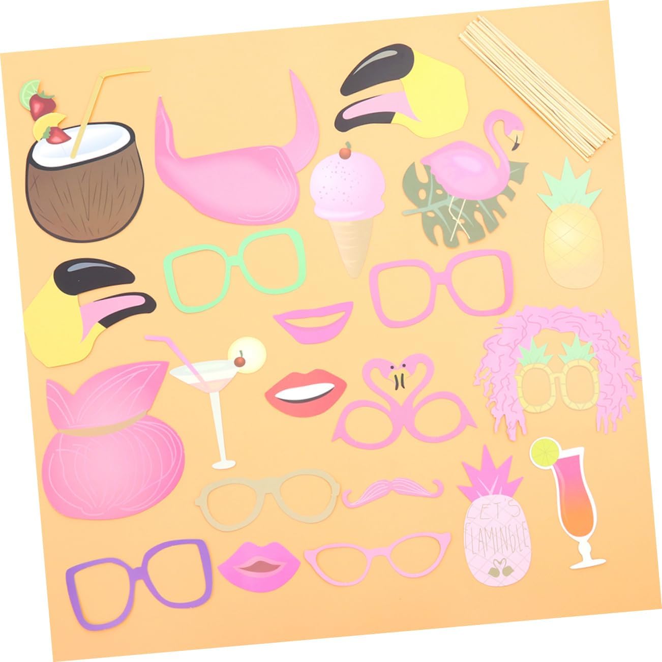 Accessori per cabine fotografiche a forma di fenicottero: con punti adesivi e bastoncini di legno, semplicemente fai da te, accessori per cabine fotografiche da spiaggia Accessori per cabine fotografiche hawaiane: questo kit di accessori per cabine fotografiche a tema hawaiano è perfetto per decorazioni per feste hawaiane e per cabine fotografiche da spiaggia Accessori per foto di feste alle hawaii: sfondi fotografici eccellenti o accessori per servizi fotografici con la famiglia e gli amici, accessori per cabine fotografiche sulla spiaggia Forniture per feste estive: colori vivaci, ideali per creare un'atmosfera , rendono ogni luogo bello e unico, accessori per cabine fotografiche sulla spiaggia Accessori per foto in spiaggia: il set include diversi stili creativi di accessori per foto a tema, in modo da poter scegliere quello che preferisci in base alle tue esigenze, accessori per foto per feste alle hawaii