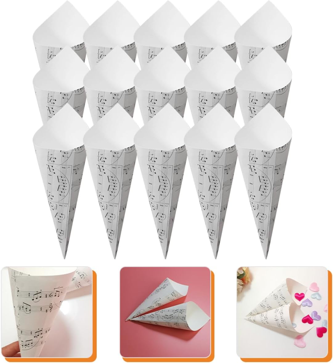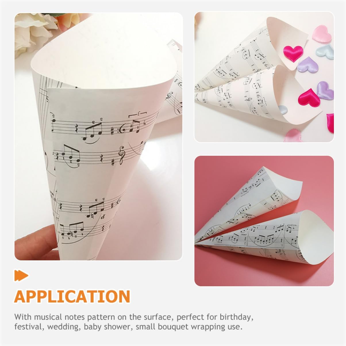 Cono per bouquet: può essere utilizzato per riempire , lavanda, , bouquet e ancora, da inviare ai tuoi o amici per sorprenderli, decorazioni per matrimoni Da fiorista per bouquet: è anche per riempire una cerimonia nuziale con o , molto squisita, coni da matrimonio Esposizione : facile da usare, e puoi usare una lino, un per decorarlo, rendendolo distintivo e , portafiori Coni per matrimonio: puoi decorarli con un o una lino per legarli e un effetto decorativo migliore, coni per fiori Coni artigianali: presentano un a note musicali, molto decorativi e speciali, possono offrirti un migliore godimento visivo, coni nuziali