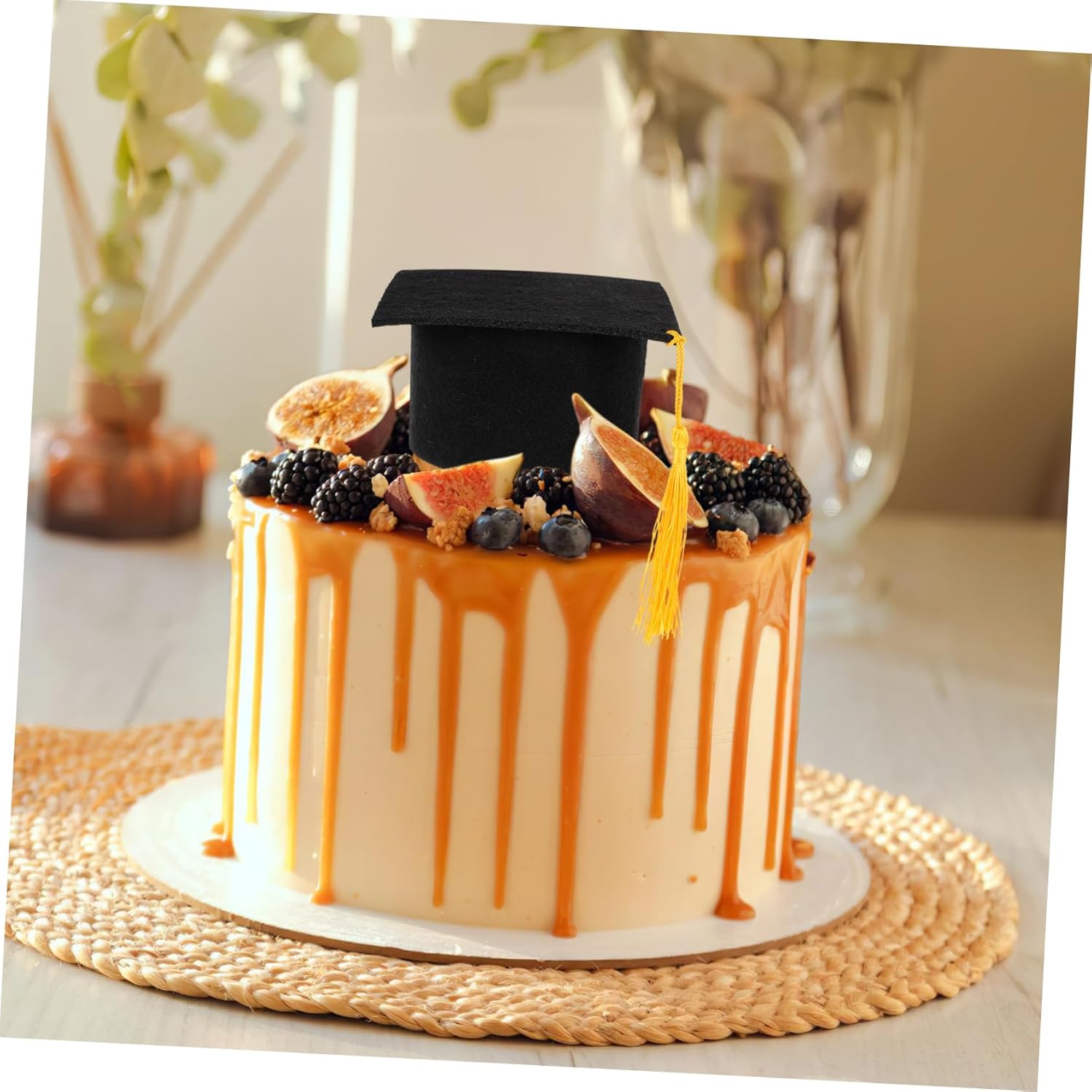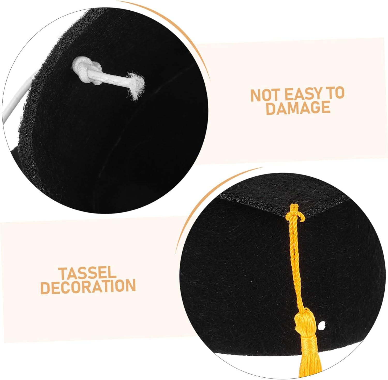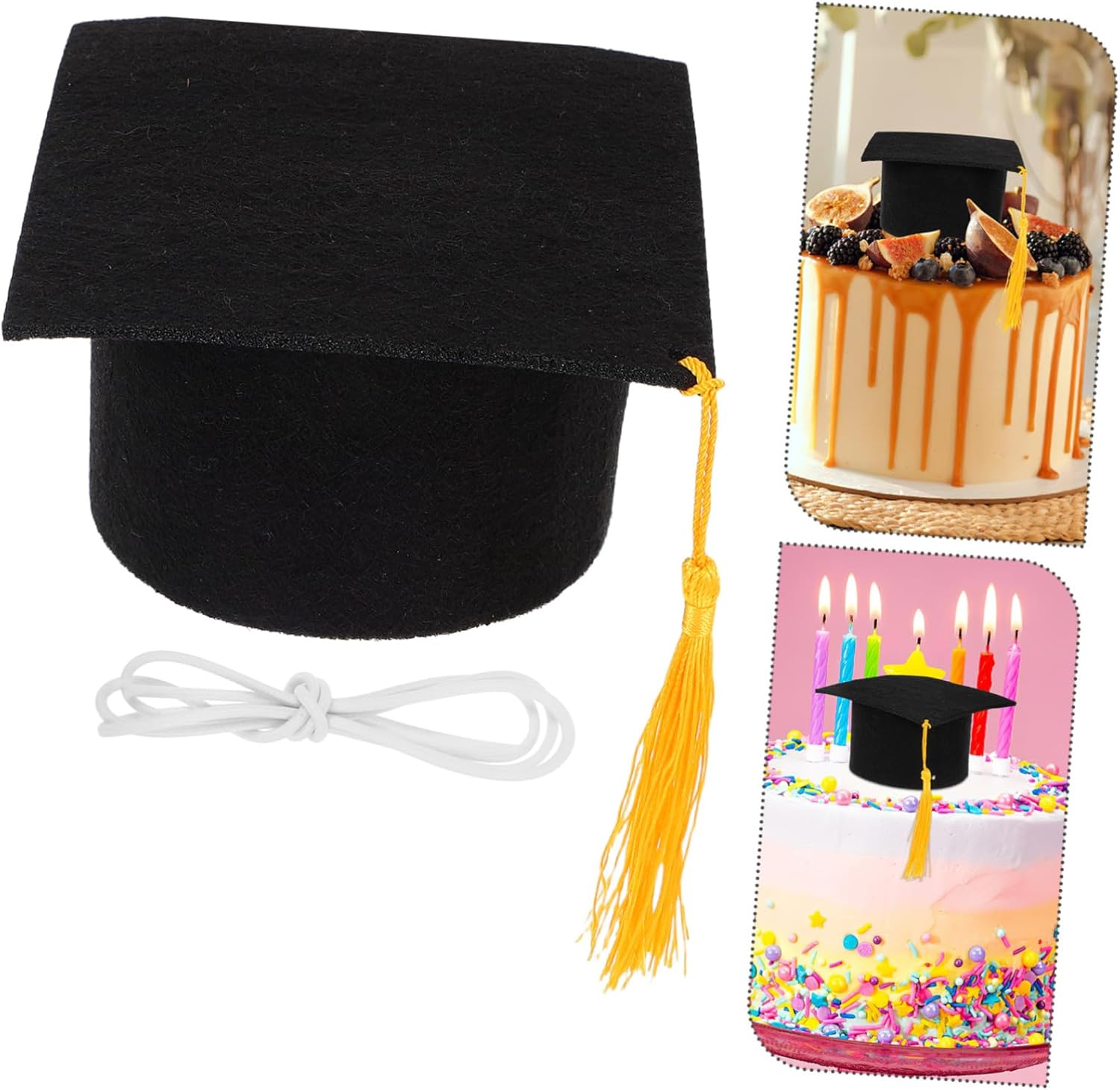 dei pacchetti 5 mini cappelli da laurea con cinturini Caratteristiche -Decorazioni speciali per torte: aggiungi un tocco unico alla torta della tua festa di laurea con queste mini decorazioni per torte a forma di cappello di laurea, rendendola ancora più speciale. - e leggero: questi mini cappellini sono comodi, robusti, leggeri e resistenti allo sbiadimento, garantendo l'uso di ornamenti per cappellini di laurea -Festa di laurea: il design dei cappelli da laurea esalta il tema della laurea della tua festa, creando un'atmosfera festosa e celebrativa per i prodotti della stagione della laurea -ideale per piccoli animali: le dimensioni ridotte di questi cappelli li rendono inadatti a bambini o adulti ma ideali per piccoli animali o giocattoli di peluche come accessori per la laurea -Dimensioni: 11,00X11,00X6,50 cm/4,32X4,32X2,55 pollici cappello di laurea fai da te -Colore: Cappello nero per la stagione della laurea - Morbidi e confortevoli: realizzati in tessuto di feltro, questi mini cappelli da laurea sono morbidi e confortevoli, offrendo un tocco piacevole di cappello da laureato. -Materiale: cappellini da laurea in feltro Informazioni sulle merci Cappello di laurea in feltro Crea un'atmosfera festosa e memorabile con questi accessori affascinanti, celebrando i tuoi risultati accademici con stile. Accessori per cappelli di laurea Questi mini cappelli di laurea in feltro sono un must per qualsiasi festa di laurea. Cappello di laurea Il loro design realistico e il robusto materiale in feltro li rendono ideali per decorare torte, tavoli o come oggetti di scena per foto