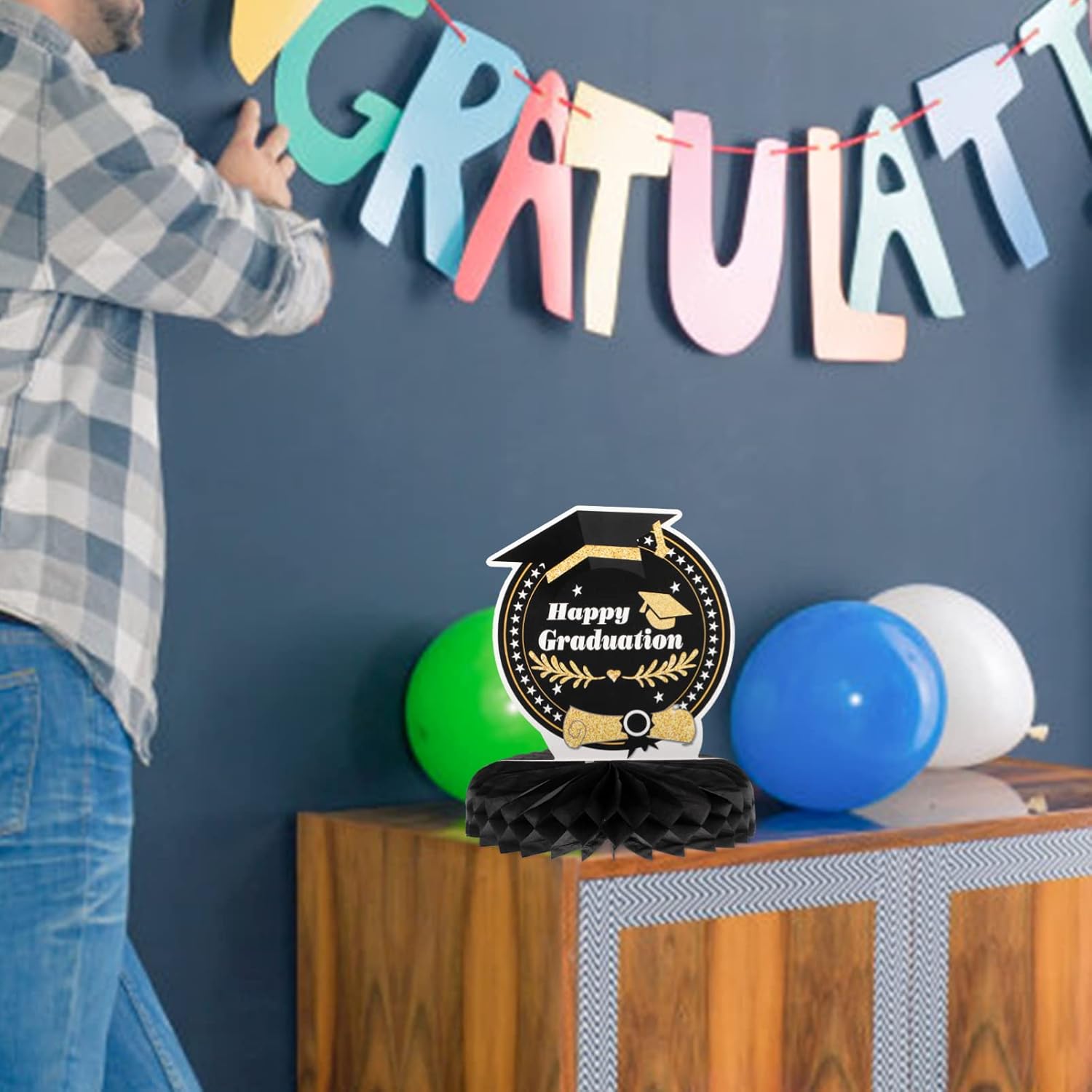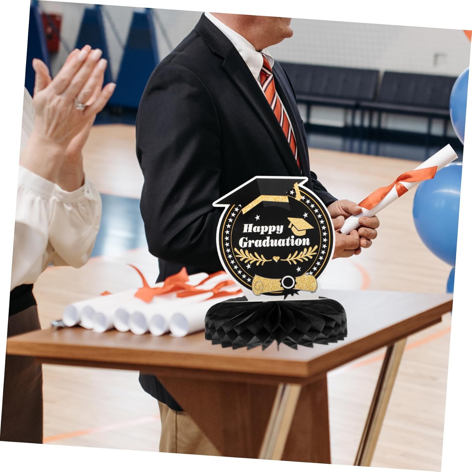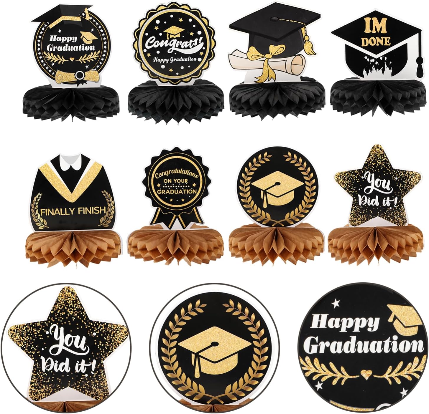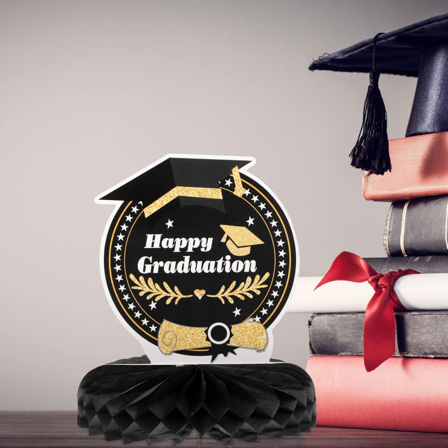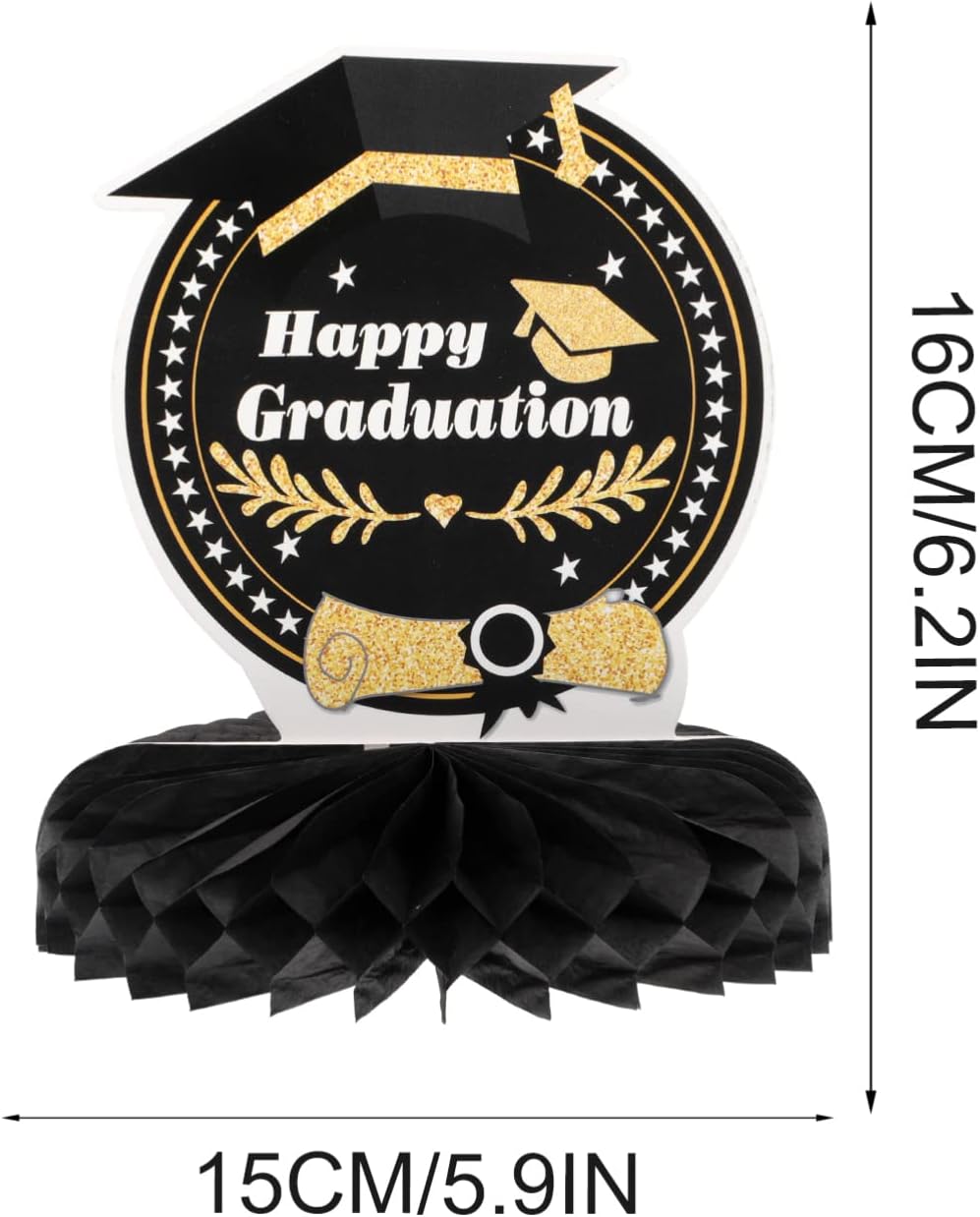 Centrotavola a nido d'ape fai da te: motivo a tema laurea e aspetto a nido d'ape, dimensioni ridotte e peso leggero, facile da trasportare e riporre, non occupa spazio. Laurea: questo ornamento è pieno di atmosfera , facile da usare, adatto per uso o esterno. Centrotavola di carta con ananas: l'ornamento è realizzato in materiale eccellente, sicuro, durevole e di buona consistenza. Decorazioni per la tavola: puoi anche allestirle come sfondo fotografico fantastico per una festa, che sarà decorativo. Nido d'ape di carta graduata: l'aspetto dell'arredamento sembra molto bello e interessante, il che può promuovere ulteriormente l'atmosfera della festa.