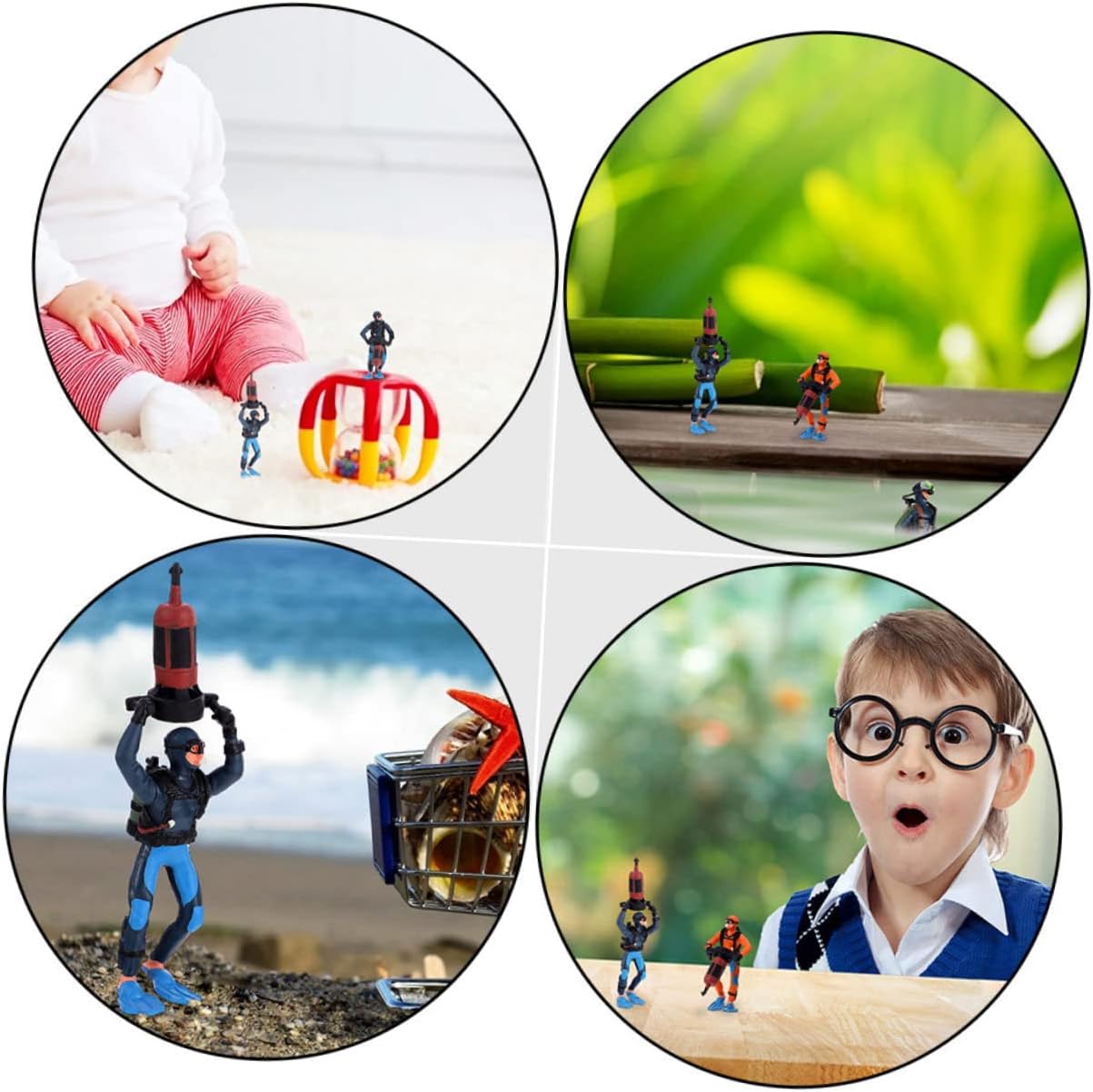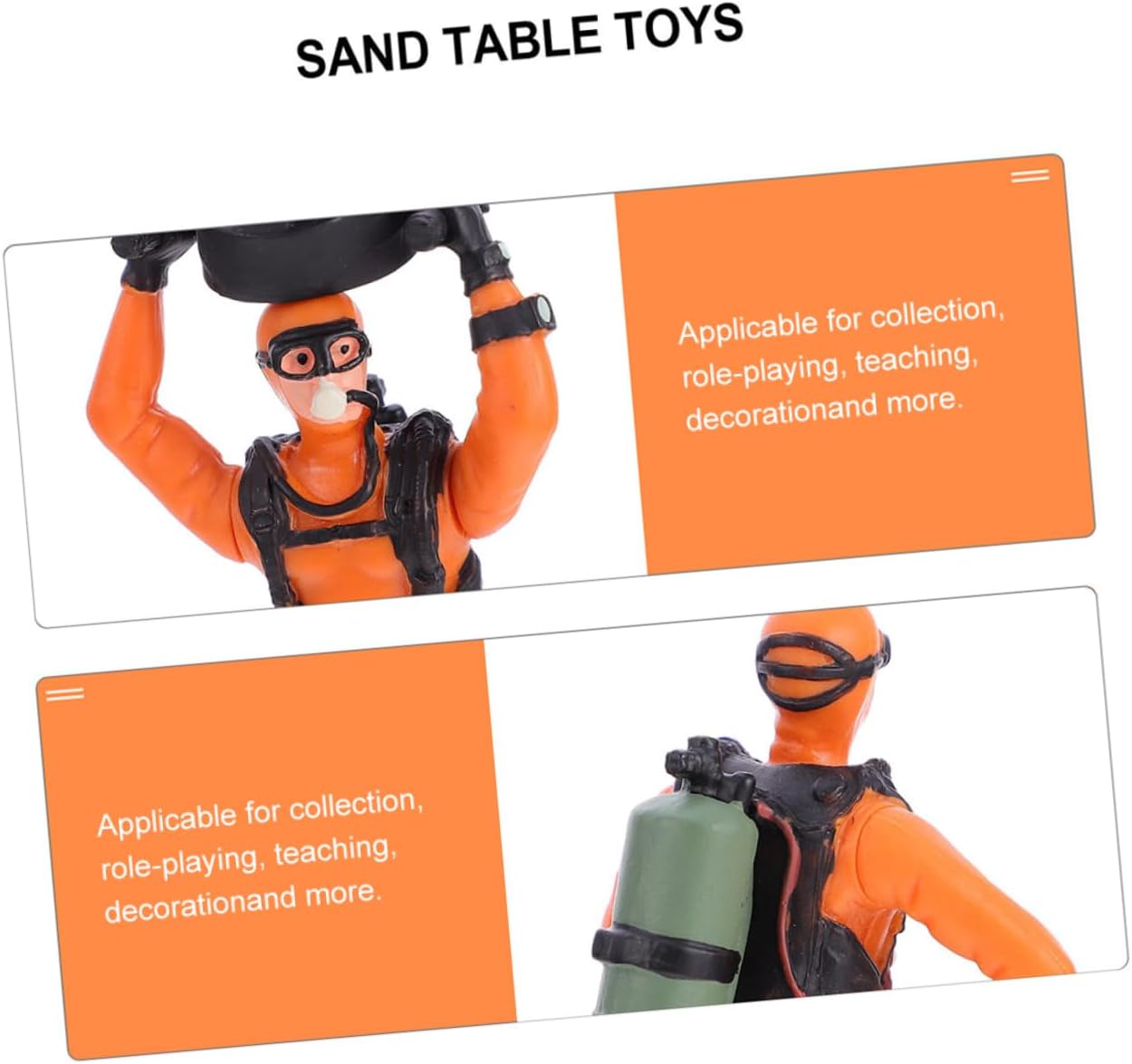 Ornamento per subacqueo: lo scopo principale è insegnare ai bambini le varie scene di immersione, ornamento paesaggistico in miniatura Decorazioni per la casa: possono anche essere usati come strumenti didattici nelle lezioni per imparare a immergersi, mini ornamento Decorazione del desktop: questi modelli possono essere utilizzati per aumentare la cognizione e la conoscenza dei bambini, l'arredamento del tavolo con la sabbia Accessori per tavoli da sabbia: lascia che i bambini sappiano di più sulle immersioni professionali attraverso questi modelli e ornamenti in pvc Decorazioni subacquee: realizzate con materiali impermeabili e in pvc