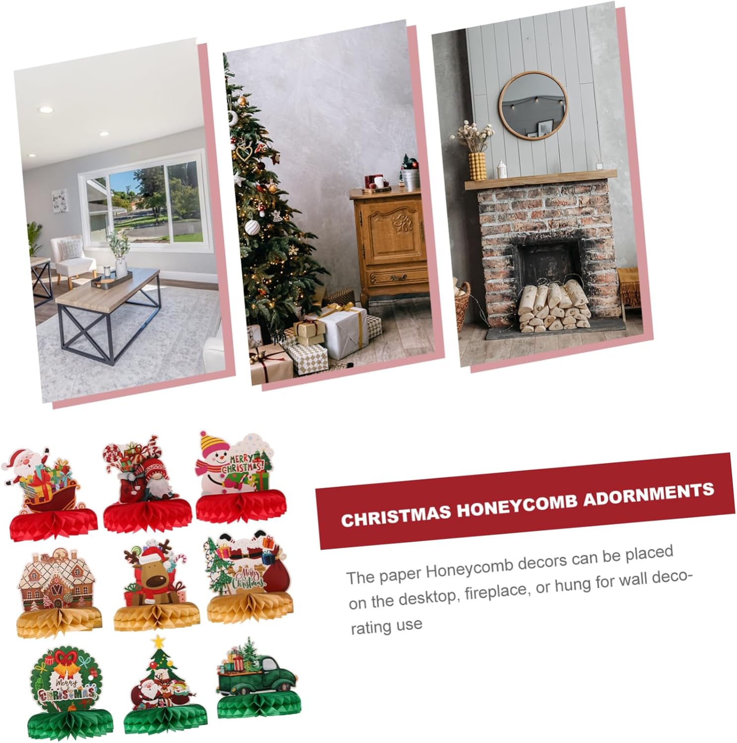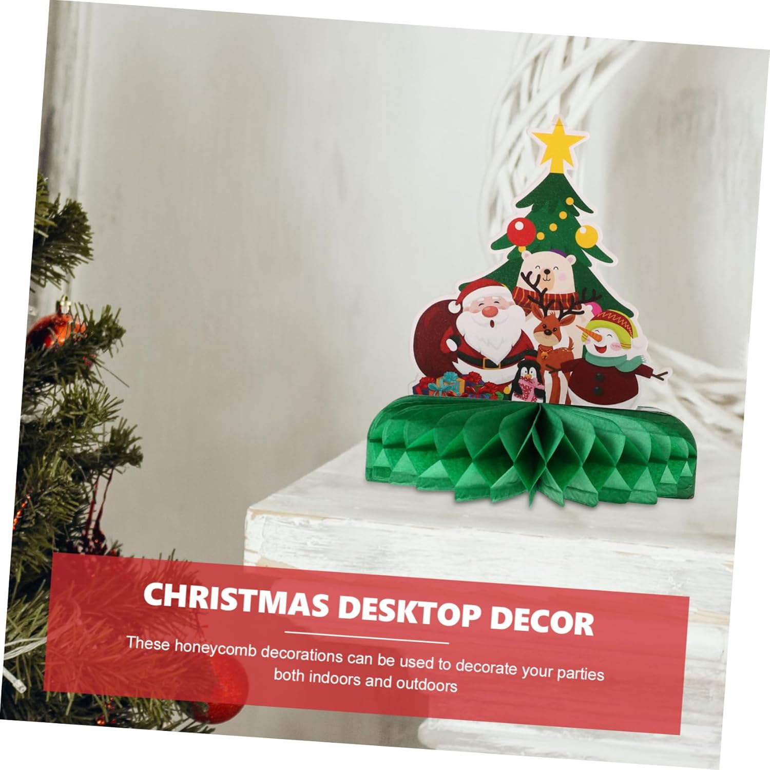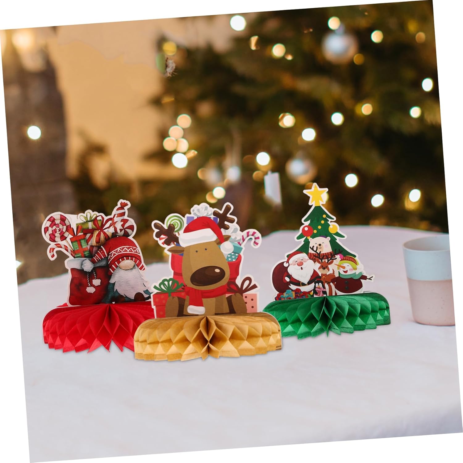 Albero di natale di carta: realizzati in materiale cartaceo per un lungo periodo e per un uso prolungato, questi centrotavola a nido d'ape sono decorazioni riutilizzabili con palline a nido d'ape. Centrotavola a nido d'ape per le vacanze: le decorazioni a nido d'ape progettate a tema natalizio sono molto creative, adatte per il layout della scena della festa, topper a nido d'ape 3d. Decorazioni per feste di natale: fornito con un aspetto a nido d'ape e leggero, facile da posizionare sulla scrivania, sul pavimento e così via, centrotavola per albero di natale. Decorazioni per feste di natale: il set di decorazioni a nido d'ape è una buona opzione di decorazione natalizia per bar, centri commerciali e decorazioni di aziende, centrotavola a nido d'ape di babbo natale. Decorazioni per la tavola delle feste: questo creativo centrotavola a nido d'ape è per decorare l'intera casa, facile da creare un'allegra atmosfera di festa, a nido d'ape con fiocchi di neve.