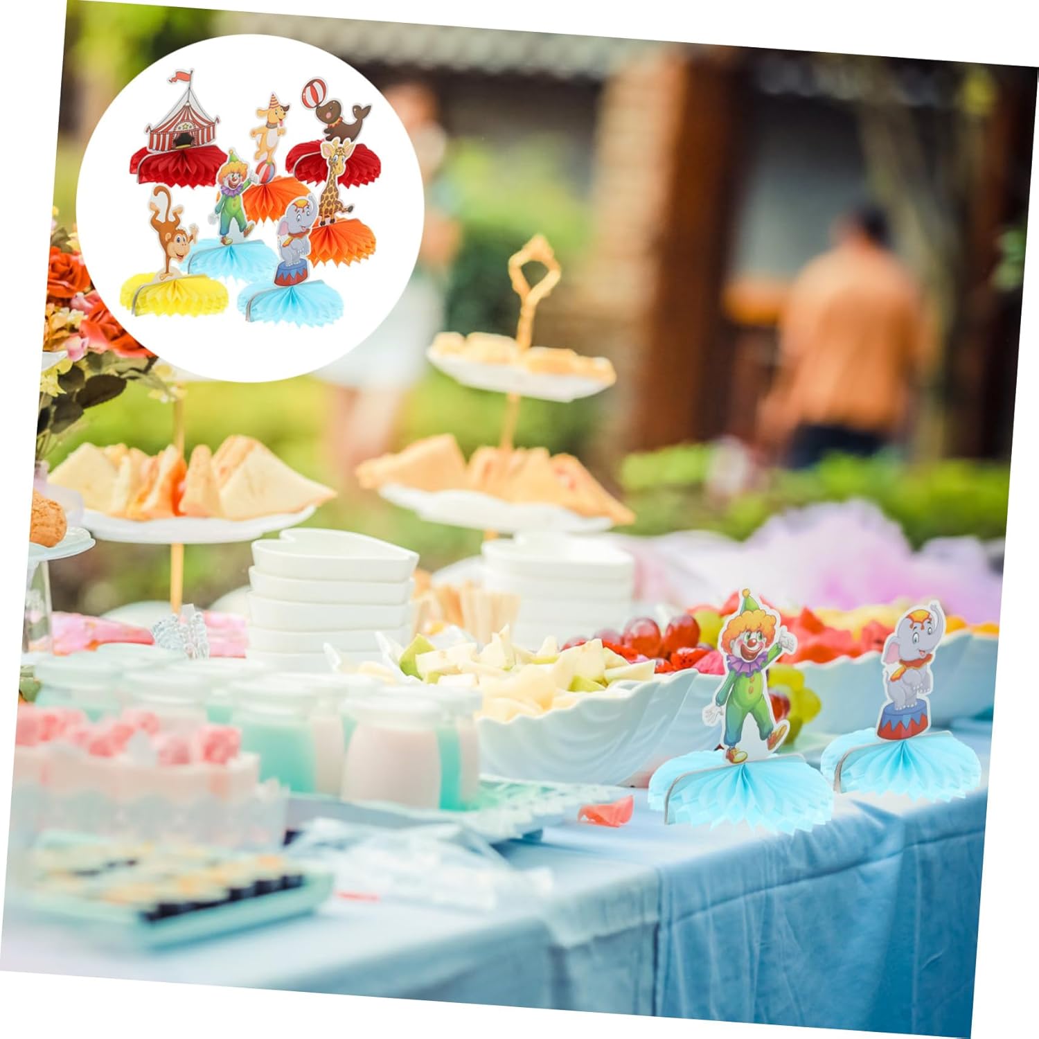 Accessorio per la disposizione della festa di carnevale: il set centrotavola a nido d'ape è realizzato in materiale cartaceo, che lo rende portatile e facile da montare, consentendo un comodo utilizzo in varie impostazioni, decorazioni per la tavola della festa di compleanno Decorazioni di carnevale: questi centrotavola a nido d'ape da circo possono anche essere usati come oggetti fotografici da utilizzare per scattare foto, decorazioni a tema circense molto pratiche Decorazioni per la tavola di carnevale: le decorazioni in carta a nido d'ape possono essere posizionate sulla scrivania, sul caminetto o appese per decorare la parete, decorazioni per la casa di compleanno Decorazioni per la tavola di carnevale: il design a tema circense di questo set di decorazioni a nido d'ape aggiunge un'atmosfera divertente e vivace a qualsiasi festa o evento, decorazioni con palline a nido d'ape Decorazioni a tema circense: l'arredamento a nido d'ape può essere ampiamente applicato per decorare la scrivania, il o appeso soffitto, ecc., ornamenti a nido d'ape a tema circense