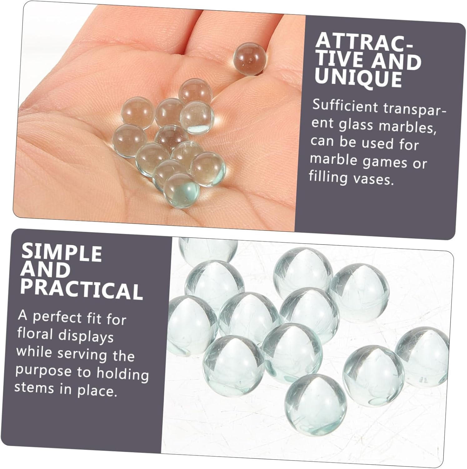 Perle di vetro sfuse: realizzate con materiali di vetro, resistenti e non facili da danneggiare, conservazione del valore a lungo termine. Perline di vetro decorative: ottimo regalo fai-da-te per i tuoi amici, la persona amata o per te stesso per creare perle fai-da-te uniche e accattivanti. Perline riempitive per vasi in vetro trasparente: ideali per addio al nubilato, addio al nubilato, matrimoni, casa, lauree, anniversari e riunioni di lavoro. Pietre preziose in vetro trasparente - Realizzate in materiale di vetro resistente e sicuro per un uso prolungato e duraturo, regalandoti divertimento a lungo. Marmi grandi: una quantità sufficiente può soddisfare le tue esigenze di decorazione, abbastanza da condividere con i tuoi amici.