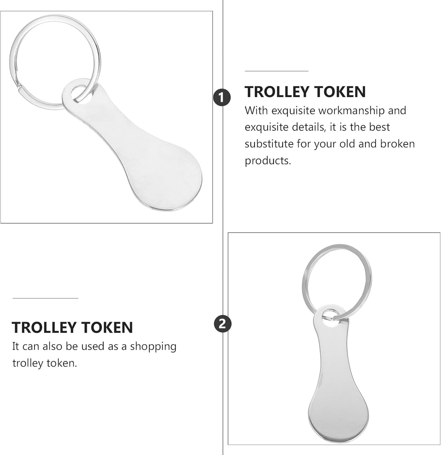 Portachiavi con chip del carrello: dopo aver sbloccato il carrello, può essere smontato immediatamente. Portachiavi in metallo per sviluppo sostenibile e sblocco del carrello della spesa: il dispositivo di sblocco del carrello della spesa è molto pratico nella vita di tutti i giorni ed è ideale anche come piccolo regalo per la famiglia o gli amici, gettoni del carrello della spesa Chip del carrello della spesa: è realizzato in acciaio inossidabile di alta qualità e può essere utilizzato a lungo. Chiave per sbloccare il carrello, portachiavi in metallo: il compagno perfetto per la vita di tutti i giorni e adatta anche come piccolo regalo per la famiglia o gli amici, chiave per carrello della spesa Chiave per l'apertura del carrello: grazie alla produzione a forma di chiave, l'apricarrello si inserisce perfettamente nel portachiavi, portachiavi per carrello della spesa.