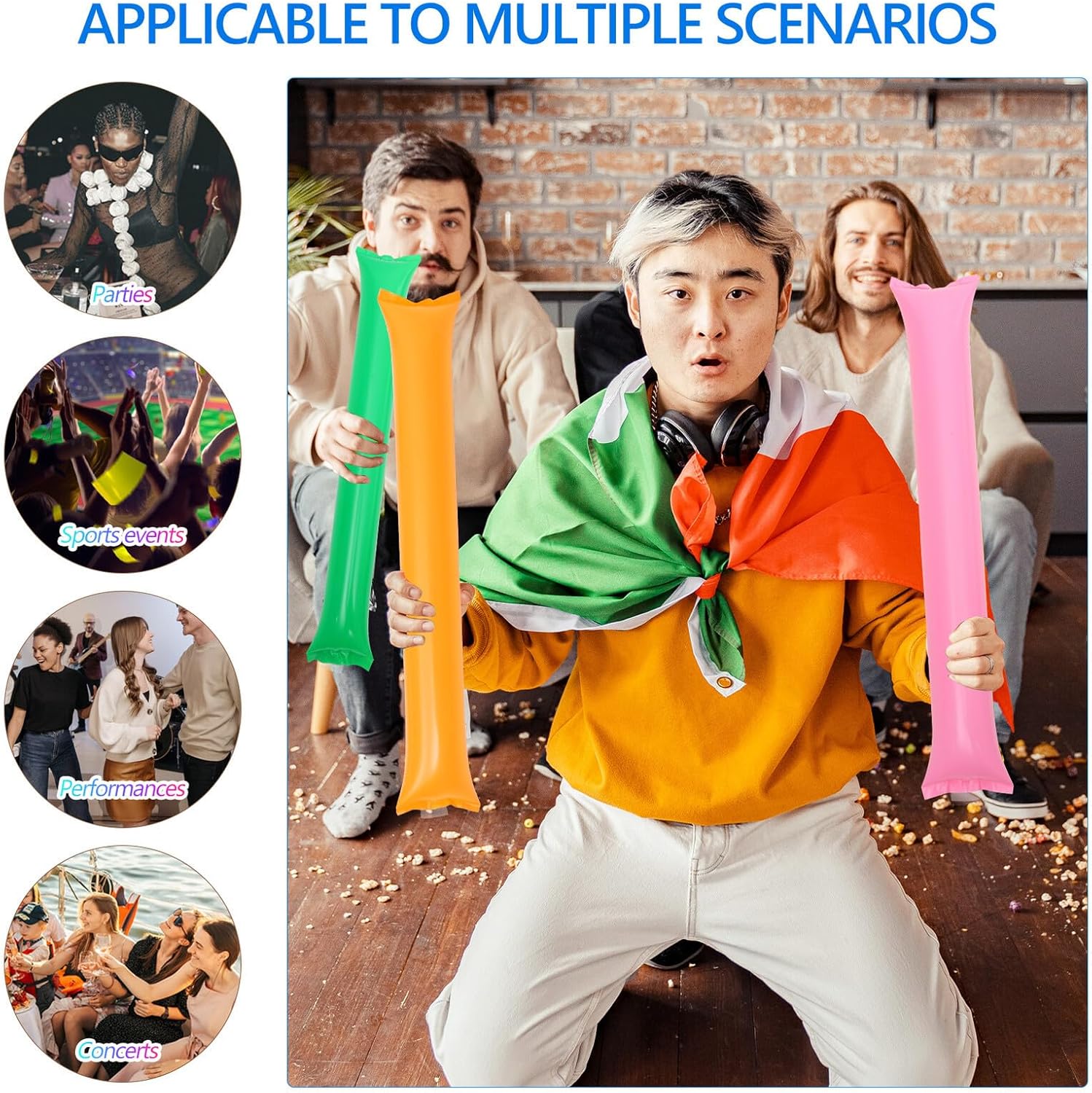 Tamburi per feste: adatti per molte attività all'aperto o eventi sportivi, come calcio, basket e altri giochi, bastoncini gonfiabili per fare rumore Bastoncini per tifo per concerti: adatti per festival sportivi, concerti, spettacoli, eventi serali e altre celebrazioni, bastoncini per produrre rumore Bastone gonfiabile: realizzato in materiale PE sicuro. I bastoncini gonfiabili sono facili da trasportare e creano un'atmosfera piacevole Festa con creatore di rumore: design bello e semplice, generatore di rumore divertente e pratico, con ottima fattura, bastoncini da tifo gonfiabili Produttori di rumore da stadio gonfiabili: adatti per tifare per la squadra e il giocatore che ti piace mentre guardi la partita sportiva, bastoncini da tifo gonfiabili