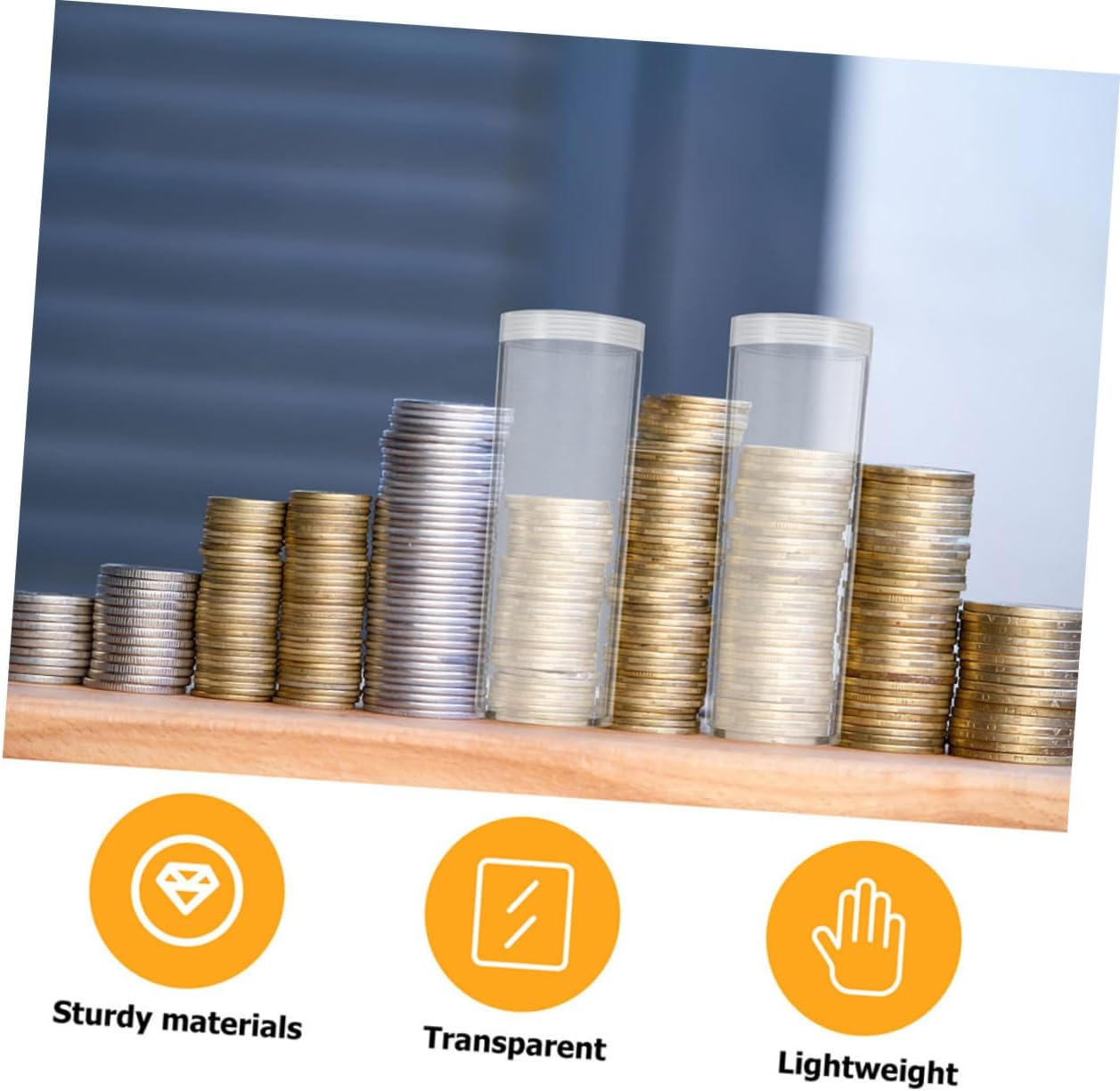 Funzionalità versatile: ideale per collezioni personali, vetrine e bomboniere, serve molteplici scopi, portamonete in plastica, contenitore per monete Chiara visibilità: il materiale plastico trasparente offre una visione chiara delle tue monete in modo da poterle identificare e ammirare facilmente. contenitore per monete in plastica, contenitore per tubi per monete Protezione del coperchio sigillato: i coperchi sigillati proteggono efficacemente le tue monete e ne mantengono la qualità, portamonete, capsule per monete ermetiche Protezione del coperchio sigillato: i coperchi sigillati proteggono efficacemente le tue monete e ne mantengono la qualità Materiale trasparente: la struttura in plastica trasparente fornisce una visione chiara delle tue monete in modo da poterle identificare e ammirare facilmente. tubo trasparente di protezione delle monete, raccolta monete