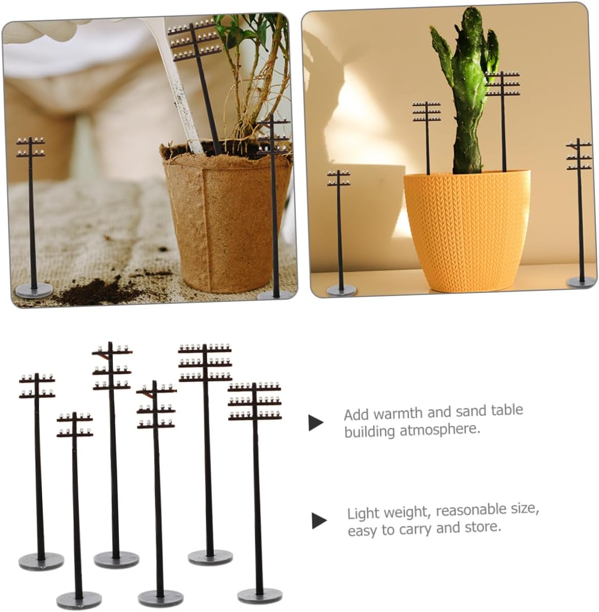 Mini palo del telegrafo: una scelta per i tuoi amici che amano le mini case, modelli di scene di tracciati ferroviari, pali stradali decorativi e pratici Modelli di pali del telegrafo di scenari: superficie liscia, aspetto semplice e vivido, decorativo, un delicato ornamento di scena del tavolo di sabbia, palo del telefono in miniatura Pali del telegrafo in plastica: imposta il tuo tavolo di sabbia secondo le tue idee e progetta il tuo cortile o il tuo micro decorazione del paesaggio Pali del telegrafo in miniatura: sicuri e comodi da usare, non facili da rompere o deformare, riutilizzabili e possono essere usati come modello di decorazione per una lunga durata Palo del telegrafo modelli: realizzati in ABS, caratterizzato da stabilità e durata, molto duri e lisci per l'uso, pali del telegrafo paesaggistico