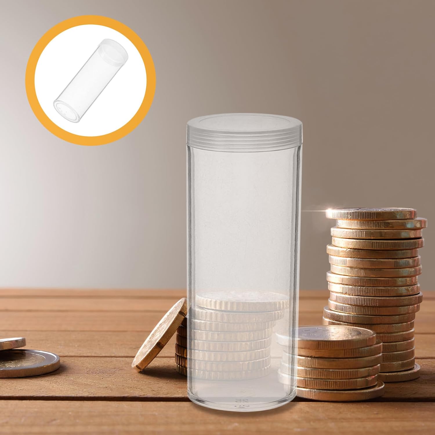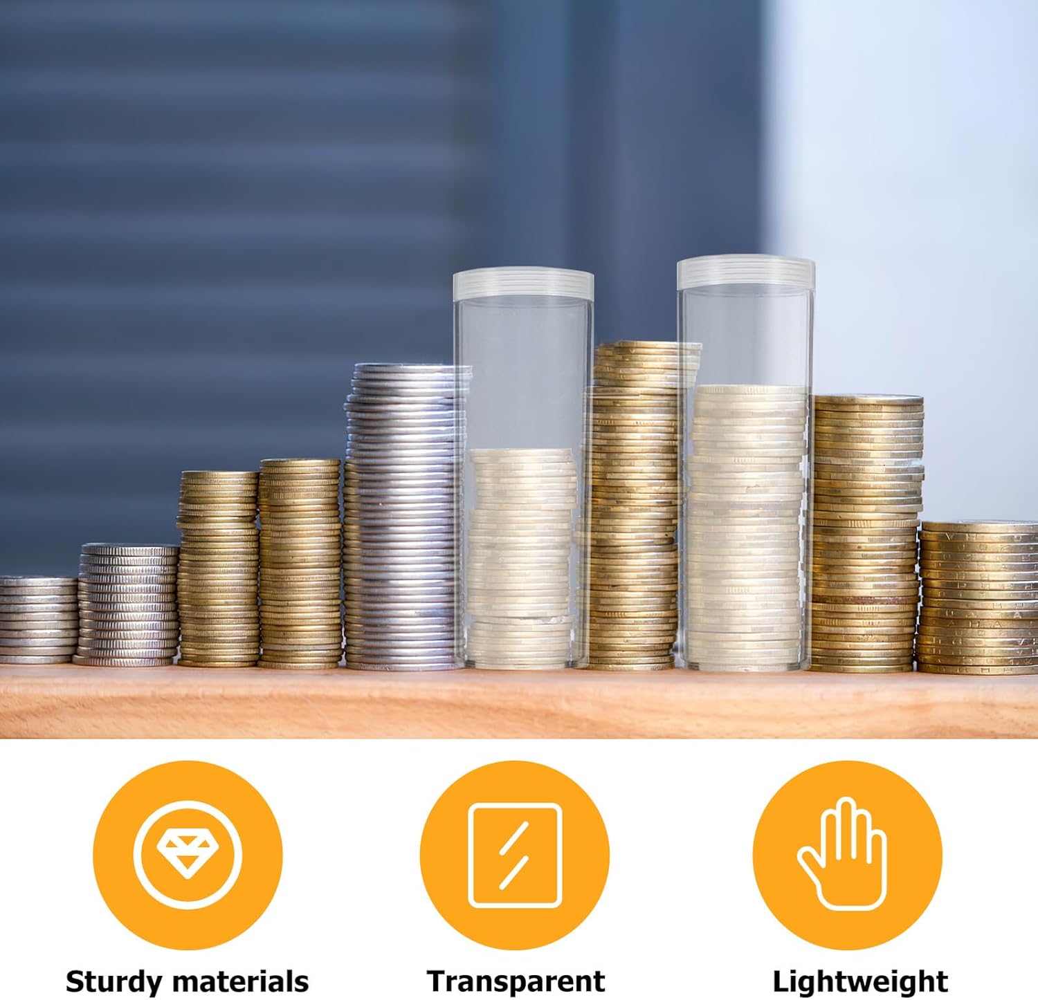 Adatto per l'esposizione: usa questi tubi trasparenti per esporre le tue monete preziose e migliorare la loro visibilità in mostre o mostre mantenendole al sicuro. Portamonete, tubi portamonete rotondi in plastica trasparente Materiale affidabile: questi tubi portamonete sono progettati per resistere all'usura e garantire la protezione delle vostre preziose monete. Tubo portamonete trasparente, portamonete in plastica Ideale come regalo: questi portamonete sono un regalo eccellente per i collezionisti o per chiunque apprezzi soluzioni di archiviazione organizzate e aggiunge un tocco premuroso al tuo regalo. tubo portamonete in plastica trasparente, portamonete Materiale affidabile: questi tubi portamonete sono una buona scelta per conservare le tue monete senza un portamonete e un tubo di protezione per monete Design sicuro: il design leggero e robusto rende questi tubi adatti alla casa, fornendo un modo per conservare e accedere alle monete senza spigoli vivi, tubo portamonete in plastica, portamonete rotondo in plastica