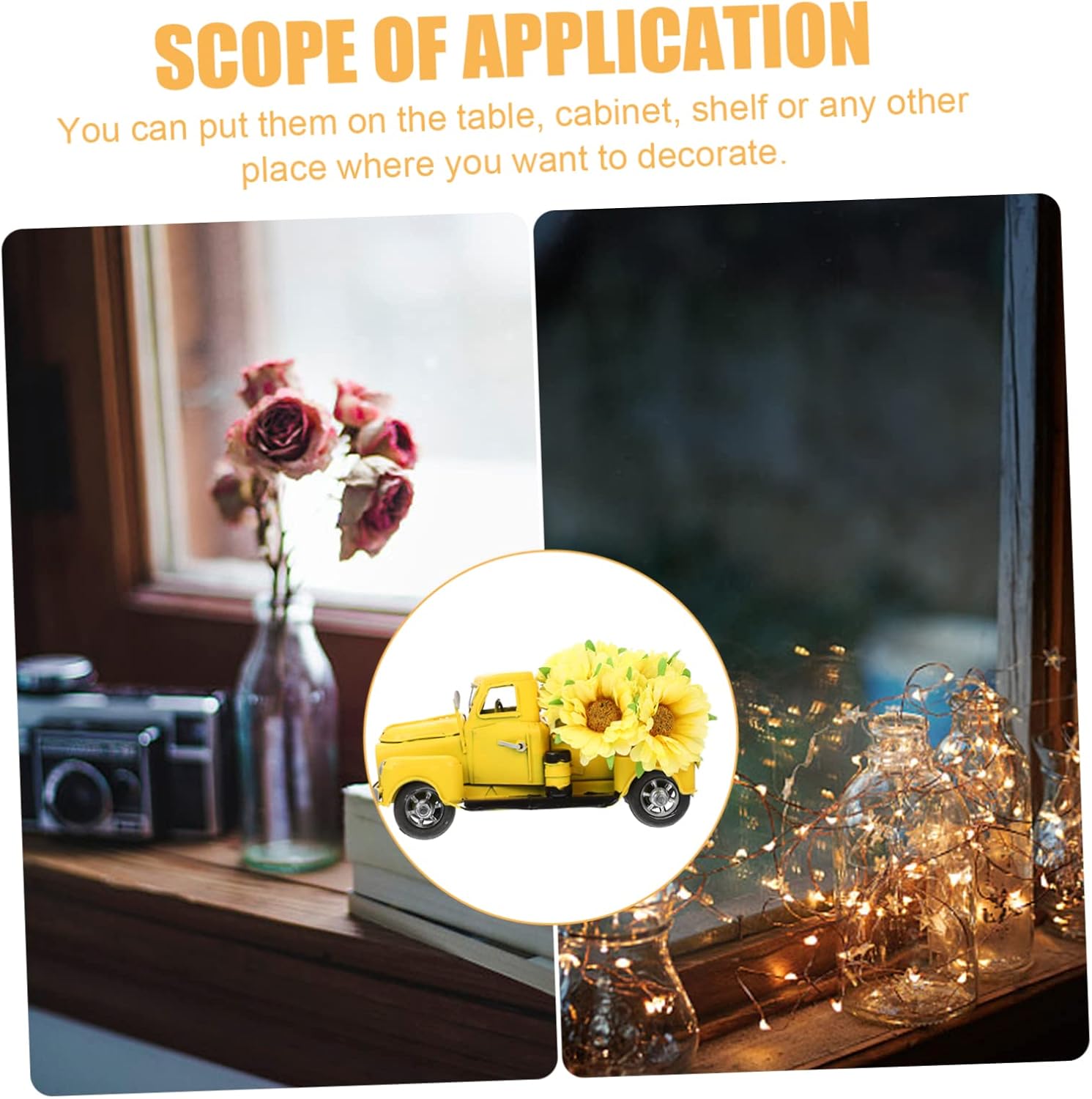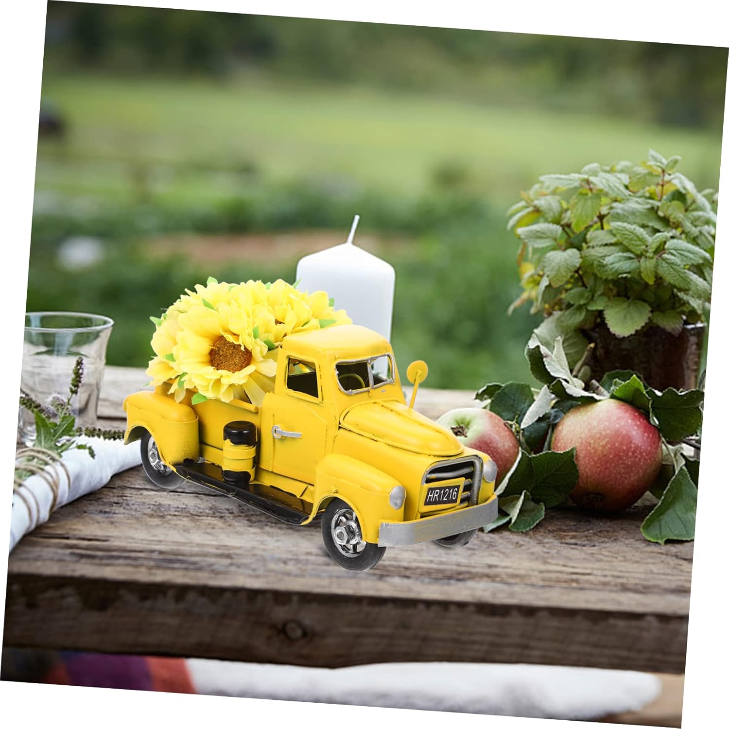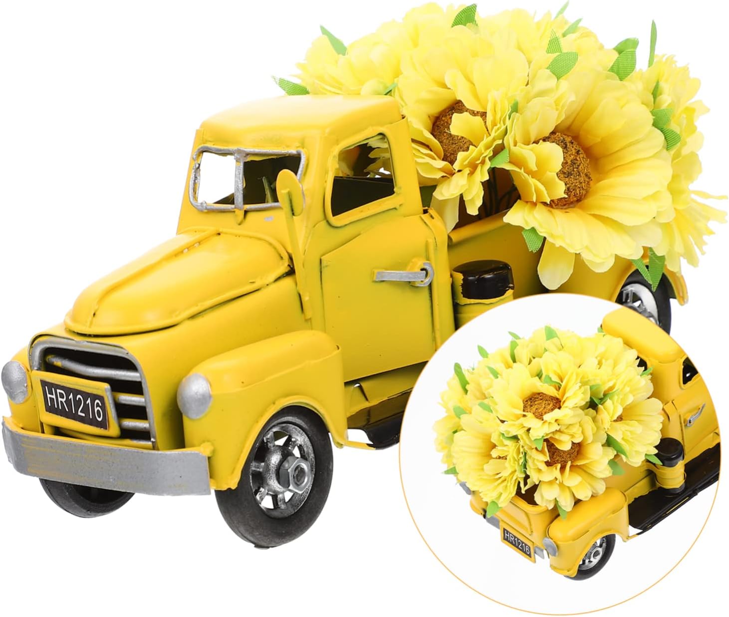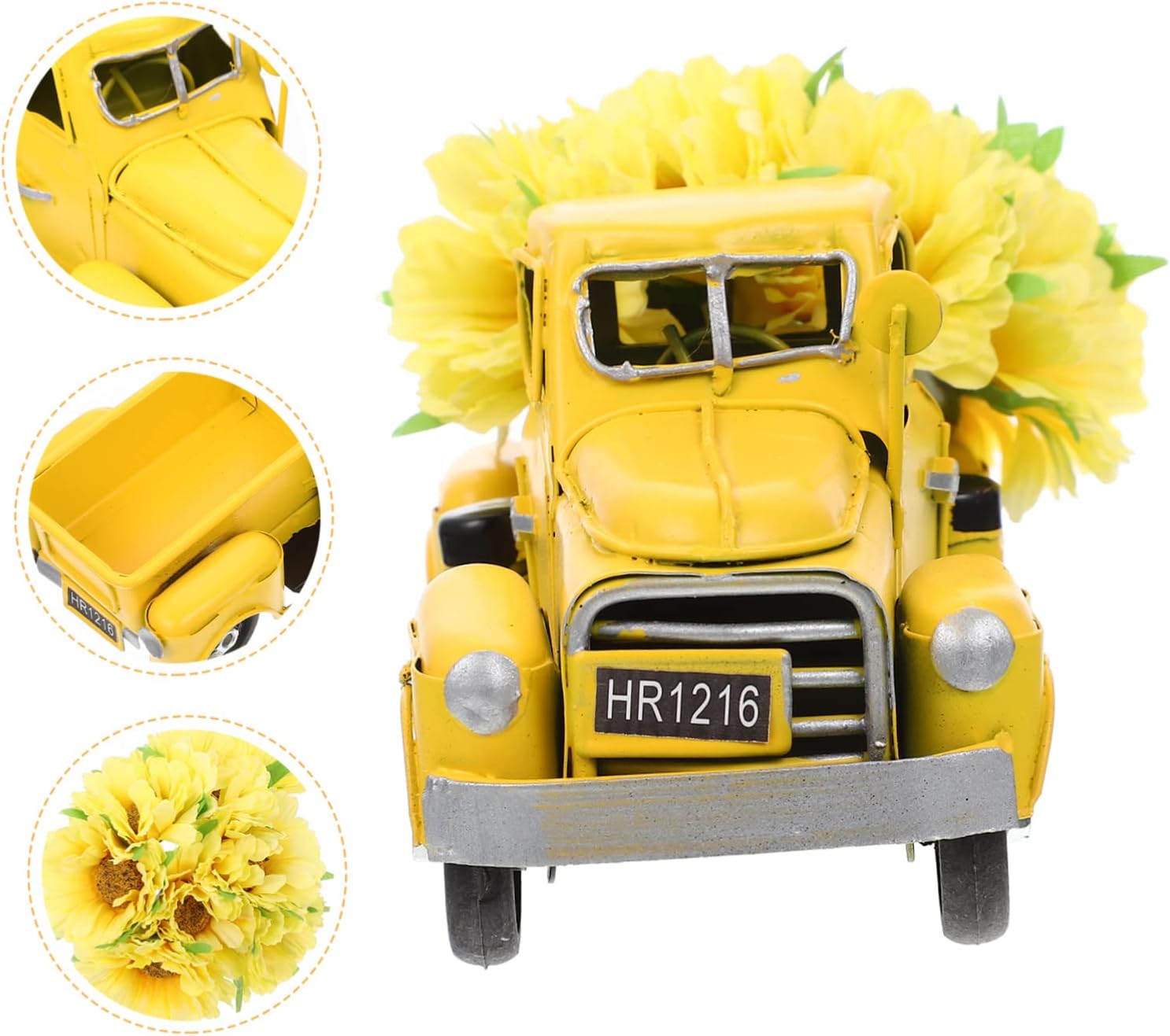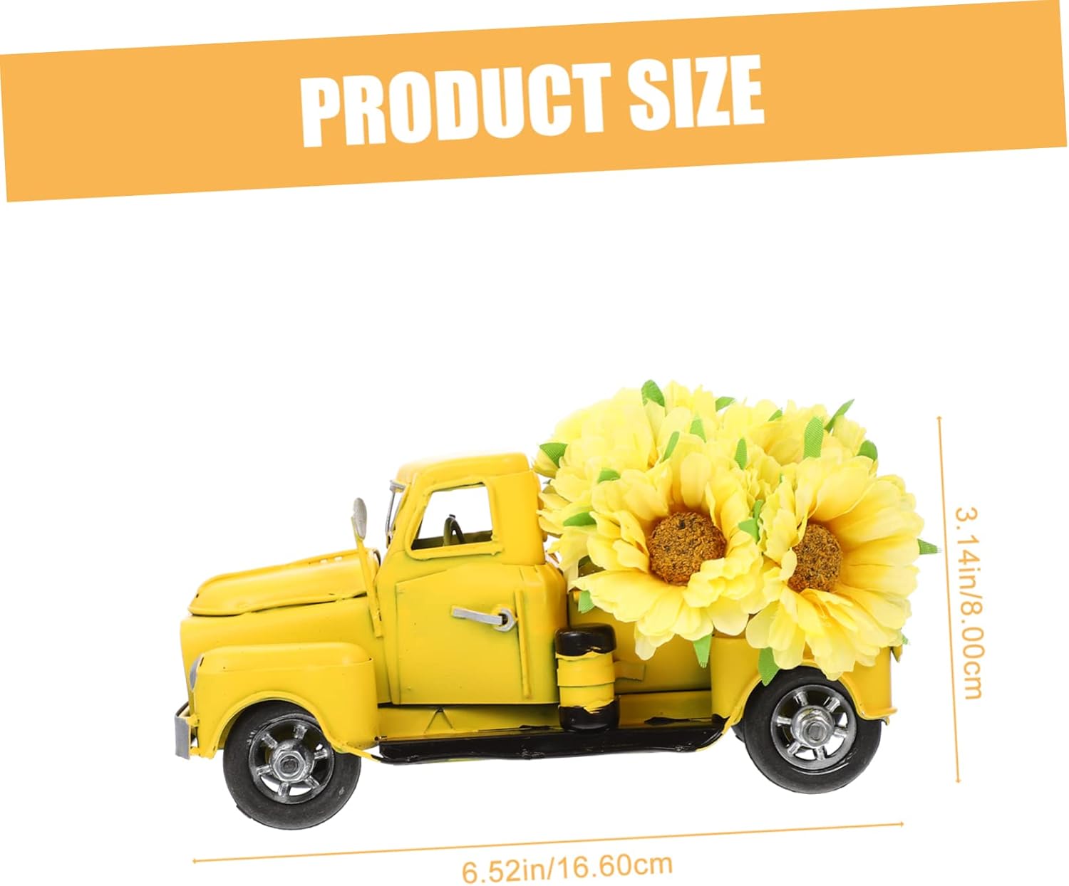 Decorazione per camion in metallo: carina, puoi regalarla ad amici e parenti, a loro piacerà questa decorazione creativa e vintage per camion Decorazioni per la casa: puoi metterle sul tavolo, sull'armadietto, sullo scaffale o in qualsiasi altro posto dove desideri decorare, decorazioni con finti girasoli Decorazione da tavolo per la casa: puoi usarla per decorare la scrivania, lo scaffale, il mobiletto, creando un'atmosfera accogliente in qualsiasi stanza, decorazione creativa Ornamento del festival delle api: l'ornamento creativo può aggiungere un'atmosfera calda e rendere il tuo spazio abitativo più confortevole, l'arredamento della tavola della fattoria Camion con decorazioni: realizzato in materiale e materiale, non sbiadirà né danneggerà facilmente, decorazioni rustiche per la tavola