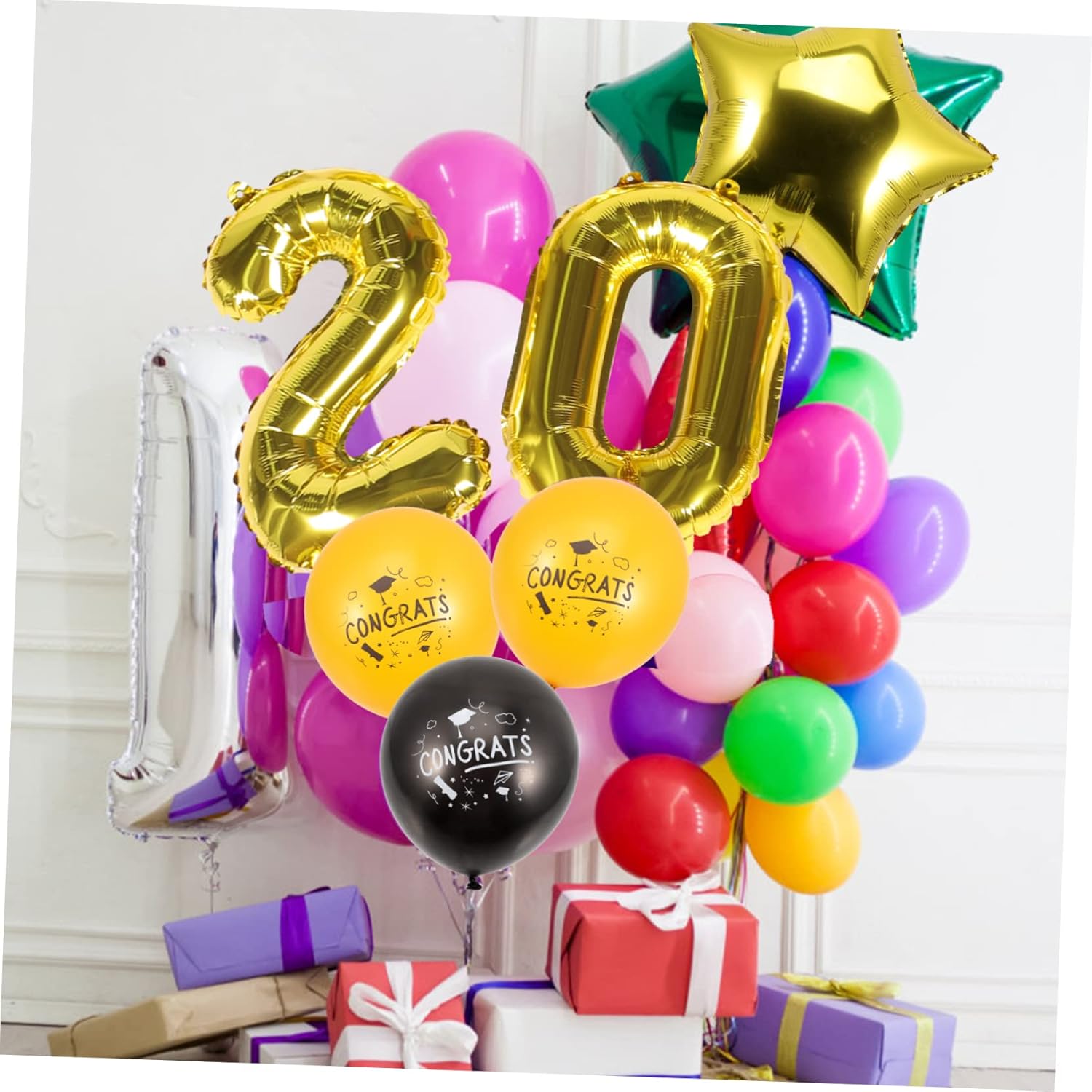 Palloncino per festa di laurea: questi palloncini sono realizzati in un materiale in pellicola di alluminio che può resistere all'uso a lungo termine, decorazione con palloncino per feste Decorazione con palloncino di laurea a forma di stella: il è brillante, naturale, pieno, adatto per essere attaccato a porte, finestre, pareti, ecc., decorazione per feste Palloncini per la laurea per l'aula: crea tu stesso qualsiasi stile, come decorazioni per il pavimento o per il muro, oppure annoda un nastro o mettili su un tavolo, palloncino a tema laurea Decorazione per l'aula di laurea: usa questi palloncini per creare un'atmosfera per i tuoi momenti significativi, trascorrendo momenti felici con i tuoi amici, palloncino con design a forma di cuore per la laurea Palloncino per l'ultimo anno: questi palloncini saranno integrante della decorazione dell'aula durante la festa, palloncini decorativi per la stanza