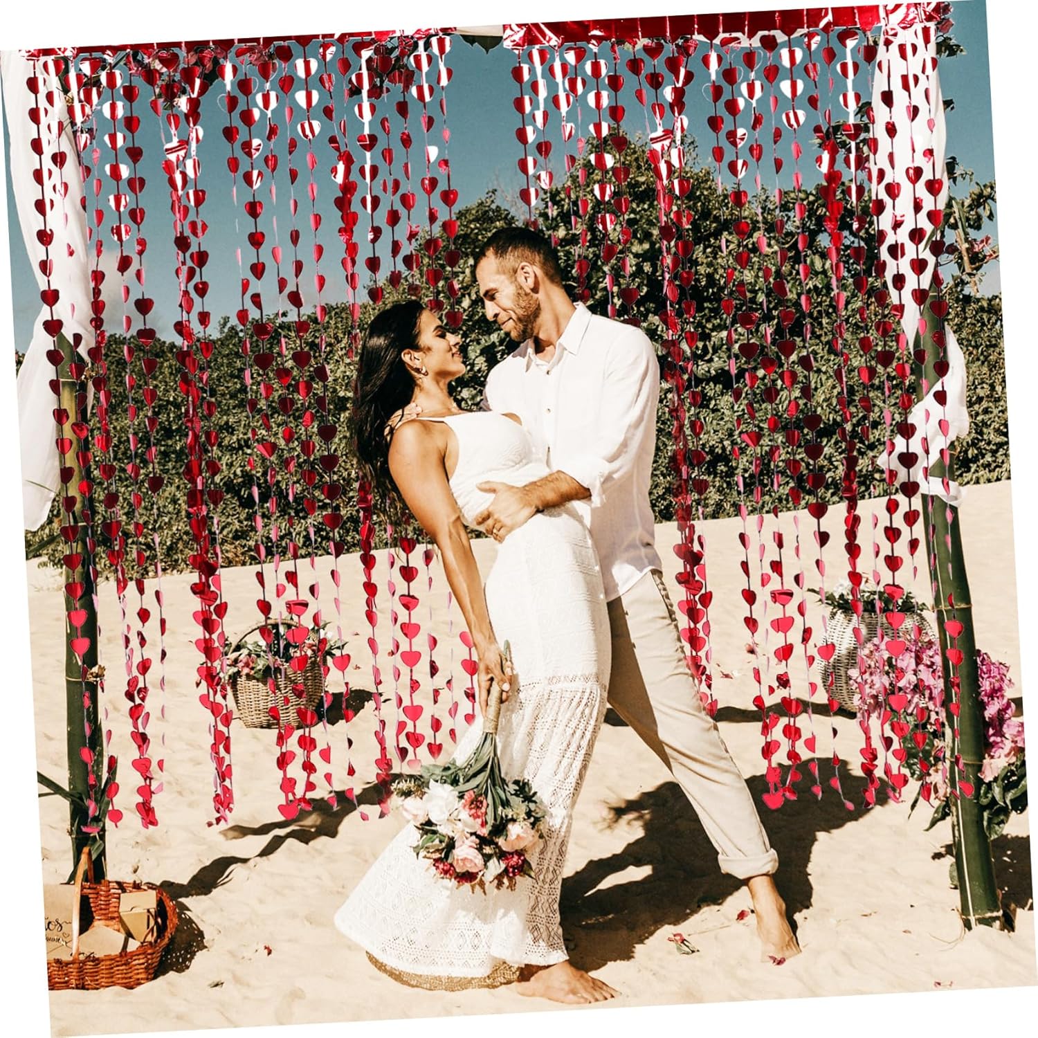 Decorazione del cuore: sarebbe facilmente appeso al muro o alla porta per la decorazione, cortina di san Ghirlanda romantica-questa romantica ghirlanda tende decorazioni per feste è sfondo per fotografica che avevi preparato per i tuoi amici, cortina di cuore Ghirlanda di san -basta attaccare il nastro nel luogo in cui deve essere decorato e può essere applicato alle tende appese alle pareti, appeso a cuore glitter Curta di luccichio: a causa della forma del cuore, crea un'atmosfera calda per le tue feste, porta divertimento e sorpresa, ghirlanda del cuore Decorazioni per feste: riflette la luce e aggiunge brillantezza alla tua festa o al tuo evento, cortina di san