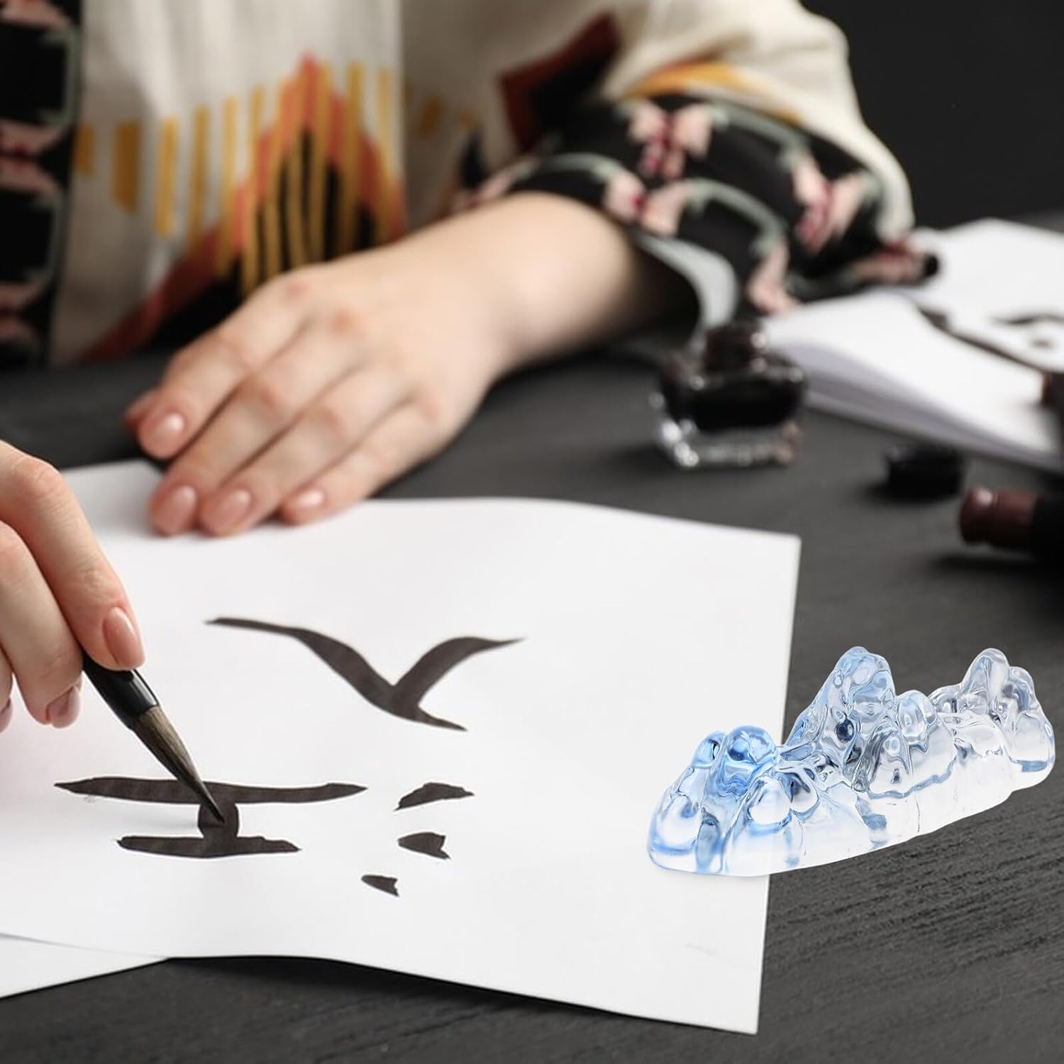 Migliora la concentrazione artistica: usalo come vassoio per calligrafia o portapenne cinese per stabilizzare i tuoi fogli, consentendo precisione negli strumenti di disegno e un processo creativo ininterrotto, strumenti per artisti di calligrafia, vassoio per calligrafia Organizzatore da scrivania Mountain Landscape Design: questo accattivante fermacarte dal design calligrafico cinese organizza il tuo spazio di lavoro e mantiene pagine e pennelli saldamente in posizione, accessori per calligrafia e pittura, pesi in vetro Strumento di calligrafia ispiratore: l'accessorio per calligrafia cinese funge sia da fermacarte che da stimolo alla creatività, ispirando la tua pratica di calligrafia e pittura, portaspazzole, fermacarte artistico Ispirazione cristallina: questo fermacarte per calligrafia in vetro cristallo offre un effetto realistico di una catena montuosa e aiuta a ispirare i tuoi sforzi di calligrafia e disegno con la sua bellezza naturale, portaspazzole per scrittura, strumenti di disegno Esperienza di calligrafia stabile: il design ponderato funge da fermacarta abbastanza pesante da tenere saldamente in posizione documenti e carte artistiche durante sessioni artistiche o di scrittura a mano complesse. porta pennelli, accessori da scrivania per calligrafia